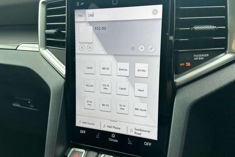 12-inch Infotainment system, Adaptive cruise control ACC with predictive speed limiter, Area View 360 camera, Autonomous emergency braking front assist with monitoring and braking for vehicles, pedestrians, cyclists, Digital Cockpit 12-inch, Dynamic road sign display, eCall emergency system, Navigation system, Park assist plus including park distance control in front and rear, rear traffic alert, PAS, Selector lever, Without manual activation of 360-degree surround and cargo area lighting, Without tachograph, Without trailer maneuvering system Trailer Assist, 1 USB charging socket on the interior rearview mirror, AM / FM antenna and digital radio reception DAB+, Harman Kardon sound system with 8 loudspeakers, Preparation for VW Connect Basic and VW Connect Navigation, Advanced high-beam control Dynamic Light Assist for IQ.LIGHT LED matrix headlamps, Black bumper in rear with chrome-plated styling elements, Body colour styling bar, Body-colored rear gate handle, Chrome-plated exterior mirror housings and door handles, Dark-tinted privacy glass rear side windows and rear window, Diversity antenna, Dynamic headlight range control, Exterior mirrors, power-adjustable, heated and power-folding, with surround lighting, Front and rear power windows, Fuel filler door with integrated misfueling prevention device, Heated rear window, IQ Light LED matrix headlamps, LED front fog lamps, LED rear combination lamps, Mud flaps front and rear, Painted bumper in front with silver X-style insert, Radiator grille with chrome bezel, Satin air vents, Silver roof rails, Step with chrome insert, Trailer hitch preparation, Windshield sound-insulating with windshield heater, Windshield wiper intermittent control with rain sensor, Without hardtop, Without towing eyes in rear, Without underride guard, 10-way power-adjustable driver and front passenger seats, 3 head restraints in 2nd row of seats, 3 point belts in addition height-adjustable in 1st row of seats, 3-point belts in 2nd row of seats, 3-seater bench in 2nd row of seats, Ambient lighting, Carpet floor covering, Center armrest in rear, Child seat anchors ISOFIX on outer rear seats, i-Size compatible, Child seat recognition, Door handles in chrome, Driver seat with map pocket, Dual-zone climate control Climatronic, Gearshift/selector lever knob, leather, Glove compartment, illuminated and lockable, Headliner ebony black, Heating and fresh air system, Inductive charging feature, Leather-wrapped multi-function steering wheel, heated, LED cargo area lighting, Overhead console 2 reading lights for driver and front passenger with glasses compartment in overhead console, Premium dashboard in leather look vinyl, Refrigerant, Roof grab handle on driver side, rigid grab handles, on A-pillar, Savona leather upholstery, Seat belt pretensioner, Seat occupied recognition with seat belt reminder for driver, front passenger and rear seat area, Sun visor on driver and front passenger side with illuminated vanity mirror, Tie-downs on the cargo area, Top tether child safety seat anchorage, Velour floor mats premium with lettering Aventura, Without hand brake lever, Without load compartment cover, Without load compartment loadliner, Without load support including protection frame on the rear cabin wall, Rear seat package II, Curtain and side airbags with center airbag, Front passenger airbag deactivation, Knee airbags for driver and front passenger, Without fire extinguisher, Without first aid kit, Anti-theft alarm system with interior monitoring, backup horn and towing protection, Keyless locking and starting system Keyless Access with SAFELOCK and 2 remote control folding keys, Online anti-theft alarm system, Rear gate lockable via central locking system, Remote control key, Tire Pressure Monitoring System (direct measurement), Wheel lock for spare wheel, Wheel locks, With programmable key, 120-V/230-V outlet in rear center console and cargo area, 3.55 gear ratio, Alternator - 250A, Automatic post collision braking system, Comfort suspension, Electronic parking brake, Electronic stability control (ESC) and Electromechanical brake booster, Emission standard, Four-wheel drive, Particle filter, Stop/start function, Without electrical interface for external use, 6 switches in overhead console, 21" Varberg silver alloy wheels, Alloy spare wheel,