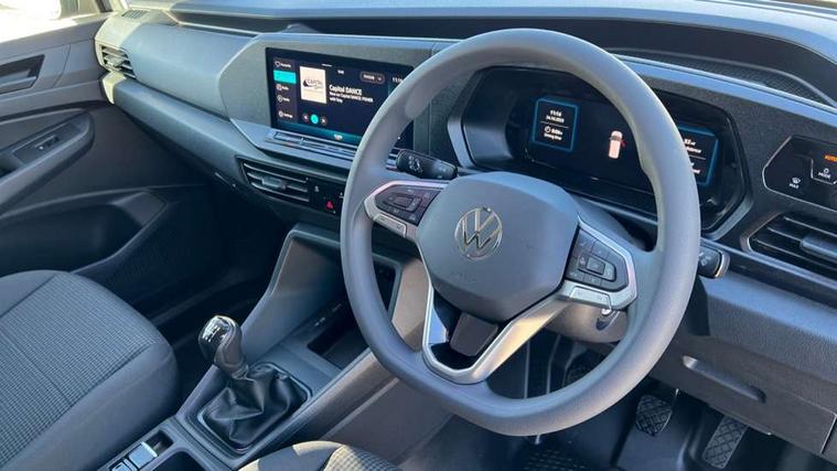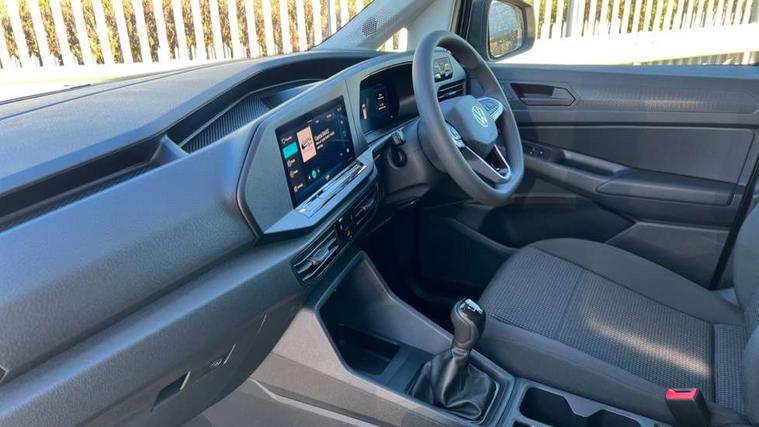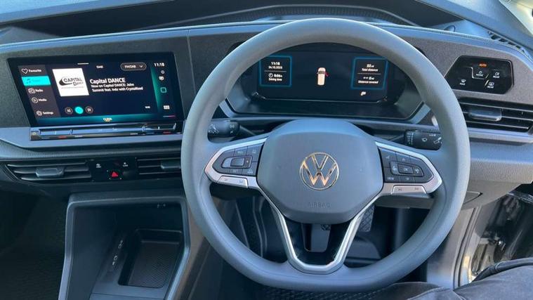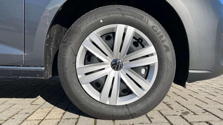 Bluetooth - Mobile phone interface, Car2X technology, Driver alert system, eCall emergency system, Intelligent Speed Assist, Lane assist, Seatbelt warning indicator, Service indicator, Start-stop system with regenerative braking, 2 USB interfaces type C in dashboard, DAB Radio, We Connect Basic Preparation, Automatic hazard light activation under emergency braking, Black front and rear bumpers, Electric front windows, Heat insulating windscreen, Roof rail preparation, Windscreen wiper with variable intermittent delay and wash-wipe system, Dimming breakaway interior rear view mirror, Electronically controlled heating system, Interior light in headliner incorporting LED technology, Lockable glove compartment door with light, Manual heating and ventilation system, Manual height adjustment for front seats, Reach and rake adjustable steering column, Six lashing points for securing loads, 3-point seat belts in front, with pretensioner and height adjustment, Driver and front passenger airbag with front passenger airbag deactivation, Tyre pressure monitoring system, Anti-theft alarm system, interior monitoring, backup horn, and towing protection, Electronic engine immobiliser, Remote central locking with deadlocks, interior locking, Anti locking braking system (ABS), Automatic post collision braking system, Autonomous Emergency Braking Front Assist with Pedestrian Monitoring, Brake assist, Diesel particulate filter, Electric parking brake with auto hold function, Electronic brake force distribution (EBD), Electronic differential lock (EDL), Electronic stabilisation programme (ESP), Engine drag torque control (MSR), Hill hold assist, Traction control system (TCS), Decorative beige birch vein inserts, Full size wheel trims,