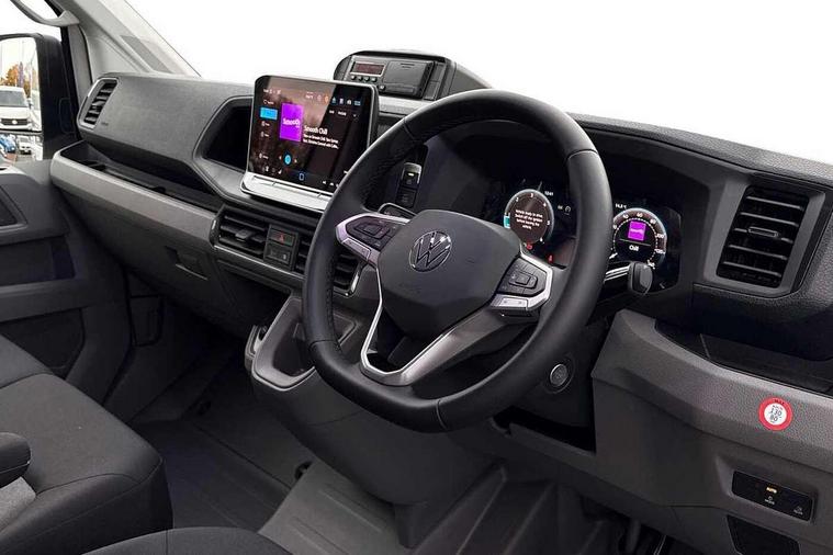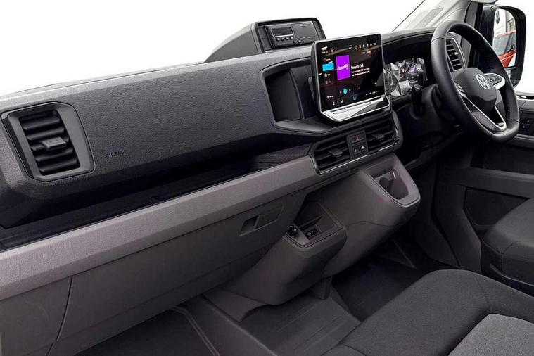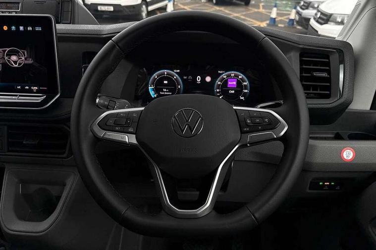Bluetooth, Digital clock, Driver alert system, E-call + We connect basic preparation, Instrument cluster, Lights on warning buzzer, Locking fuel cap, Multi-function Display Plus, Rev counter, Service indicator, Speedometer, Voice control system, Composition media with 6.5" with we connect plus prep, 4 speaker, multifun display plus, USB, mob interface, app con, "We connect function", DAB Radio, Auto low beam mode, Leaving home function and manual coming home function, Cab doors, Convex and wide angle mirror, Driver seatbelt warning light, Electric windows, Electrically heated and adjustable door mirrors, Half painted front bumper, Heat insulating glass, Indicators in front door mirrors, One towing eye in front, Rear wing doors with 270 degree hinges, Special identification plate, Unpainted radiator grille, Air recirculation system, Ashtray, Centre console storage tray, CFCU preparation, Charcoal filter, Climatic air conditioning, Document holder on centre console, Drinks holders, Electromechanical Servotronic steering, Electronically controlled heating system, Fully adjustable suspension type driver seat, Grab handles on rear entry pillars, Height adjustable head restraints, Height and reach adjustable steering wheel, Illuminated glove compartment with lockable lid, Interior light, including 2 reading lights, Interior light, switchable by door, Jack and tool kit, Preparation for interface for external use with terminal block, Storage compartments in doors and in step, right, Storage tray on dashboard, Two 12V outlets in the cab (in the dashboard), Without rear side trim panel passenger load compartment, Non-smokers pack - Crafter, 3 point inertia reel belt on all seats, Automatic hazard light with emergency braking, Crosswind assist, Driver and front passenger airbag with front passenger airbag deactivation, Height adjustable seatbelts for outer cab seats, 1 rigid key, Anti-theft alarm with interior monitor, back up horn and tow away protect, overhead storage with two 1-DIN, reading light, SAFELOCK with 2 remote keys, Engine immobiliser, ABS, Automatic post collision braking system, EBA, EBD, EDL, ESP, Front disc brakes, HBA, Hill start assist, Parking brake - hill hold control, Start and stop system with regenerative braking, TCS, Hub cap covers,