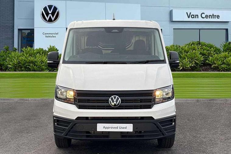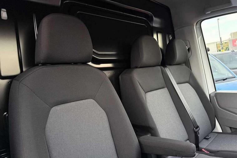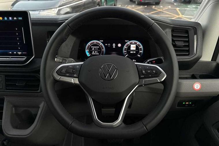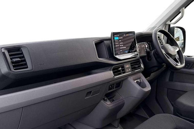Bluetooth, Digital clock, Driver alert system, E-call + We connect basic preparation, Instrument cluster, Lights on warning buzzer, Locking fuel cap, Multi-function Display Plus, Rev counter, Service indicator, Speedometer, Voice control system, Composition media with 6.5" with we connect plus prep, 4 speaker, multifun display plus, USB, mob interface, app con, "We connect function", DAB Radio, Auto low beam mode, Leaving home function and manual coming home function, Cab doors, Convex and wide angle mirror, Driver seatbelt warning light, Electric windows, Electrically heated and adjustable door mirrors, Half painted front bumper, Heat insulating glass, Indicators in front door mirrors, One towing eye in front, Rear wing doors with 270 degree hinges, Special identification plate, Unpainted radiator grille, Air recirculation system, Ashtray, Centre console storage tray, CFCU preparation, Charcoal filter, Climatic air conditioning, Document holder on centre console, Drinks holders, Electromechanical Servotronic steering, Electronically controlled heating system, Fully adjustable suspension type driver seat, Grab handles on rear entry pillars, Height adjustable head restraints, Height and reach adjustable steering wheel, Illuminated glove compartment with lockable lid, Interior light, including 2 reading lights, Interior light, switchable by door, Jack and tool kit, Preparation for interface for external use with terminal block, Storage compartments in doors and in step, right, Storage tray on dashboard, Two 12V outlets in the cab (in the dashboard), Without rear side trim panel passenger load compartment, Non-smokers pack - Crafter, 3 point inertia reel belt on all seats, Automatic hazard light with emergency braking, Crosswind assist, Driver and front passenger airbag with front passenger airbag deactivation, Height adjustable seatbelts for outer cab seats, 1 rigid key, Anti-theft alarm with interior monitor, back up horn and tow away protect, overhead storage with two 1-DIN, reading light, SAFELOCK with 2 remote keys, Engine immobiliser, ABS, Automatic post collision braking system, EBA, EBD, EDL, ESP, Front disc brakes, HBA, Hill start assist, Parking brake - hill hold control, Start and stop system with regenerative braking, TCS, Hub cap covers,