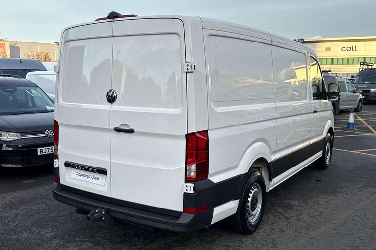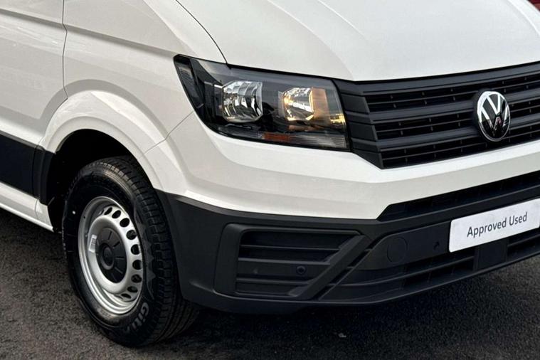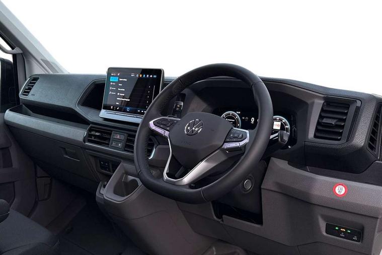 Bluetooth, Digital clock, Driver alert system, E-call + We connect basic preparation, Instrument cluster, Lights on warning buzzer, Locking fuel cap, Multi-function Display Plus, Rev counter, Service indicator, Speedometer, Voice control system, Composition media with 6.5" with we connect plus prep, 4 speaker, multifun display plus, USB, mob interface, app con, "We connect function", DAB Radio, Auto low beam mode, Leaving home function and manual coming home function, Cab doors, Convex and wide angle mirror, Driver seatbelt warning light, Electric windows, Electrically heated and adjustable door mirrors, Half painted front bumper, Heat insulating glass, Indicators in front door mirrors, One towing eye in front, Rear wing doors with 270 degree hinges, Special identification plate, Unpainted radiator grille, Air recirculation system, Ashtray, Centre console storage tray, CFCU preparation, Charcoal filter, Climatic air conditioning, Document holder on centre console, Drinks holders, Electromechanical Servotronic steering, Electronically controlled heating system, Fully adjustable suspension type driver seat, Grab handles on rear entry pillars, Height adjustable head restraints, Height and reach adjustable steering wheel, Illuminated glove compartment with lockable lid, Interior light, including 2 reading lights, Interior light, switchable by door, Jack and tool kit, Preparation for interface for external use with terminal block, Storage compartments in doors and in step, right, Storage tray on dashboard, Two 12V outlets in the cab (in the dashboard), Without rear side trim panel passenger load compartment, Non-smokers pack - Crafter, 3 point inertia reel belt on all seats, Automatic hazard light with emergency braking, Crosswind assist, Driver and front passenger airbag with front passenger airbag deactivation, Height adjustable seatbelts for outer cab seats, 1 rigid key, Anti-theft alarm with interior monitor, back up horn and tow away protect, overhead storage with two 1-DIN, reading light, SAFELOCK with 2 remote keys, Engine immobiliser, ABS, Automatic post collision braking system, EBA, EBD, EDL, ESP, Front disc brakes, HBA, Hill start assist, Parking brake - hill hold control, Start and stop system with regenerative braking, TCS, Hub cap covers,