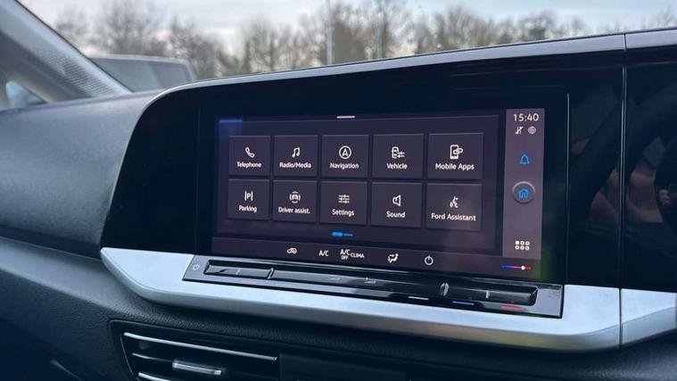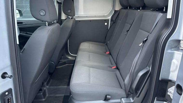10" touchscreen infotainment display with volume and temperature slider controls, Android Auto and Apple Carplay with USB or wireless connectivity, Brake wear indicator, Enhanced digital cluster with navigation integration, Ford power starter button with deadlocking, Fordpass connect modem including eCall, Front camera system, PAS, Tyre pressure monitor, 4 speakers, DAB radio bluetooth, voice control and navigation, Two USB (45W type C) front power/Data points, Auto Headlamps - Follow Me Home, Automatic headlamps on/off, Body coloured front bumper, Day and night inside mirror, Daytime running lights, Dual power heated mirrors, Dual side load doors, Front fog lights, Halogen headlamps, High mounted stop lamp, Intermittent variable windshield wiper, Less roof rails, Misfuel Inhibitor, Power front windows - One touch up-down, Quickclear electric windshield defroster, Rear lights, Rear tinted glass, Tail lamps, Unglazed rear cargo door, Unpainted black exterior cargo door handle, Unpainted black exterior door handle with silver door rail, Unpainted black exterior mirror caps, Unpainted black rear bumper, Weather protection seals, 12V socket in cabin, 2 way front headrestraints, 2nd and 3rd row LED reading lamps, 4 way manually adjustable driver seat, 4 way manually adjustable passenger seat, 4 Wheel disc brakes, A/C Refrigerant - HF01234YF, Base air register, Cargo area hardboard trim, Centre console with open stowage, Driver seat rotary recliner, Fabric upholstery, First row LED light with map lights, Flexible bulkhead with window, Foot pedal, Load floor covering, Luggage compartment trim, Manual air conditioning, Overhead storage compartment, Pollen filter without carbon filter, Polyurethane gear shift knob, Reach and rake adjustable steering column, Rubber cab floor cover, Standard steering wheel, Sunvisor with ticket holder, Unpainted black interior door handles, DAT pack 1 - Transit Connect, Driver and front passenger airbag, Driver, passenger and 2nd row seatbelt reminder, Front active seat belts, Front passenger airbag deactivation, Front seat belt adjuster, Seat airbags (1st row) and Curtain airbags (all rows), 2 remote keys, Immobiliser, Locking wheel bolts, Thatcham alarm system, 12v socket on cargo area, 50L fuel tank, ABS, Electric parking brake, Emergency brake assist, ESP, RSC, wind mitigation, Standard duty alternator, Start/stop system, Traction control, Unpainted black cluster and infotainment bezels, 17" steel wheels with wheel covers, 215/55 R17 tyres,