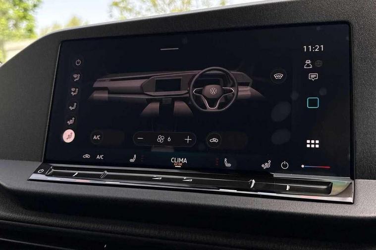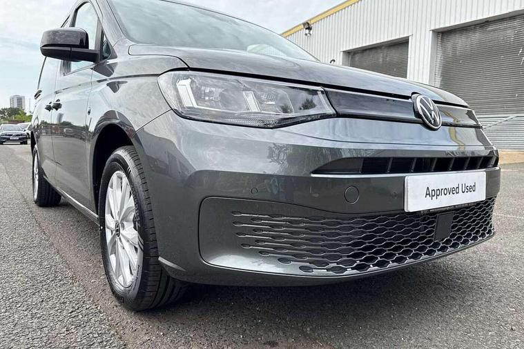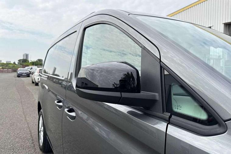 Bluetooth - Mobile phone interface, Car2X technology, Driver alert system, eCall emergency system, Intelligent Speed Assist, Lane assist, Seatbelt warning indicator, Service indicator, Start-stop system with regenerative braking, 2 USB interfaces type C in dashboard, App-Connect - Wireless for Apple CarPlay, DAB Radio, We Connect Plus Preparation, Automatic hazard light activation under emergency braking, Black painted exterior mirror housings, body-colored door handles and Silver sliding door rail, Body coloured bumpers, Electric front windows, LED rear combination lights, LED rear tail lights, Roof rail preparation, Windscreen wiper with variable intermittent delay and wash-wipe system, Dimming breakaway interior rear view mirror, Electronically controlled heating system, ergoComfort seats for driver, Interior light in headliner incorporting LED technology, Lockable glove compartment door with light, Manual heating and ventilation system, Manual height adjustment for front seats and seat cushion inclination and depth adjustment on drivers seat, Multi function leather steering wheel, Power-adjustable lumbar support for drivers seat, Reach and rake adjustable steering column, Six lashing points for securing loads, Steering wheel paddle shift, Storage compartments under driver and front passenger seats, Sun visors with mirror, airbag label on front passenger sun visor, Winter pack plus - Caddy, 3-point seat belts in front, with pretensioner and height adjustment, Driver and front passenger airbag with front passenger airbag deactivation, Tyre pressure monitoring system, Anti-theft alarm system, interior monitoring, backup horn, and towing protection, Electronic engine immobiliser, Remote central locking with deadlocks, interior locking, Anti locking braking system (ABS), Automatic post collision braking system, Brake assist, Diesel particulate filter, Electric parking brake with auto hold function, Electronic brake force distribution (EBD), Electronic differential lock (EDL), Electronic stabilisation programme (ESP), Engine drag torque control (MSR), Hill hold assist, Traction control system (TCS), Decorative beige birch vein inserts, Wheel bolts with anti-theft protection (unlockable),