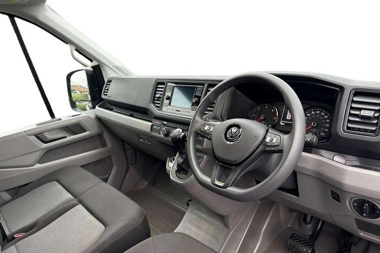 Bluetooth, Digital clock, Driver alert system, E-call + We connect basic preparation, Instrument cluster, Lights on warning buzzer, Locking fuel cap, Multi-function Display Plus, Rev counter, Service indicator, Speedometer, Voice control system, Composition media with 6.5" with we connect plus prep, 4 speaker, multifun display plus, USB, mob interface, app con, "We connect function", DAB Radio, Auto low beam mode, Leaving home function and manual coming home function, Cab doors, Convex and wide angle mirror, Driver seatbelt warning light, Electric windows, Electrically heated and adjustable door mirrors, Half painted front bumper, Heat insulating glass, Indicators in front door mirrors, One towing eye in front, Rear wing doors with 270 degree hinges, Special identification plate, Unpainted radiator grille, Air recirculation system, Ashtray, Centre console storage tray, CFCU preparation, Charcoal filter, Climatic air conditioning, Document holder on centre console, Drinks holders, Electromechanical Servotronic steering, Electronically controlled heating system, Fully adjustable suspension type driver seat, Grab handles on rear entry pillars, Height adjustable head restraints, Height and reach adjustable steering wheel, Illuminated glove compartment with lockable lid, Interior light, including 2 reading lights, Interior light, switchable by door, Jack and tool kit, Preparation for interface for external use with terminal block, Storage compartments in doors and in step, right, Storage tray on dashboard, Two 12V outlets in the cab (in the dashboard), Without rear side trim panel passenger load compartment, Non-smokers pack - Crafter, 3 point inertia reel belt on all seats, Automatic hazard light with emergency braking, Crosswind assist, Driver and front passenger airbag with front passenger airbag deactivation, Height adjustable seatbelts for outer cab seats, 1 rigid key, Anti-theft alarm with interior monitor, back up horn and tow away protect, overhead storage with two 1-DIN, reading light, SAFELOCK with 2 remote keys, Engine immobiliser, ABS, Automatic post collision braking system, EBA, EBD, EDL, ESP, Front disc brakes, HBA, Hill start assist, Parking brake - hill hold control, Start and stop system with regenerative braking, TCS, Hub cap covers,
