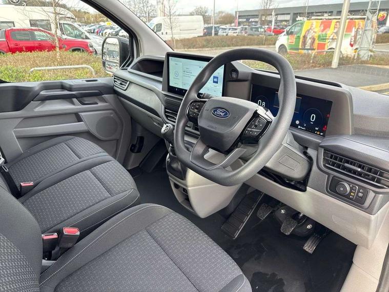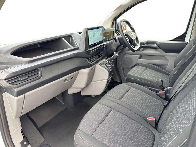 13" Touchscreen, 5G embedded modem, AECS NO SMS/Roll Detect 2G, PAS, Rear USB charge port, Tyre pressure monitor, SYNC 4 - Android Auto/Apple Car Play, advance speech recognition, over the air update capability, Automatic headlights, Automatic windscreen wipers, Black exterior mirror finish, Daytime running lights, Front mud flaps, Front splash guards, Low roof line, Part body colour front bumper, Partialy body coloured rear bumpers, Power driver's front window, Quickclear front window defroster, Rear cargo hinged door, Rear splash guards, Trailer sway control, 3 Seat Rear seats with under seat stowage, 4 Load compartment tie down loops, Courtesy light, DCiV Moulded polymer bulkhead, LED lights, Rear reading light, Rubber floor in first row and second row, 2 remote keys, Alcohol Interlock wiring preparation pack, Thatcham category 1 alarm, 20L AdBlue tank, ABS, Diesel particulate filter, ESP, Hill launch assist, Traction control, Full wheelcovers,