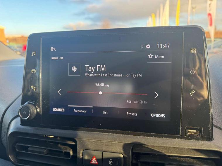 3.5" colour information display, Digital clock, Door/boot open warning light, Driver alert system, Exterior temperature gauge, Forward collision warning, Front and rear parking sensors, Instrument cluster - Uplevel, Lane departure warning with lane change assist, Low fuel level warning light, Multi function trip computer, PAS, Remote control boot opening, Rev counter, Service indicator, Traffic sign recognition, Diesel particulate filter, Steering wheel mounted audio controls, 2 speed wipers+variable intermittent wipe, Automatic headlight control system, Body colour bumpers, Body colour door handles, Body colour door mirrors, Body coloured bodyside mouldings, Chrome front grille, Daytime running lights, Dipping rear view mirror, Electric folding door mirrors, Electric front windows + drivers one touch, Electrically adjustable and heated door mirrors, Front fog lights, Glazed tailgate, Heated rear windscreen, Integrated fuel filler cap, Offside sliding side door and sliding windows in nearside and offside doors, Rear wiper, SLD cover - body colour, Tinted glass including windscreen, Welcome lighting, 2 cupholders in front centre console, 2 individual 3rd row seats, 2x cupholders in 3rd row seating area, 4 way adjustable front head restraints, 4 way manually adjustable passenger seat with height, reach, tilt, backrest and headrest, 6 way manually adjustable drivers seat, Adjustable dashboard illumination, Ambient lighting, Auxilliary 12V power socket, Boot lashing points, Carpet floor mats, Chrome inner door handles, Cooled glovebox, Delay courtesy light function, Driver's lumbar support, Driver/passenger reading lights, Driver/passenger sunvisors with illuminated vanity mirrors + covers, Front comfort seats, Front/rear courtesy lights, Glovebox with lid, Height/reach adjust steering wheel, Isofix on 2nd row rear seats, Luggage shade, Mistray cloth upholstery, Pollen filter, Polyurethane steering wheel, Rear adjustable/removable headrests, Rear door pockets with bottle holders, Receptable electrical- third row, Remote radio controls, Storage box under drivers seat, Sight and light Pack - Combo Life, ABS, Autonomous emergency braking, Child locks on rear doors, CSC - Cornering stability control, Driver/Front Passenger airbags, Electronic brake force distribution, Emergency brake assist, ESP, Front and rear curtain airbags, Front and rear outer seat belt pre-tensioners, Front lateral airbags, Front seat side impact airbags, Front seatbelt force limiters, Hill start assist, Manual park brake, Manual passenger airbag deactivation function, Motor Slip Regulation (MSR) - Engine Drag Torque Control, Seatbelt warning, Three 3 point rear seatbelts, Traction control, Two inertia reel seatbelts - 3rd row, Tyre pressure monitor, 2 remote folding keys, Immobiliser, Locking wheel nuts, Remote central deadlocking, Chrome instrument cluster dial rings, 16" 7 spoke alloy wheels,