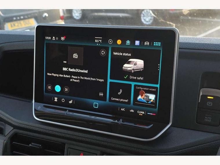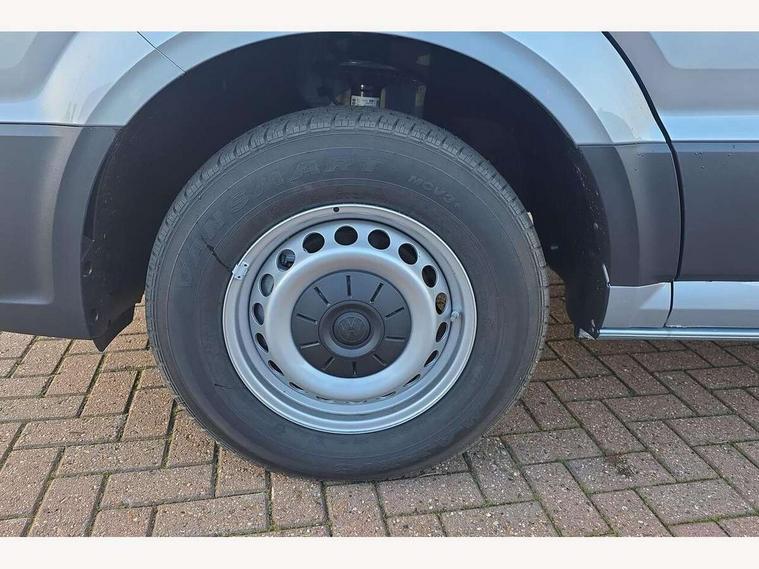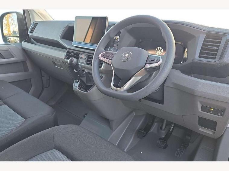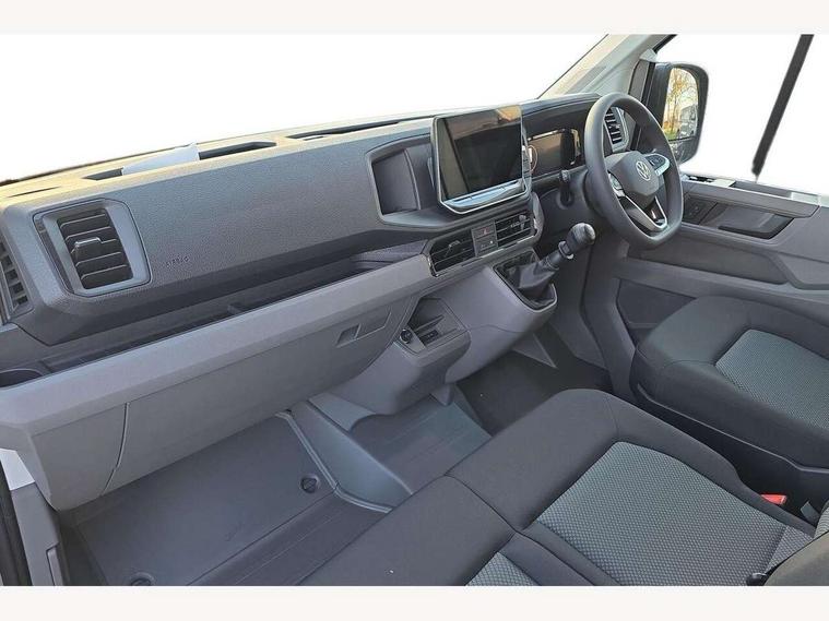 Bluetooth, Digital clock, Driver alert system, E-call + We connect basic preparation, Instrument cluster, Lights on warning buzzer, Locking fuel cap, Multi-function Display Plus, Rev counter, Service indicator, Speedometer, Voice control system, Composition media with 6.5" with we connect plus prep, 4 speaker, multifun display plus, USB, mob interface, app con, "We connect function", DAB Radio, Auto low beam mode, Leaving home function and manual coming home function, Cab doors, Convex and wide angle mirror, Driver seatbelt warning light, Electric windows, Electrically heated and adjustable door mirrors, Half painted front bumper, Heat insulating glass, Indicators in front door mirrors, One towing eye in front, Rear wing doors with 270 degree hinges, Special identification plate, Unpainted radiator grille, Air recirculation system, Ashtray, Centre console storage tray, CFCU preparation, Charcoal filter, Climatic air conditioning, Document holder on centre console, Drinks holders, Electromechanical Servotronic steering, Electronically controlled heating system, Fully adjustable suspension type driver seat, Grab handles on rear entry pillars, Height adjustable head restraints, Height and reach adjustable steering wheel, Illuminated glove compartment with lockable lid, Interior light, including 2 reading lights, Interior light, switchable by door, Jack and tool kit, Preparation for interface for external use with terminal block, Storage compartments in doors and in step, right, Storage tray on dashboard, Two 12V outlets in the cab (in the dashboard), Without rear side trim panel passenger load compartment, Non-smokers pack - Crafter, 3 point inertia reel belt on all seats, Automatic hazard light with emergency braking, Crosswind assist, Driver and front passenger airbag with front passenger airbag deactivation, Height adjustable seatbelts for outer cab seats, 1 rigid key, Anti-theft alarm with interior monitor, back up horn and tow away protect, overhead storage with two 1-DIN, reading light, SAFELOCK with 2 remote keys, Engine immobiliser, ABS, Automatic post collision braking system, EBA, EBD, EDL, ESP, Front disc brakes, HBA, Hill start assist, Parking brake - hill hold control, Start and stop system with regenerative braking, TCS, Hub cap covers,