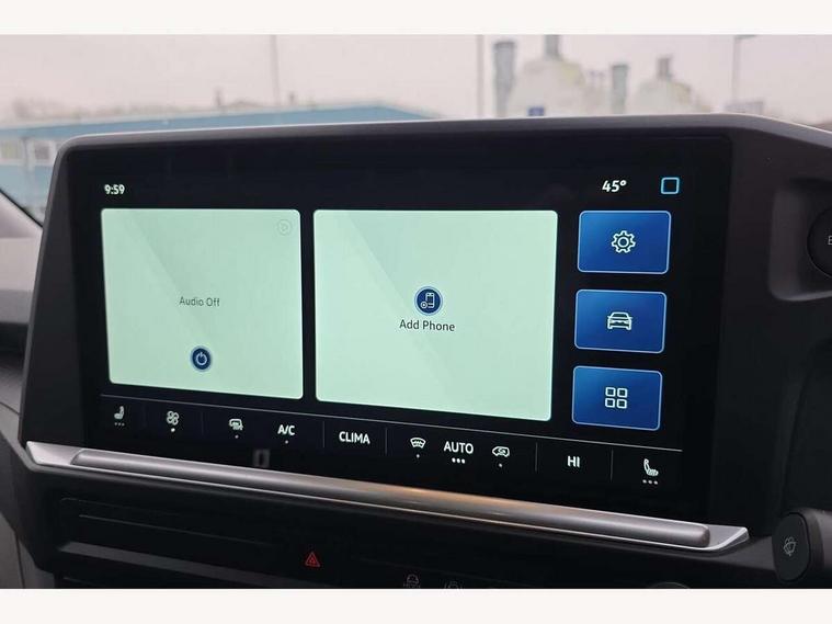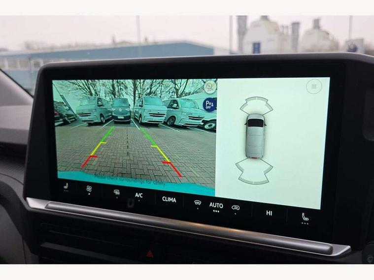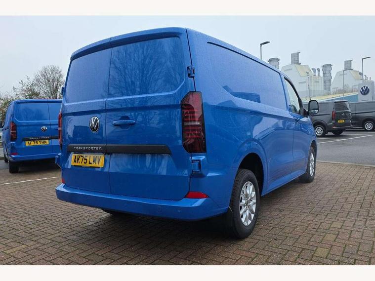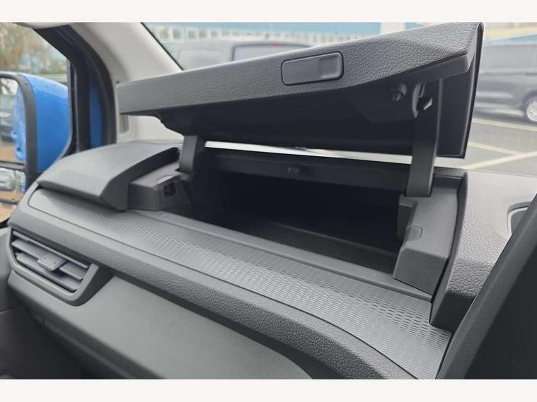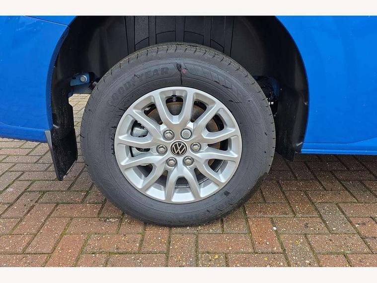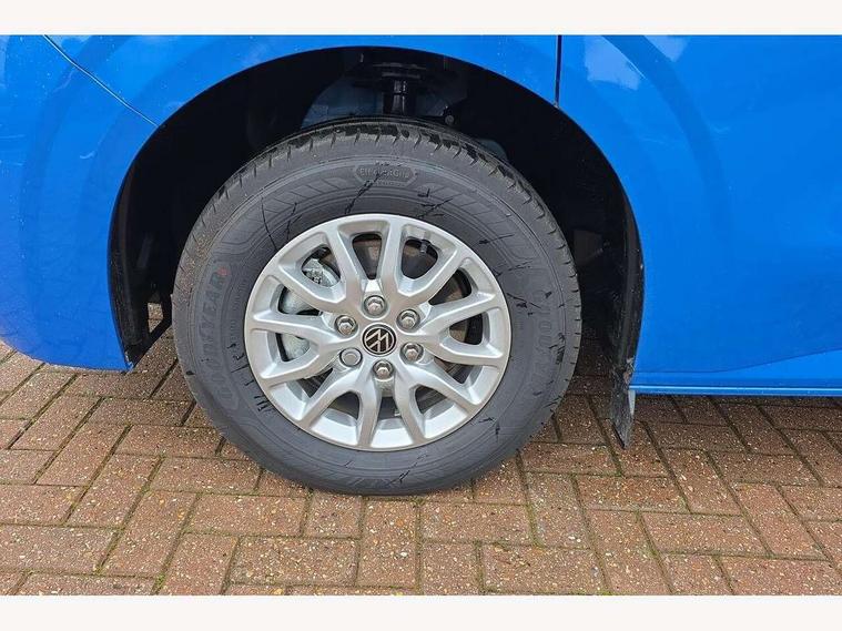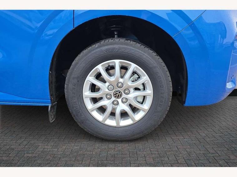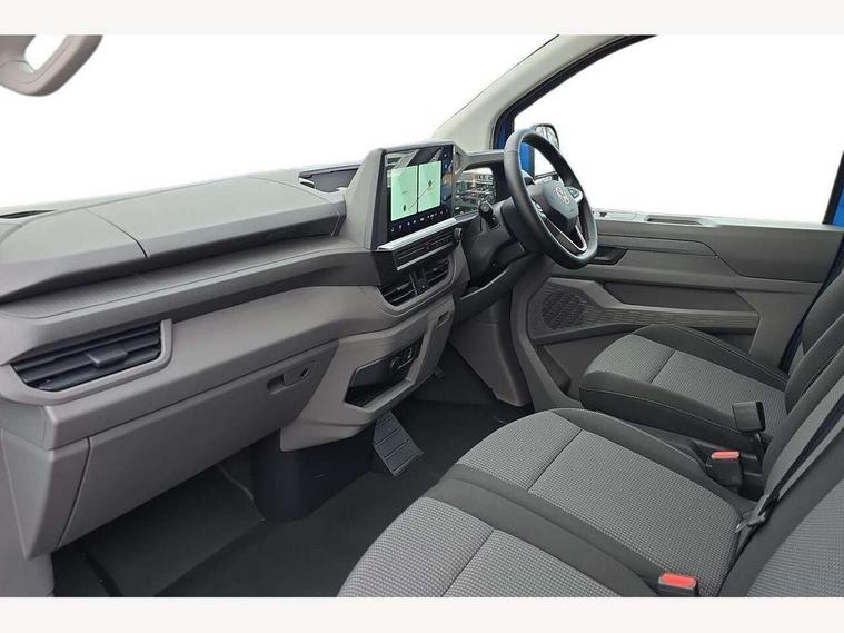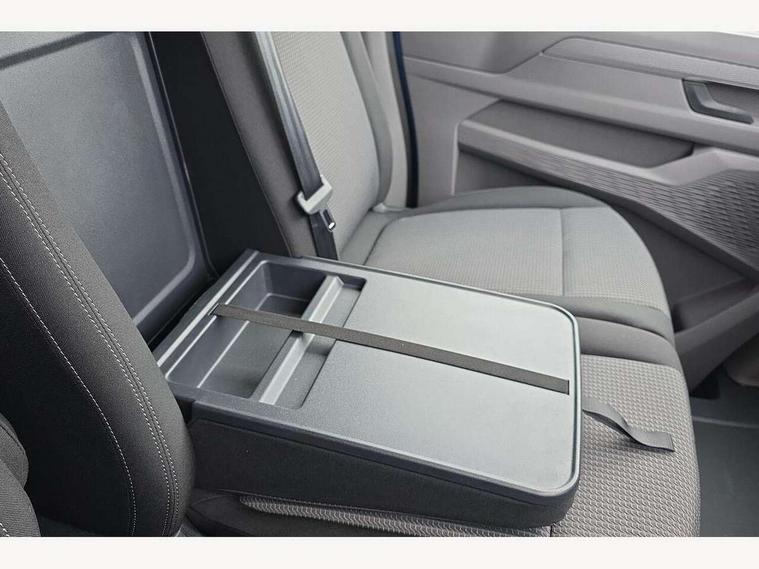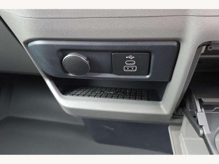 12" digital drivers display, 13" touchscreen infotainment display with wireless app connect and DAB radio, 5G Modem, Adaptive cruise control, Apple CarPlay and Android Auto, Dynamic road sign display, eCall emergency system, Electromechanical speed sensitive power steering, height and longitudinally adjustable steering column, Lane and blind spot assist with exit warning system, Preparation of VW connect and connect plus, Traffic jam assist, Wireless mobile phone charging, Wrong way driver warning, Body colour bumpers, Body coloured door handles, Body coloured door mirrors, Body coloured radiator grille, Electrically heated, adjustable and folding door mirrors, Heat reflecting side window glass, Mud flaps front and rear, Rear Transporter nameplate in black grained decorative trim, Vehicle opening configuration 1x 1st row of seats, 2x all doors, 12V outlet in centre console and 12V outlet on rear right D-pillar, 2x 15-W USB data/charging ports in dashboard and 1x USB-C, 1x USB-A center bottom, 2x LED lights in load compartment, 3x additional super bright LED lights in load compartment, 4 way height and tilt adjustable head restraints, 5 additional USB-C charging ports, Black plastic scuff plate for sliding door in cargo without illumination, Cabin interior lighting, Gear selector lever on steering wheel, Glasses compartment in driver side roof, Grab handle on A-pillar passenger side, Illuminated lockable glovebox, Lashing rings for reinforced floor covering, Narrow centre console with cup holder and compartment for mobile phone, Overhead storage compartment, Rubber floor covering in cab, Striped fabric upholstery, Without passenger seats in load compartment, Driver and front passenger airbag with front passenger airbag deactivation, Dual tone horn, Front and curtain airbags for driver and front passenger, Seat belt pretensioner for driver seat, Anti theft alarm system with interior monitoring in cab, backup horn and towing protection, Electronic immobiliser, Lockable wheel bolts, Preparation for alcohol ignition interlock, 5+ Promise, Alternator - 230A, Electromechanical brake booster, Electronic stability control, ABS, ASR with deactivation button, hill start assist and brake assist system,