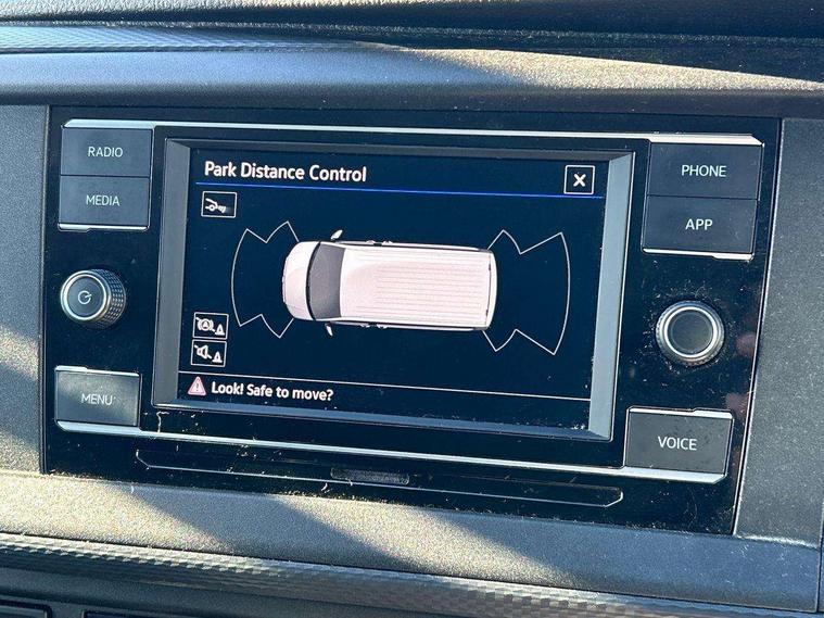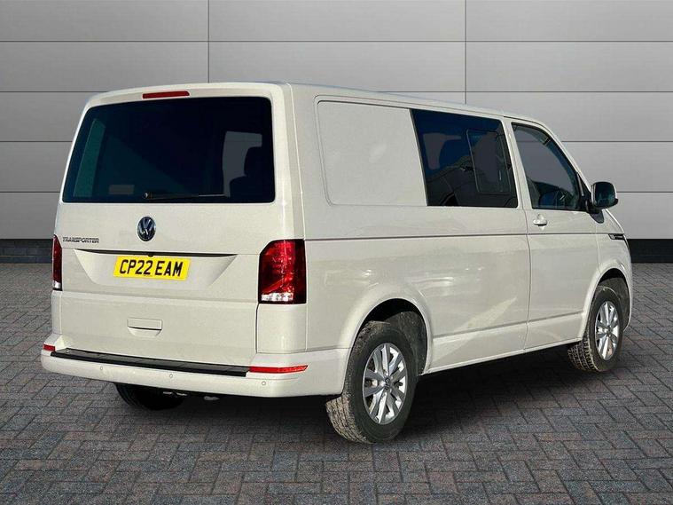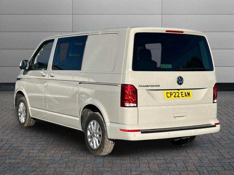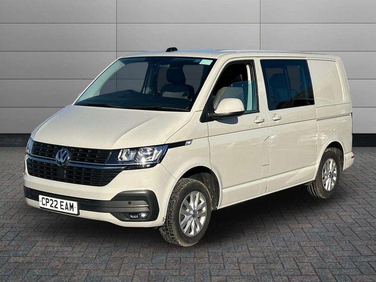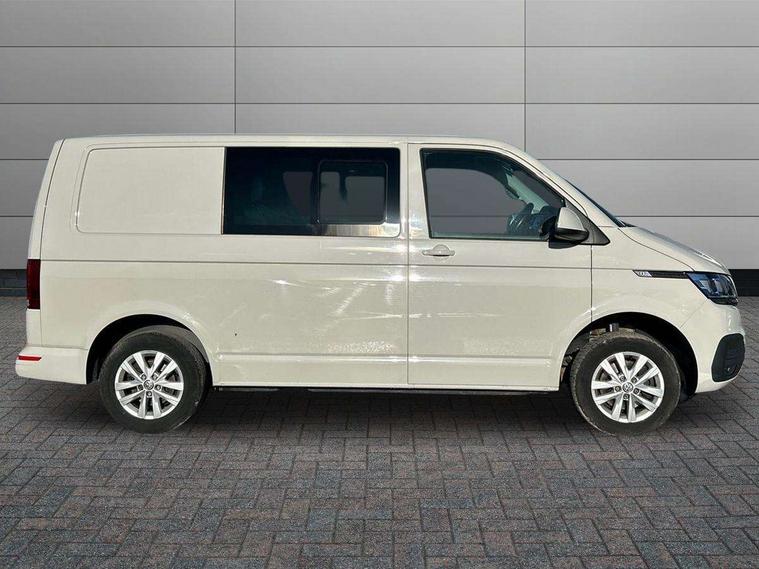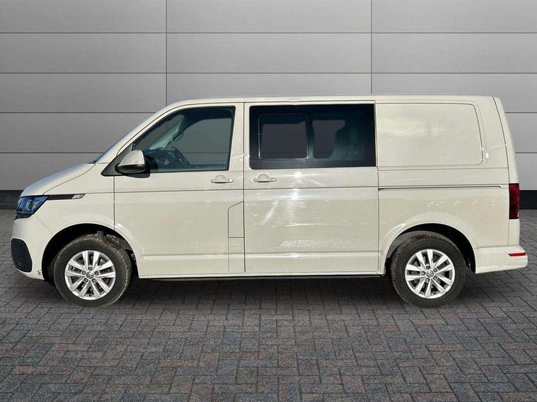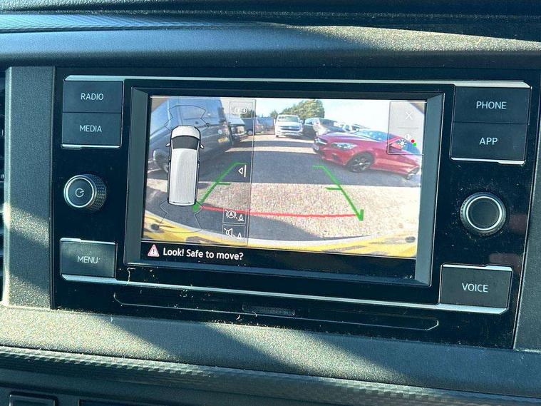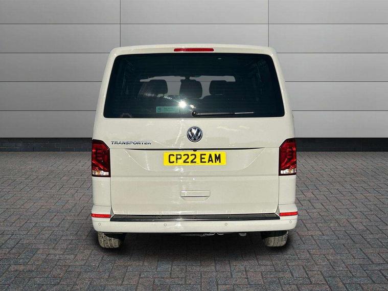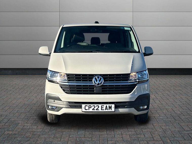 Adaptive cruise control, Child seat anchors ISOFIX and top tether in 2nd row of seats, Cross wind assist, Dimmable illuminated instruments, Driver alert with black and white multi function display plus, eCall emergency system, Electromechanical speed sensitive power steering, height and longitudinally adjustable steering column, Forward collision warning front assist with autonomous emergency braking, Headlight range control, Mobile phone interface, Without voice control, 2 USB interfaces type C in dashboard, 4 speakers with 2 tweeters and 2 woofers, Composition colour radio with 6.5" touchscreen, Digital radio reception (DAB+), Volkswagen app connect, Automatic headlight control, leaving home and manual coming home feature, Front fog lamps with cornering light, Green heat insulating glass, Heated front windscreen, Illuminated steps in passenger/load compartment, Left convex exterior mirror, Power adjustable and heated exterior mirrors, Power folding door mirrors, Privacy glass from the B-pillar and heat-insulating glass in front, Radiator grille with 2 chrome trims, Rear window with heated insulating glass, heated rear window wiper and washer system, Right convex exterior mirror, Tailgate closing with unlatching from the inside, Transporter nameplate on the rear fender, Windshield wiper intermittent control with rain sensor for windshield wipers, Without adhesive film, 3 spoke leather wrapped multi function steering wheel, Additional sound deadening measures in cab and passenger compartment, Auto dimming breakaway interior rear view mirror, Comfort headliner in cab, hardboard roof trim in passenger and load compartment, Dust/pollen filter, Folding grab handles and storage compartments on cab seats, reading light, Front seats on the right in 1st row of seat, Glove compartment with illumination, Heavy duty tool kit and jack, Interior plastic loading edge protection, Lashing rings for load restraint system, LED Interior lighting in load and passenger compartment, Medium height for vehicles with window aperture hardboard side trim panels in passenger/load compartment, Refrigerant R134a, Standard lower part dashboard in palladium, Without partition, Without seats in 3rd row of seats, Comfort pack - Transporter, Exterior pack without fog light- Transporter, Light and vision pack - Transporter, Non smoker pack - Transporter, 3 point height adjustable seat belts on outer seats cab with electric pretensioners, Driver and front passenger airbag with front passenger airbag deactivation, Power operated child safety lock, Single tone horn, Warning buzzer and light for driver seat belt not fastened, Anti theft alarm system with interior monitoring in cab, backup horn and towing protection, Lockable wheel bolts, 16" chassis with 16" brake system, 70 L volume fuel tank, Additional 12V socket, Diesel particulate filter, Electronic stability control, ABS, ASR with deactivation button, hill start assist and brake assist system, Speed limiter, Start/stop system with regenerative breaking, 16" Clayton alloy wheels, Wheel trims,