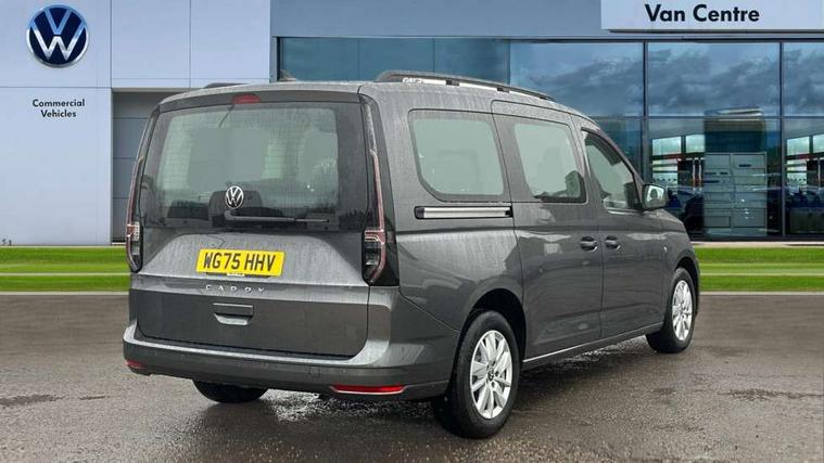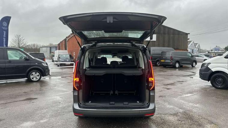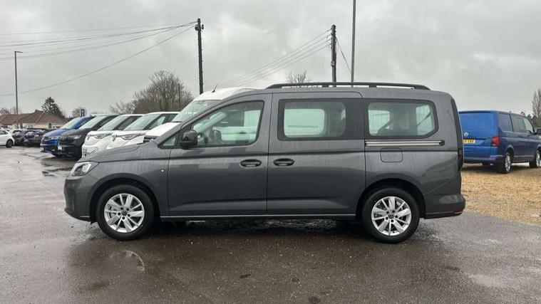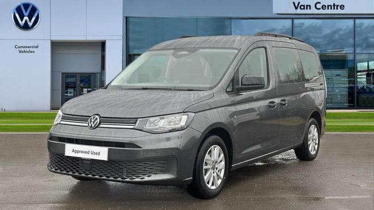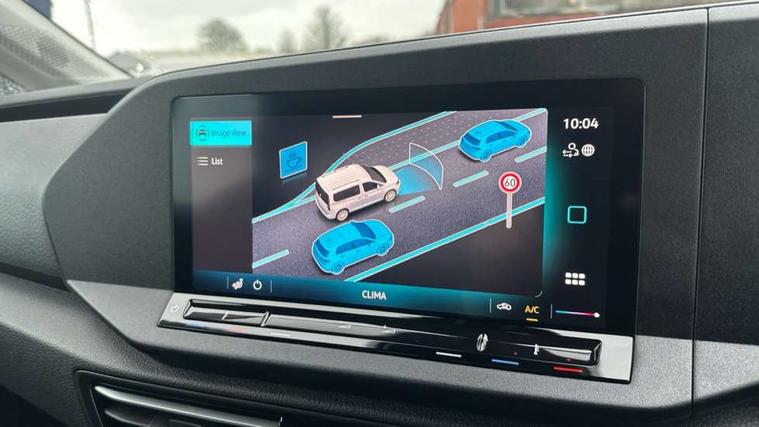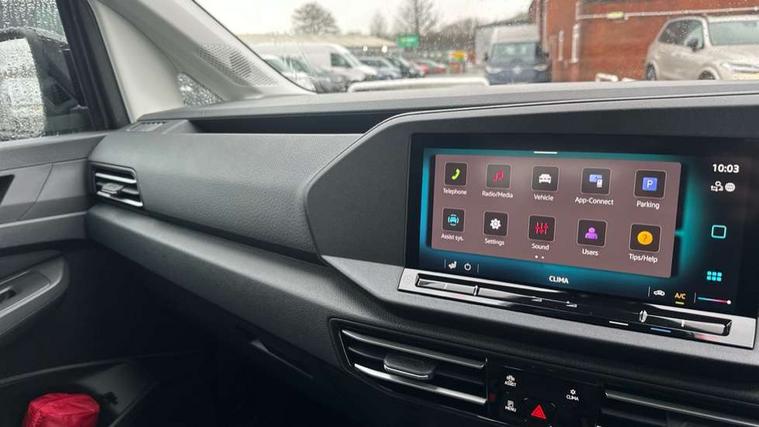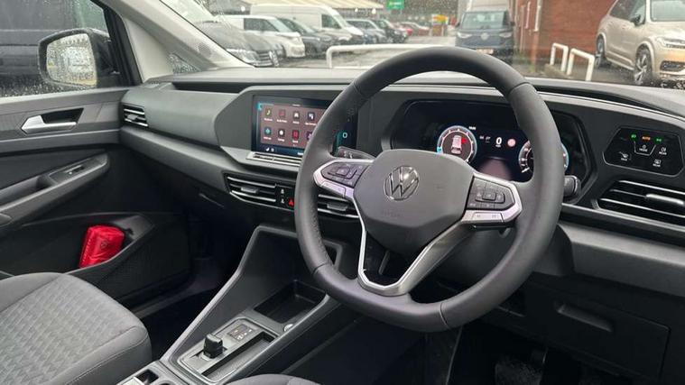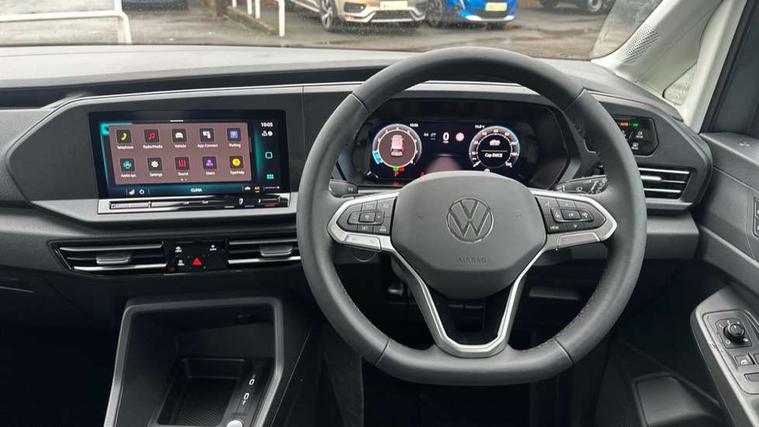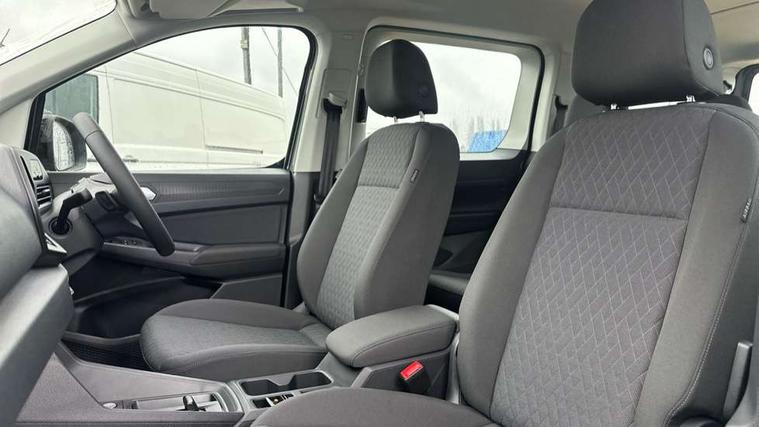 Bluetooth mobile phone interface, Cruise control + speed limiter, Digital cockpit, Driver alert system, eCall emergency call system, Front and rear parking sensors, Gesture control, Lane assist, Multi function display, On board computer, Rear view camera, Service interval indicator, Start/stop system with regenerative braking, We connect plus preparation, Electronic differential lock, 2 Type C USB, DAB Digital radio, Anti dazzle rear view mirror, Automatic hazard lights activation under emergency braking, Body colour bumpers, Electric front windows, Electrically adjustable and folding door mirrors, Fixed side window in load/passenger compartment, Heated rear window, LED rear tail lights, Rain sensor, Rear window wiper and washer system with intermittent control, Third high level brake light, Twin near side and off side sliding doors, Windscreen wiper with variable intermittent delay and wash wipe system, 12V socket in passenger compartment, 5 standard interior lights in passenger compartment, Backrest release for front passenger seat, Carpet floor covering in cab, Carpet floor covering in passenger compartment, Centre console high with armrests adjustable, Centre console with 2 cupholders, Door and side trim panel in fabric, Electrically controlled heating system, Folding table on front seat backrests, Front head restraints, Front passenger seat foldable, Glove compartment cover with light, Height adjustable head restraints, Illumination lockable glovebox compartment, Interior light in headliner incorporating LED technology, Isofix on 2nd row outer seats, Leather gearshift knob/handle, Leather multifunction steering wheel, Manual adjustable lumbar support in front seats, Manual front seats with height adjustment, Reach and rake adjustable steering column, Rear head restraints, Removable waste bin with cover for cab, Retractable luggage compartment cover, Seat occupied recognition for front seats, Sliding trunk cover, Split folding/removable rear seat, Storage drawers under front seats, Sun visors with mirror and airbag label on front passenger, Trialog cloth upholstery, 7 seat pack - Caddy, 3-point seat belts in front with pretensioner and height adjustment, 3x3 point rear seatbelts, Anti-lock braking system (ABS), Automatic post collision braking system, Autonomous emergency braking front assist with pedestrian and cyclist monitoring, Brake assist, Child locks on rear doors, Curtain airbag for outer seats in rear, Direct tyre pressure monitoring system, Driver and front passenger airbag with front passenger airbag deactivation, Electric parking brake with auto hold function, Electronic brake force distribution, Engine drag torque control, ESP, First aid kit with warning triangle and safety vest, Front centre airbag, Power operated child safety locks, Seat belt warning if unfastened, front and rear, Side and curtain airbag for driver and front passenger, Traction control system (TCS), Anti theft alarm system with interior monitoring, backup horn and towing protection, Electronic engine immobiliser, Wheel bolts unlockable anti-theft protection, Decorative inserts birch vein,