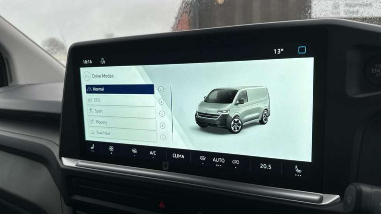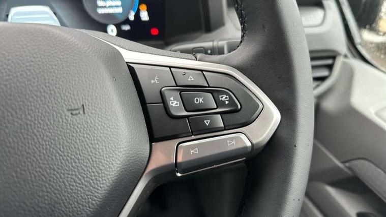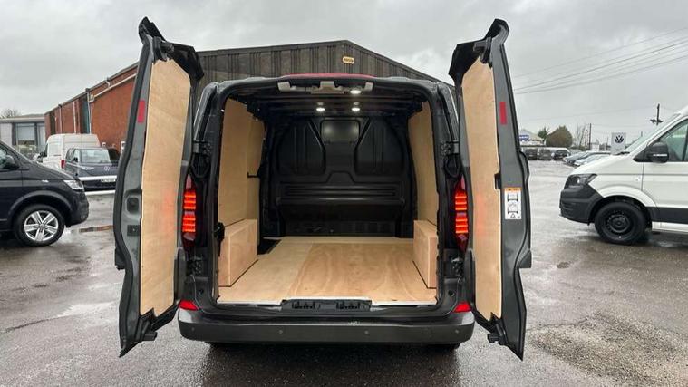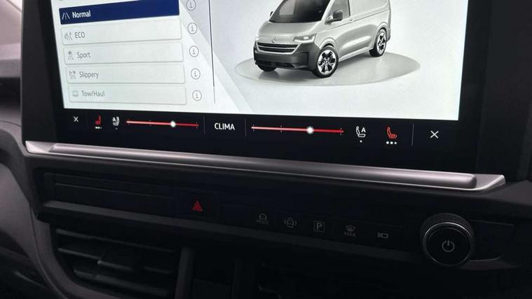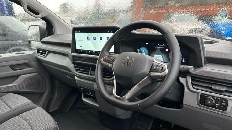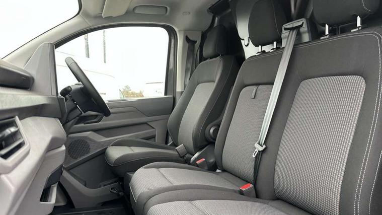 12" digital drivers display, 13" touchscreen infotainment display with wireless app connect and DAB radio, 5G Modem, Adaptive cruise control, Apple CarPlay and Android Auto, Dynamic road sign display, eCall emergency system, Electromechanical speed sensitive power steering, height and longitudinally adjustable steering column, Lane and blind spot assist with exit warning system, Preparation of VW connect and connect plus, Wireless mobile phone charging, Wrong way driver warning, Body colour bumpers, Body coloured door handles, Body coloured door mirrors, Body coloured radiator grille, Electrically heated, adjustable and folding door mirrors, Heat reflecting side window glass, Mud flaps front and rear, Rear Transporter nameplate in black grained decorative trim, Vehicle opening configuration 1x 1st row of seats, 2x all doors, 12V outlet in centre console and 12V outlet on rear right D-pillar, 2x 15-W USB data/charging ports in dashboard and 1x USB-C, 1x USB-A center bottom, 2x LED lights in load compartment, 3x additional super bright LED lights in load compartment, 4 way height and tilt adjustable head restraints, 5 additional USB-C charging ports, Black plastic scuff plate for sliding door in cargo without illumination, Cabin interior lighting, Glasses compartment in driver side roof, Grab handle on A-pillar passenger side, Illuminated lockable glovebox, Lashing rings for reinforced floor covering, Leatherette gear lever, Narrow centre console with cup holder and compartment for mobile phone, Overhead storage compartment, Rubber floor covering in cab, Striped fabric upholstery, Without passenger seats in load compartment, Driver and front passenger airbag with front passenger airbag deactivation, Dual tone horn, Front and curtain airbags for driver and front passenger, Seat belt pretensioner for driver seat, Anti theft alarm system with interior monitoring in cab, backup horn and towing protection, Electronic immobiliser, Lockable wheel bolts, Preparation for alcohol ignition interlock, 5+ Promise, Alternator - 230A, Electromechanical brake booster, Electronic stability control, ABS, ASR with deactivation button, hill start assist and brake assist system,
