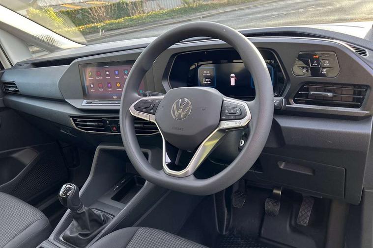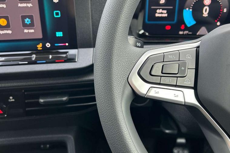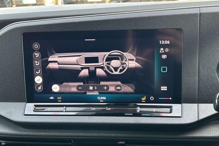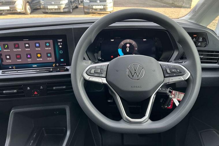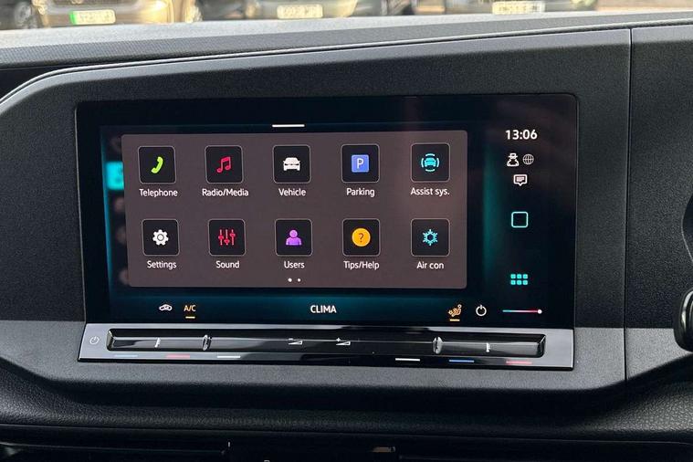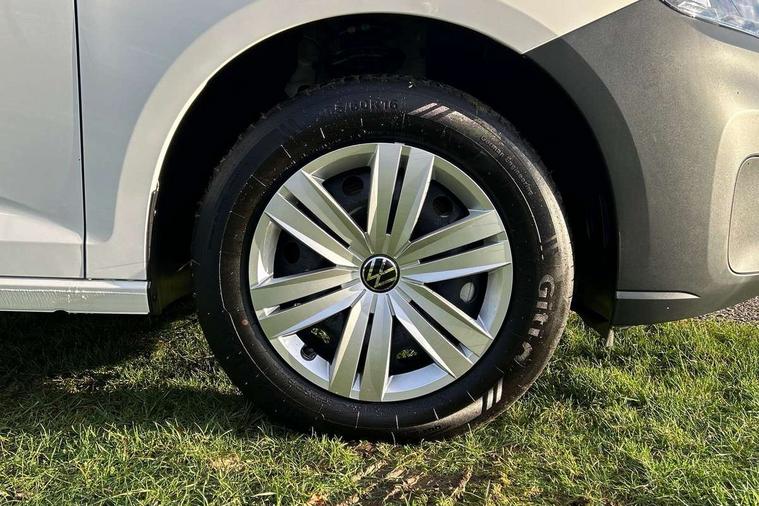 Bluetooth - Mobile phone interface, Car2X technology, Driver alert system, eCall emergency system, Intelligent Speed Assist, Lane assist, Seatbelt warning indicator, Service indicator, Start-stop system with regenerative braking, 2 USB interfaces type C in dashboard, DAB Radio, We Connect Basic Preparation, Automatic hazard light activation under emergency braking, Black front and rear bumpers, Electric front windows, Heat insulating windscreen, Roof rail preparation, Windscreen wiper with variable intermittent delay and wash-wipe system, Dimming breakaway interior rear view mirror, Electronically controlled heating system, Interior light in headliner incorporting LED technology, Lockable glove compartment door with light, Manual heating and ventilation system, Manual height adjustment for front seats, Reach and rake adjustable steering column, Six lashing points for securing loads, 3-point seat belts in front, with pretensioner and height adjustment, Driver and front passenger airbag with front passenger airbag deactivation, Tyre pressure monitoring system, Anti-theft alarm system, interior monitoring, backup horn, and towing protection, Electronic engine immobiliser, Remote central locking with deadlocks, interior locking, Anti locking braking system (ABS), Automatic post collision braking system, Autonomous Emergency Braking Front Assist with Pedestrian Monitoring, Brake assist, Diesel particulate filter, Electric parking brake with auto hold function, Electronic brake force distribution (EBD), Electronic differential lock (EDL), Electronic stabilisation programme (ESP), Engine drag torque control (MSR), Hill hold assist, Traction control system (TCS), Decorative beige birch vein inserts, Full size wheel trims,