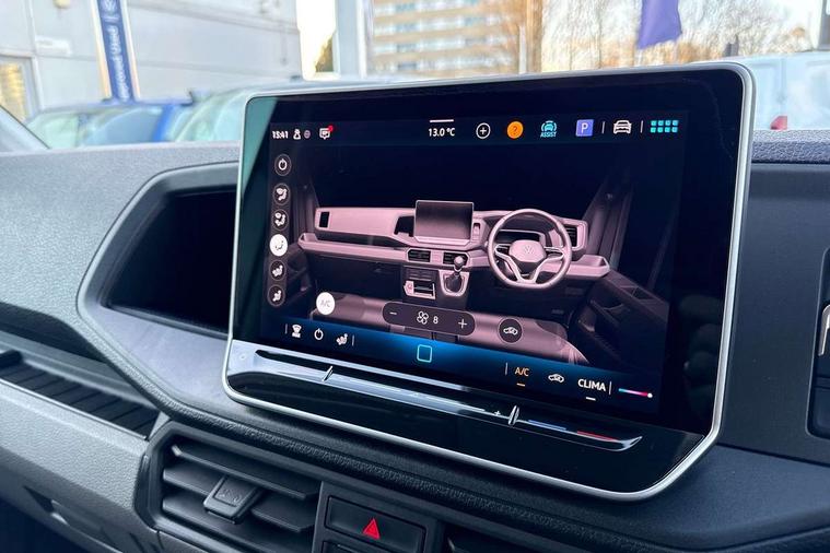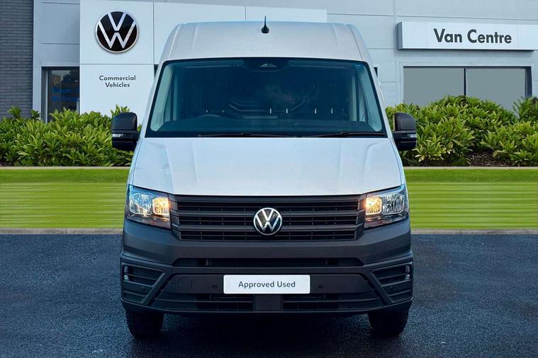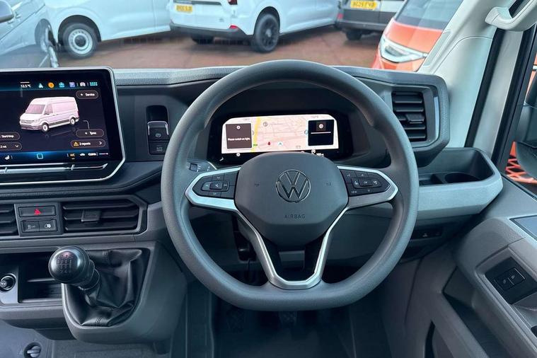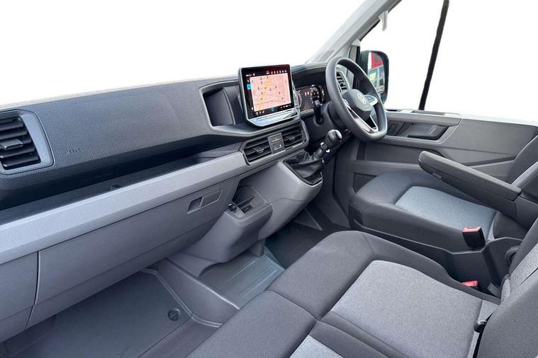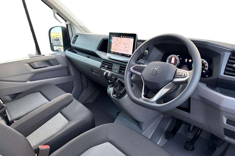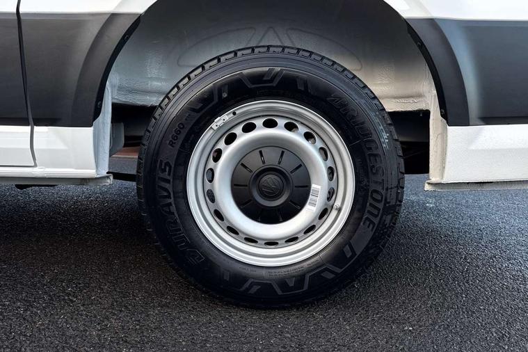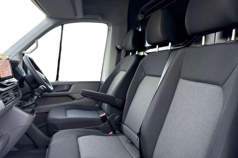Advanced driver attention and drowsiness monitor, Blind spot monitor, Bluetooth, Digital clock, Digital cockpit with active Info display, Dynamic road sign display, E-call + We connect basic preparation, Forward collision warning with warning and braking reaction to vehicles, pedestrians and cyclists, Front assist including city emergency braking, Instrument cluster, Lane keeping assist, Lights on warning buzzer, Locking fuel cap, Rev counter, Roof console for interior lighting control, Service indicator, Speedometer, USB socket at top of windscreen, Wireless charging, 2 USB C ports in dashboard, DAB Radio, Auto low beam mode, Leaving home function and manual coming home function, Black unpainted plastic front bumper, Cab doors, Convex and wide angle mirror, Driver seatbelt warning light, Electric windows, Heat insulating glass, Indicators in front door mirrors, One towing eye in front, Rear badges, Special identification plate, Touch panel control for exterior lights, Unpainted radiator grille, Windscreen wiper auto control with light and rain sensor, Air recirculation system, Ashtray, Centre console storage tray, CFCU preparation, Charcoal filter, Document holder on centre console, Drinks holders, Electromechanical Servotronic steering, Electronically controlled heating system, Fully adjustable suspension type driver seat, Height adjustable head restraints, Height and reach adjustable steering wheel, Illuminated glove compartment with lockable lid, Interior light, including 2 reading lights, Interior light, switchable by door, Jack and tool kit, Preparation for interface for external use with terminal block, Storage compartments in doors and in step, right, Storage tray on dashboard, Two 12V outlets in the cab (in the dashboard), Without rear side trim panel passenger load compartment, Non-smokers pack - Crafter, 3 point inertia reel belt on all seats, Automatic hazard light with emergency braking, Crosswind assist, Driver and front passenger airbag with front passenger airbag deactivation, Height adjustable seatbelts for outer cab seats, 1 rigid key, Central locking system with Keyless Go without SAFELOCK entry - Keyless entry and start, Engine immobiliser, ABS, Automatic post collision braking system, EBA, EBD, EDL, Electronic parking brake - hill hold control, ESP, Front disc brakes, HBA, Hill start assist, Start and stop system with regenerative braking, TCS, Hub cap covers,