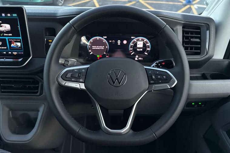 Bluetooth, Digital clock, Driver alert system, E-call + We connect basic preparation, Instrument cluster, Lights on warning buzzer, Locking fuel cap, Multi-function Display Plus, Rev counter, Service indicator, Speedometer, Voice control system, Composition media with 6.5" with we connect plus prep, 4 speaker, multifun display plus, USB, mob interface, app con, "We connect function", DAB Radio, Auto low beam mode, Leaving home function and manual coming home function, Cab doors, Convex and wide angle mirror, Driver seatbelt warning light, Electric windows, Electrically heated and adjustable door mirrors, Half painted front bumper, Heat insulating glass, Indicators in front door mirrors, One towing eye in front, Rear wing doors with 270 degree hinges, Special identification plate, Unpainted radiator grille, Air recirculation system, Ashtray, Centre console storage tray, CFCU preparation, Charcoal filter, Climatic air conditioning, Document holder on centre console, Drinks holders, Electromechanical Servotronic steering, Electronically controlled heating system, Fully adjustable suspension type driver seat, Grab handles on rear entry pillars, Height adjustable head restraints, Height and reach adjustable steering wheel, Illuminated glove compartment with lockable lid, Interior light, including 2 reading lights, Interior light, switchable by door, Jack and tool kit, Preparation for interface for external use with terminal block, Storage compartments in doors and in step, right, Storage tray on dashboard, Two 12V outlets in the cab (in the dashboard), Without rear side trim panel passenger load compartment, Non-smokers pack - Crafter, 3 point inertia reel belt on all seats, Automatic hazard light with emergency braking, Crosswind assist, Driver and front passenger airbag with front passenger airbag deactivation, Height adjustable seatbelts for outer cab seats, 1 rigid key, Anti-theft alarm with interior monitor, back up horn and tow away protect, overhead storage with two 1-DIN, reading light, SAFELOCK with 2 remote keys, Engine immobiliser, ABS, Automatic post collision braking system, EBA, EBD, EDL, ESP, Front disc brakes, HBA, Hill start assist, Parking brake - hill hold control, Start and stop system with regenerative braking, TCS, Hub cap covers,