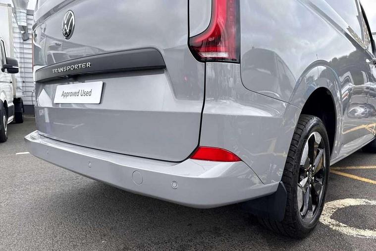 12" digital drivers display, 13" touchscreen infotainment display with wireless app connect and DAB radio, 5G Modem, Adaptive cruise control, Apple CarPlay and Android Auto, Dynamic road sign display, eCall emergency system, Electromechanical speed sensitive power steering, height and longitudinally adjustable steering column, Lane and blind spot assist with exit warning system, Preparation of VW connect and connect plus, Wireless mobile phone charging, Wrong way driver warning, Body colour bumpers, Body coloured door handles, Body coloured door mirrors, Body coloured radiator grille, Electrically heated, adjustable and folding door mirrors, Heat reflecting side window glass, Mud flaps front and rear, Rear Transporter nameplate in black grained decorative trim, Vehicle opening configuration 1x 1st row of seats, 2x all doors, 12V outlet in centre console and 12V outlet on rear right D-pillar, 2x 15-W USB data/charging ports in dashboard and 1x USB-C, 1x USB-A center bottom, 2x LED lights in load compartment, 3x additional super bright LED lights in load compartment, 4 way height and tilt adjustable head restraints, 5 additional USB-C charging ports, Black plastic scuff plate for sliding door in cargo without illumination, Cabin interior lighting, Glasses compartment in driver side roof, Grab handle on A-pillar passenger side, Illuminated lockable glovebox, Lashing rings for reinforced floor covering, Leatherette gear lever, Narrow centre console with cup holder and compartment for mobile phone, Overhead storage compartment, Rubber floor covering in cab, Striped fabric upholstery, Without passenger seats in load compartment, Driver and front passenger airbag with front passenger airbag deactivation, Dual tone horn, Front and curtain airbags for driver and front passenger, Seat belt pretensioner for driver seat, Anti theft alarm system with interior monitoring in cab, backup horn and towing protection, Electronic immobiliser, Lockable wheel bolts, Preparation for alcohol ignition interlock, 5+ Promise, Alternator - 230A, Electromechanical brake booster, Electronic stability control, ABS, ASR with deactivation button, hill start assist and brake assist system,