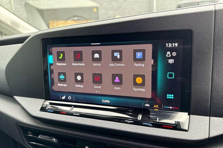 Bluetooth - Mobile phone interface, Car2X technology, Driver alert system, eCall emergency system, Intelligent Speed Assist, Lane assist, Seatbelt warning indicator, Service indicator, Start-stop system with regenerative braking, 2 USB interfaces type C in dashboard, DAB Radio, We Connect Basic Preparation, Automatic hazard light activation under emergency braking, Electric front windows, Heat insulating windscreen, Roof rail preparation, Windscreen wiper with variable intermittent delay and wash-wipe system, Dimming breakaway interior rear view mirror, Electronically controlled heating system, ergoComfort seats for driver, Interior light in headliner incorporting LED technology, Lockable glove compartment door with light, Manual heating and ventilation system, Manual height adjustment for front seats and seat cushion inclination and depth adjustment on drivers seat, Multi function leather steering wheel, Power-adjustable lumbar support for drivers seat, Reach and rake adjustable steering column, Six lashing points for securing loads, Steering wheel paddle shift, Storage compartments under driver and front passenger seats, Sun visors with mirror, airbag label on front passenger sun visor, 3-point seat belts in front, with pretensioner and height adjustment, Driver and front passenger airbag with front passenger airbag deactivation, Tyre pressure monitoring system, Anti-theft alarm system, interior monitoring, backup horn, and towing protection, Electronic engine immobiliser, Remote central locking with deadlocks, interior locking, Anti locking braking system (ABS), Automatic post collision braking system, Brake assist, Diesel particulate filter, Electric parking brake with auto hold function, Electronic brake force distribution (EBD), Electronic differential lock (EDL), Electronic stabilisation programme (ESP), Engine drag torque control (MSR), Hill hold assist, Traction control system (TCS), Decorative beige birch vein inserts, Full size wheel trims,