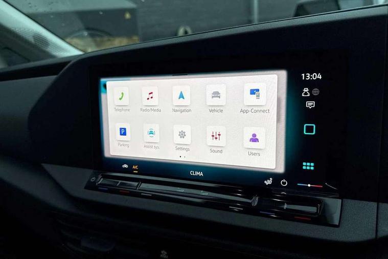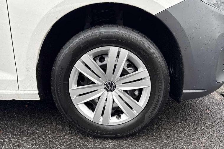 Bluetooth - Mobile phone interface, Car2X technology, Driver alert system, eCall emergency system, Intelligent Speed Assist, Lane assist, Seatbelt warning indicator, Service indicator, Start-stop system with regenerative braking, 2 USB interfaces type C in dashboard, DAB Radio, We Connect Basic Preparation, Automatic hazard light activation under emergency braking, Black front and rear bumpers, Electric front windows, Heat insulating windscreen, Roof rail preparation, Windscreen wiper with variable intermittent delay and wash-wipe system, Dimming breakaway interior rear view mirror, Electronically controlled heating system, Interior light in headliner incorporting LED technology, Lockable glove compartment door with light, Manual heating and ventilation system, Manual height adjustment for front seats, Reach and rake adjustable steering column, Six lashing points for securing loads, 3-point seat belts in front, with pretensioner and height adjustment, Driver and front passenger airbag with front passenger airbag deactivation, Tyre pressure monitoring system, Anti-theft alarm system, interior monitoring, backup horn, and towing protection, Electronic engine immobiliser, Remote central locking with deadlocks, interior locking, Anti locking braking system (ABS), Automatic post collision braking system, Autonomous Emergency Braking Front Assist with Pedestrian Monitoring, Brake assist, Diesel particulate filter, Electric parking brake with auto hold function, Electronic brake force distribution (EBD), Electronic differential lock (EDL), Electronic stabilisation programme (ESP), Engine drag torque control (MSR), Hill hold assist, Traction control system (TCS), Decorative beige birch vein inserts, Full size wheel trims,