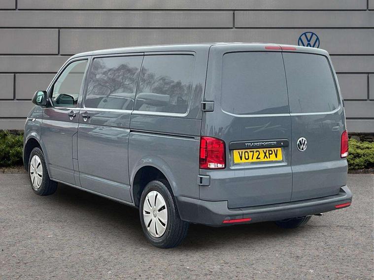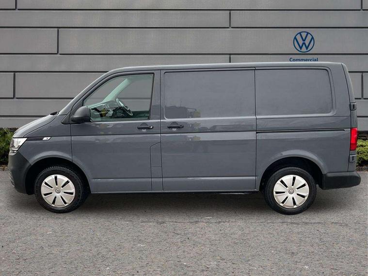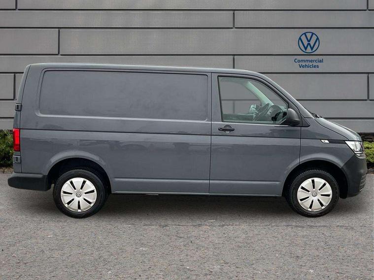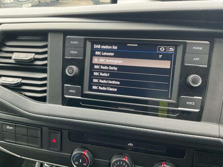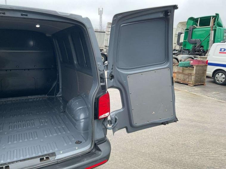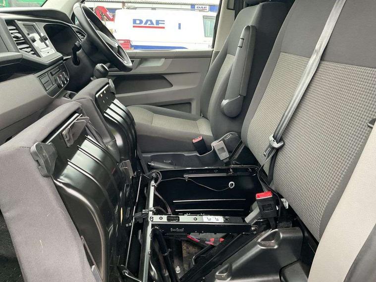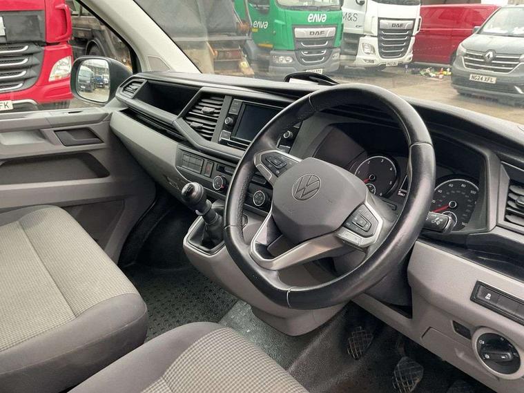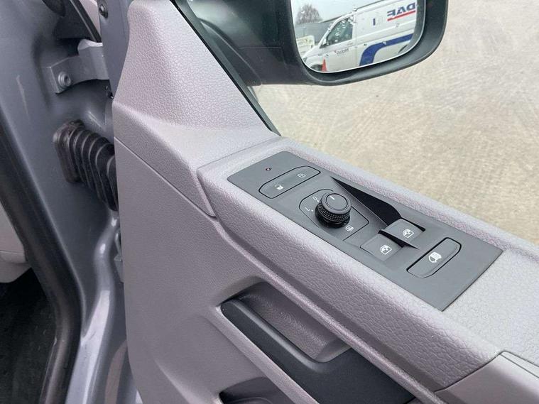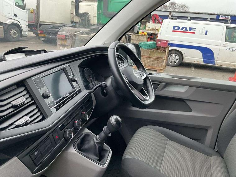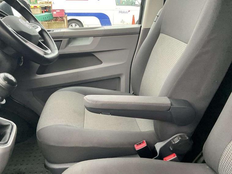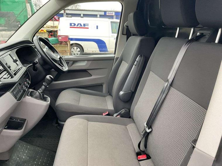 Cross wind assist, Dimmable illuminated instruments, Driver alert with Multi-function display plus, eCall emergency system, Forward collision warning front assist with autonomous emergency braking, Mobile phone interface, Multi function display plus with black and white display, 2 USB interfaces type C in dashboard, 4 speakers with 2 tweeters and 2 woofers, Composition colour radio with 6.5" touchscreen, Digital radio reception (DAB+), Volkswagen app connect, 4 stages windshield wiper intermittent control for windshield wipers, Closing rear wing door with unlatching from the inside, H7 twin halogen headlamps, Heat insulating glass (green) in cab and passenger/load compartment, Heat insulating windshield made of laminated glass, Left convex exterior mirror, Rear wing doors without window apertures, Right convex exterior mirror, Separate Daytime running lights, Transporter nameplate on the rear fender, Unpainted radiator grille with 2 chrome trims, 3 spoke leather wrapped multi function steering wheel, Comfort headliner in cab, hardboard roof trim in passenger and load compartment, Dust/pollen filter, Folding grab handles on roof frame, Front and rear left without window closed side panel in load compartment, Front seats on the right in 1st row of seat, Glove compartment without illumination, Heavy duty tool kit and jack, High partition, Interior plastic loading edge protection, LED Interior lighting in load and passenger compartment, Manual adjustable lumbar support for right single seat in 1st row seats, Standard lower part dashboard in palladium, Without breakaway interior rear view mirror, Without refrigerant, Without right side window apertures in passenger and load compartment, Non smoker pack - Transporter, 3 point height adjustable seat belts on outer seats cab with electric pretensioners, Driver and front passenger airbag with front passenger airbag deactivation, Warning buzzer and light for driver and front passenger seat belt not fastened, Without child safety lock in passenger compartment, Electronic immobiliser, Wheel bolts without wheel locks, 16" chassis with 16" brake system, Diesel particulate filter, Electronic stability control, ABS, ASR with deactivation button, hill start assist and brake assist system, Standard anti drum measures, Start/stop system with regenerative breaking,