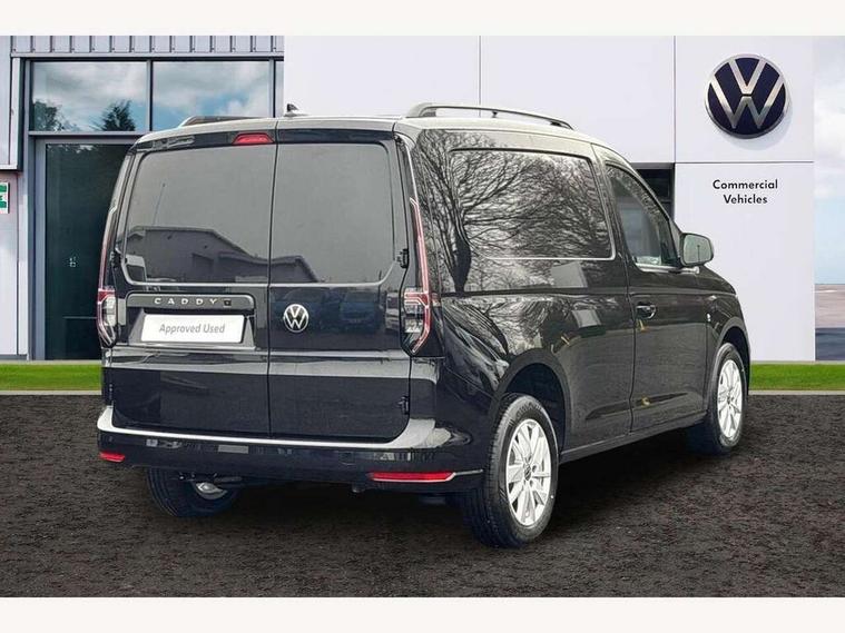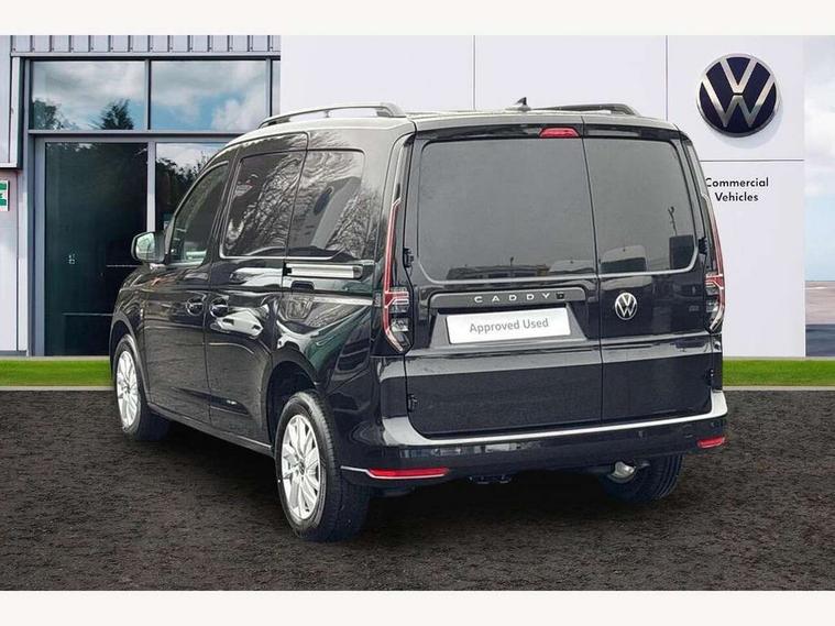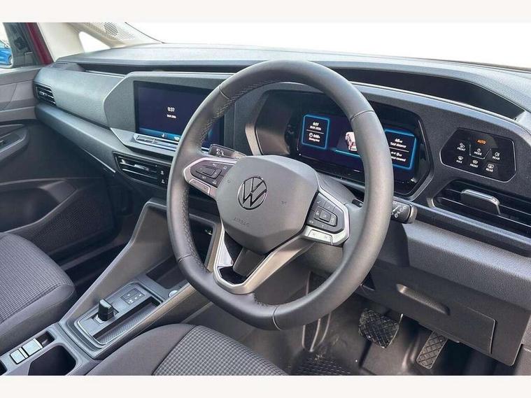 Bluetooth - Mobile phone interface, Car2X technology, Driver alert system, eCall emergency system, Intelligent Speed Assist, Lane assist, Seatbelt warning indicator, Service indicator, Start-stop system with regenerative braking, 2 USB interfaces type C in dashboard, App-Connect - Wireless for Apple CarPlay, DAB Radio, We Connect Plus Preparation, Automatic hazard light activation under emergency braking, Black painted exterior mirror housings, body-colored door handles and Silver sliding door rail, Body coloured bumpers, Electric front windows, LED rear combination lights, LED rear tail lights, Roof rail preparation, Windscreen wiper with variable intermittent delay and wash-wipe system, Dimming breakaway interior rear view mirror, Electronically controlled heating system, ergoComfort seats for driver, Interior light in headliner incorporting LED technology, Lockable glove compartment door with light, Manual heating and ventilation system, Manual height adjustment for front seats and seat cushion inclination and depth adjustment on drivers seat, Multi function leather steering wheel, Power-adjustable lumbar support for drivers seat, Reach and rake adjustable steering column, Six lashing points for securing loads, Steering wheel paddle shift, Storage compartments under driver and front passenger seats, Sun visors with mirror, airbag label on front passenger sun visor, Winter pack plus - Caddy, 3-point seat belts in front, with pretensioner and height adjustment, Driver and front passenger airbag with front passenger airbag deactivation, Tyre pressure monitoring system, Anti-theft alarm system, interior monitoring, backup horn, and towing protection, Electronic engine immobiliser, Remote central locking with deadlocks, interior locking, Anti locking braking system (ABS), Automatic post collision braking system, Brake assist, Diesel particulate filter, Electric parking brake with auto hold function, Electronic brake force distribution (EBD), Electronic differential lock (EDL), Electronic stabilisation programme (ESP), Engine drag torque control (MSR), Hill hold assist, Traction control system (TCS), Decorative beige birch vein inserts, Wheel bolts with anti-theft protection (unlockable),