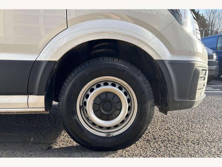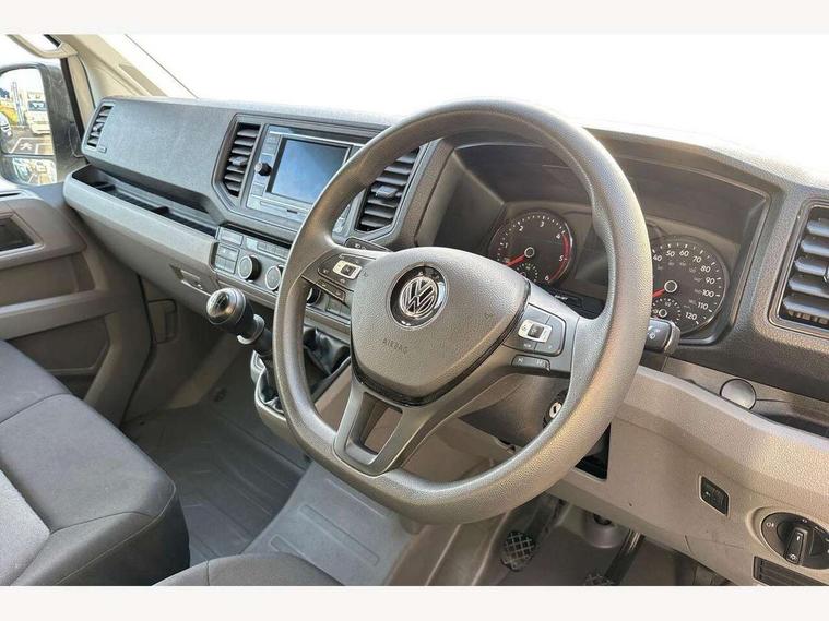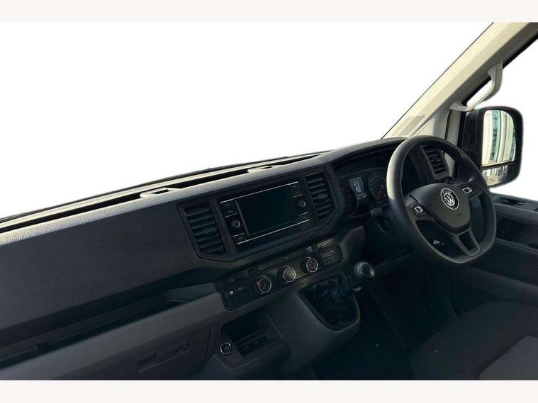 Bluetooth, Digital clock, Driver alert system, E-call + We connect basic preparation, Instrument cluster, Lights on warning buzzer, Locking fuel cap, Multi-function Display Plus, Rev counter, Service indicator, Speedometer, Voice control system, Composition media with 6.5" with we connect plus prep, 4 speaker, multifun display plus, USB, mob interface, app con, "We connect function", DAB Radio, Auto low beam mode, Leaving home function and manual coming home function, Cab doors, Convex and wide angle mirror, Driver seatbelt warning light, Electric windows, Electrically heated and adjustable door mirrors, Half painted front bumper, Heat insulating glass, Indicators in front door mirrors, One towing eye in front, Rear wing doors with 270 degree hinges, Special identification plate, Unpainted radiator grille, Air recirculation system, Ashtray, Centre console storage tray, CFCU preparation, Charcoal filter, Climatic air conditioning, Document holder on centre console, Drinks holders, Electromechanical Servotronic steering, Electronically controlled heating system, Fully adjustable suspension type driver seat, Grab handles on rear entry pillars, Height adjustable head restraints, Height and reach adjustable steering wheel, Illuminated glove compartment with lockable lid, Interior light, including 2 reading lights, Interior light, switchable by door, Jack and tool kit, Preparation for interface for external use with terminal block, Storage compartments in doors and in step, right, Storage tray on dashboard, Two 12V outlets in the cab (in the dashboard), Without rear side trim panel passenger load compartment, Non-smokers pack - Crafter, 3 point inertia reel belt on all seats, Automatic hazard light with emergency braking, Crosswind assist, Driver and front passenger airbag with front passenger airbag deactivation, Height adjustable seatbelts for outer cab seats, 1 rigid key, Anti-theft alarm with interior monitor, back up horn and tow away protect, overhead storage with two 1-DIN, reading light, SAFELOCK with 2 remote keys, Engine immobiliser, ABS, Automatic post collision braking system, EBA, EBD, EDL, ESP, Front disc brakes, HBA, Hill start assist, Parking brake - hill hold control, Start and stop system with regenerative braking, TCS, Hub cap covers,