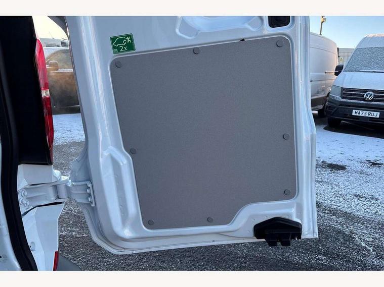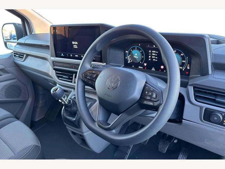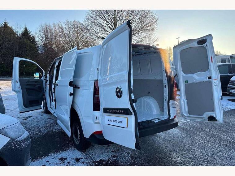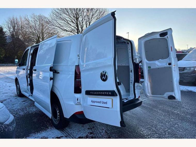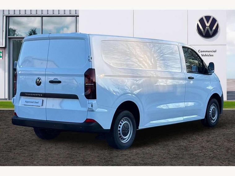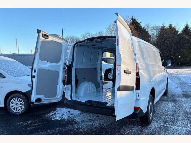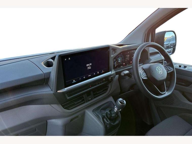 12" digital drivers display, 13" touchscreen infotainment display with wireless app connect and DAB radio, 5G Modem, Apple CarPlay and Android Auto, Cruise control, Dynamic road sign display, eCall emergency system, Electromechanical speed sensitive power steering, height and longitudinally adjustable steering column, Lane assist, Preparation of VW connect and connect plus, Wrong way driver warning, 4 speakers - 2x dashboard, 2x cab doors, Grained black door handles, Heat reflecting side window glass, High beam control, Laminated windshield made of heat-reflecting glass, LED rear combination lamps, Rear Transporter nameplate in black grained decorative trim, Vehicle opening configuration 1x 1st row of seats, 2x all doors, 2x 15-W USB data/charging ports in dashboard and 1x USB-C, 1x USB-A center bottom, 2x LED lights in load compartment, 4 way height and tilt adjustable head restraints, Black plastic scuff plate for sliding door in cargo without illumination, Cabin interior lighting, Lashing rings for reinforced floor covering, Narrow centre console with cup holder and compartment for mobile phone, Overhead storage compartment, Plastic gear lever, Roof grab handle on front passenger side, Rubber floor covering in cab, Standard glove compartment, Striped fabric upholstery, Without passenger seats in load compartment, Exterior pack 1 - Transporter, Interior trim pack - Transporter, Driver and front passenger airbag with front passenger airbag deactivation, Dual tone horn, Front and curtain airbags for driver and front passenger, Seat belt pretensioner for driver seat, Electronic immobiliser, Preparation for alcohol ignition interlock, 5+ Promise, Alternator - 230A, Electronic stability control, ABS, ASR with deactivation button, hill start assist and brake assist system,