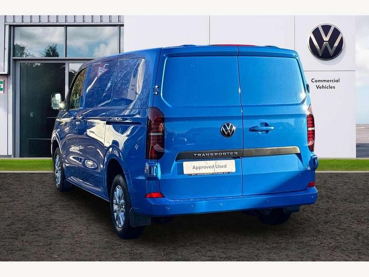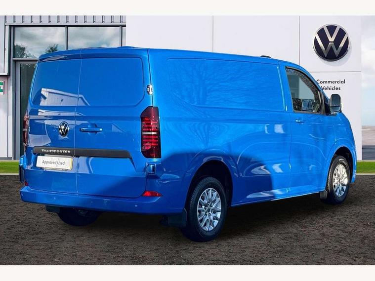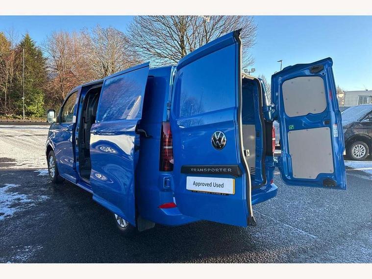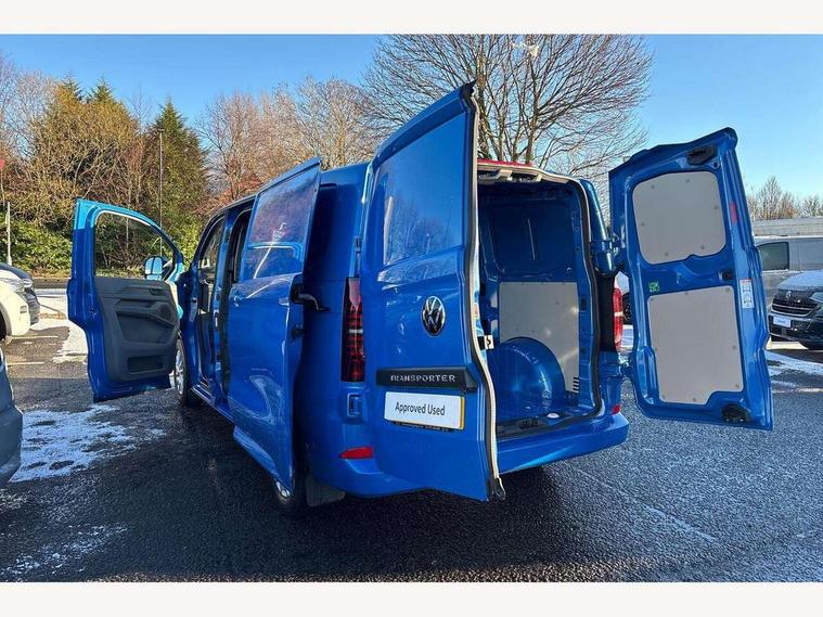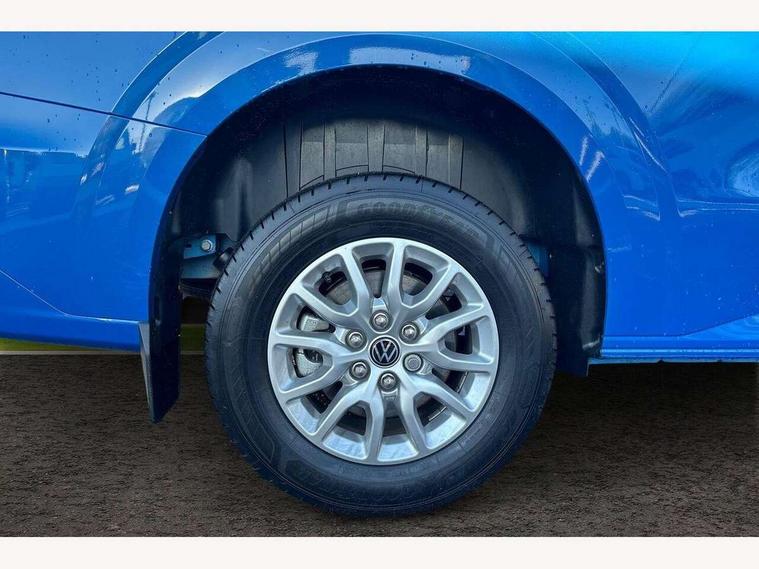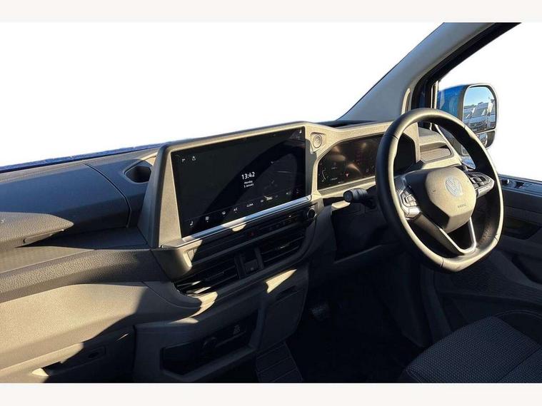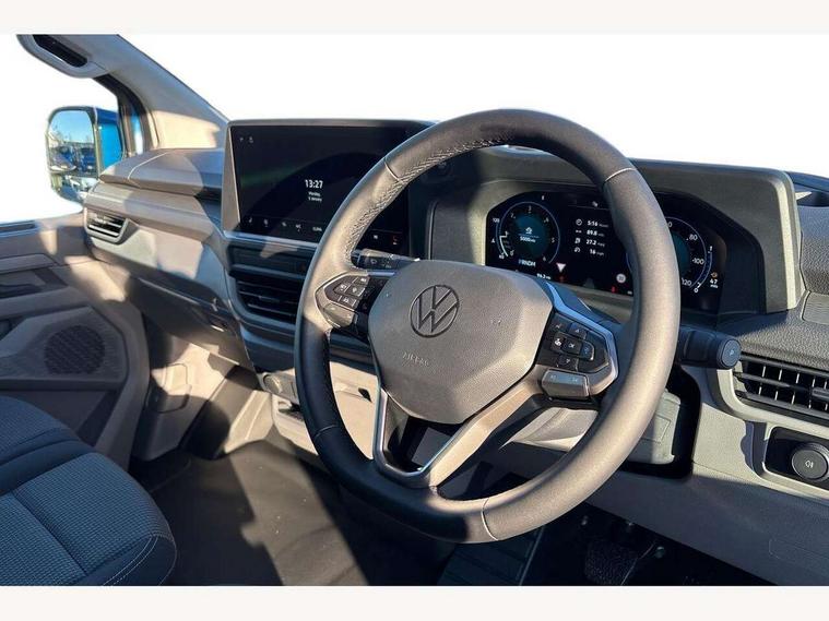 12" digital drivers display, 13" touchscreen infotainment display with wireless app connect and DAB radio, 5G Modem, Adaptive cruise control, Apple CarPlay and Android Auto, Dynamic road sign display, eCall emergency system, Electromechanical speed sensitive power steering, height and longitudinally adjustable steering column, Lane and blind spot assist with exit warning system, Preparation of VW connect and connect plus, Wireless mobile phone charging, Wrong way driver warning, Body colour bumpers, Body coloured door handles, Body coloured door mirrors, Body coloured radiator grille, Electrically heated, adjustable and folding door mirrors, Heat reflecting side window glass, Mud flaps front and rear, Rear Transporter nameplate in black grained decorative trim, Vehicle opening configuration 1x 1st row of seats, 2x all doors, 12V outlet in centre console and 12V outlet on rear right D-pillar, 2x 15-W USB data/charging ports in dashboard and 1x USB-C, 1x USB-A center bottom, 2x LED lights in load compartment, 3x additional super bright LED lights in load compartment, 4 way height and tilt adjustable head restraints, 5 additional USB-C charging ports, Black plastic scuff plate for sliding door in cargo without illumination, Cabin interior lighting, Glasses compartment in driver side roof, Grab handle on A-pillar passenger side, Illuminated lockable glovebox, Lashing rings for reinforced floor covering, Leatherette gear lever, Narrow centre console with cup holder and compartment for mobile phone, Overhead storage compartment, Rubber floor covering in cab, Striped fabric upholstery, Without passenger seats in load compartment, Driver and front passenger airbag with front passenger airbag deactivation, Dual tone horn, Front and curtain airbags for driver and front passenger, Seat belt pretensioner for driver seat, Anti theft alarm system with interior monitoring in cab, backup horn and towing protection, Electronic immobiliser, Lockable wheel bolts, Preparation for alcohol ignition interlock, 5+ Promise, Alternator - 230A, Electromechanical brake booster, Electronic stability control, ABS, ASR with deactivation button, hill start assist and brake assist system,