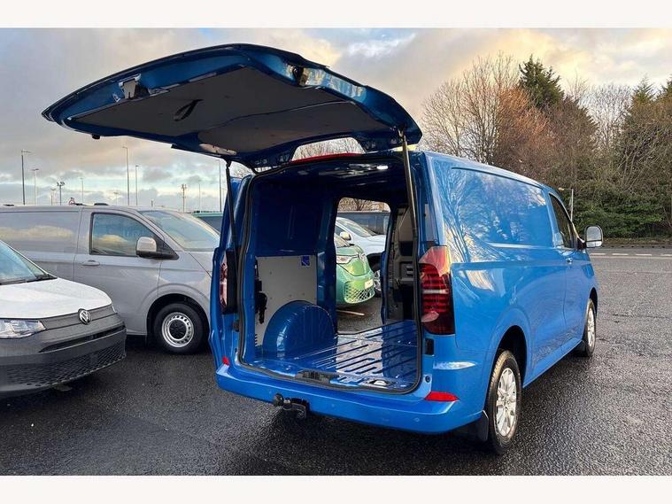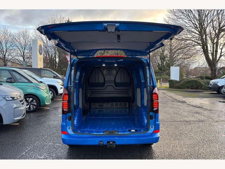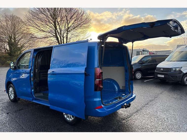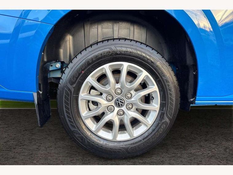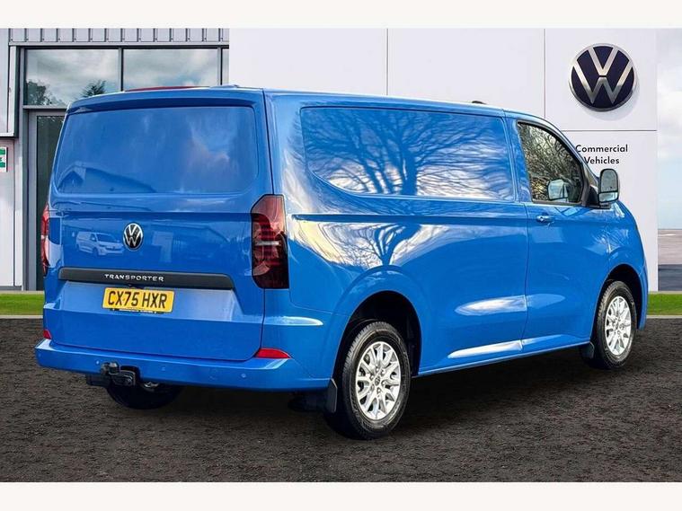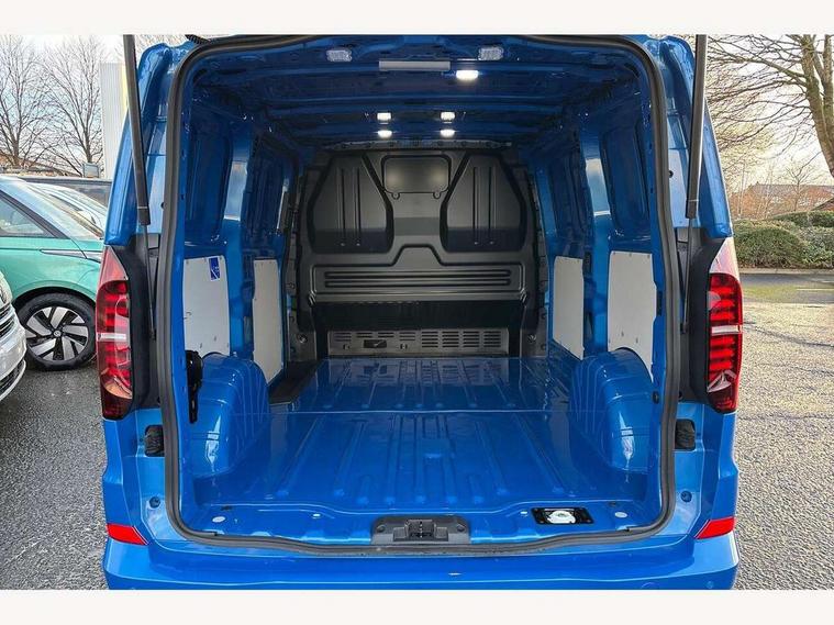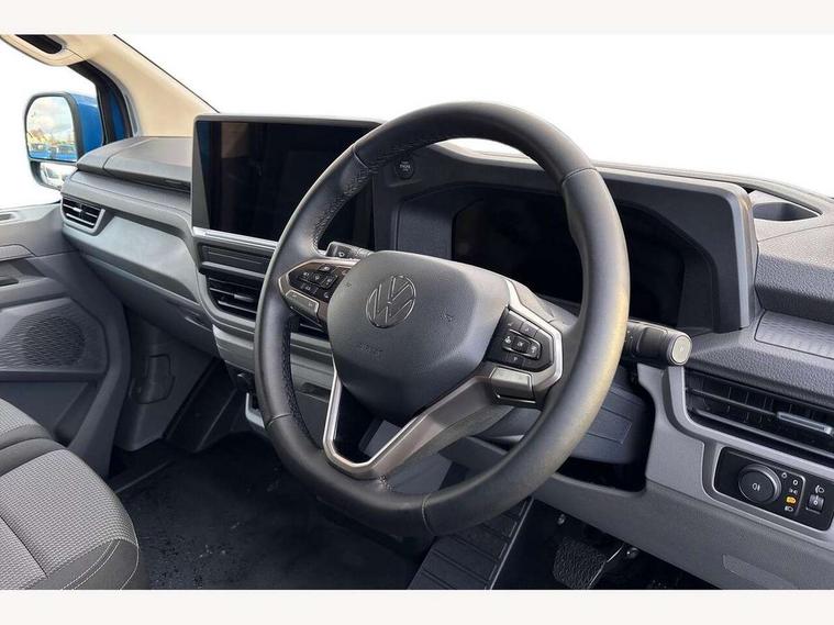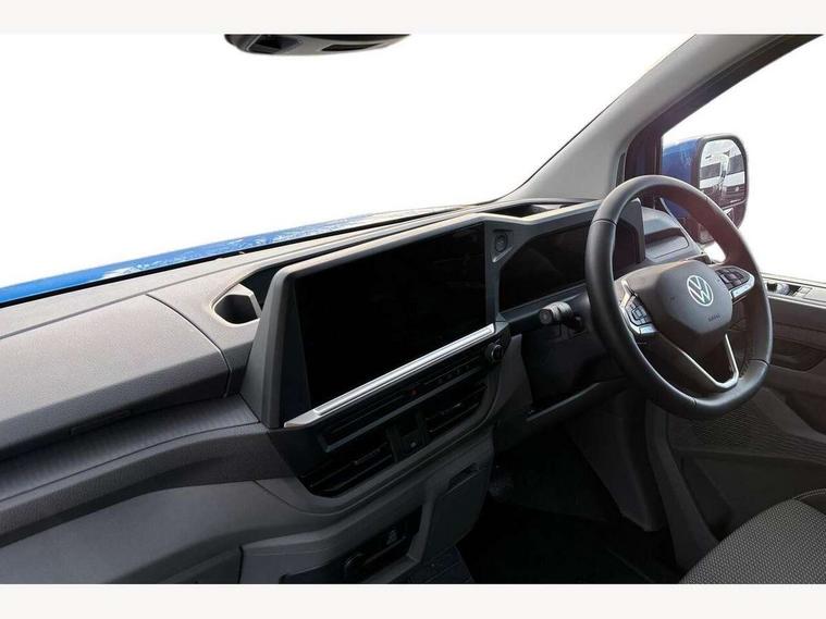 12" digital drivers display, 13" touchscreen infotainment display with wireless app connect and DAB radio, 5G Modem, Adaptive cruise control, Apple CarPlay and Android Auto, Dynamic road sign display, eCall emergency system, Electromechanical speed sensitive power steering, height and longitudinally adjustable steering column, Lane and blind spot assist with exit warning system, Preparation of VW connect and connect plus, Traffic jam assist, Wireless mobile phone charging, Wrong way driver warning, Body colour bumpers, Body coloured door handles, Body coloured door mirrors, Body coloured radiator grille, Electrically heated, adjustable and folding door mirrors, Heat reflecting side window glass, Mud flaps front and rear, Rear Transporter nameplate in black grained decorative trim, Vehicle opening configuration 1x 1st row of seats, 2x all doors, 12V outlet in centre console and 12V outlet on rear right D-pillar, 2x 15-W USB data/charging ports in dashboard and 1x USB-C, 1x USB-A center bottom, 2x LED lights in load compartment, 3x additional super bright LED lights in load compartment, 4 way height and tilt adjustable head restraints, 5 additional USB-C charging ports, Black plastic scuff plate for sliding door in cargo without illumination, Cabin interior lighting, Gear selector lever on steering wheel, Glasses compartment in driver side roof, Grab handle on A-pillar passenger side, Illuminated lockable glovebox, Lashing rings for reinforced floor covering, Narrow centre console with cup holder and compartment for mobile phone, Overhead storage compartment, Rubber floor covering in cab, Striped fabric upholstery, Without passenger seats in load compartment, Driver and front passenger airbag with front passenger airbag deactivation, Dual tone horn, Front and curtain airbags for driver and front passenger, Seat belt pretensioner for driver seat, Anti theft alarm system with interior monitoring in cab, backup horn and towing protection, Electronic immobiliser, Lockable wheel bolts, Preparation for alcohol ignition interlock, 5+ Promise, Alternator - 230A, Electromechanical brake booster, Electronic stability control, ABS, ASR with deactivation button, hill start assist and brake assist system,