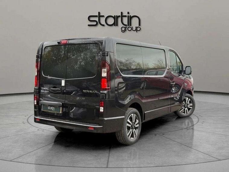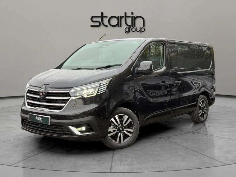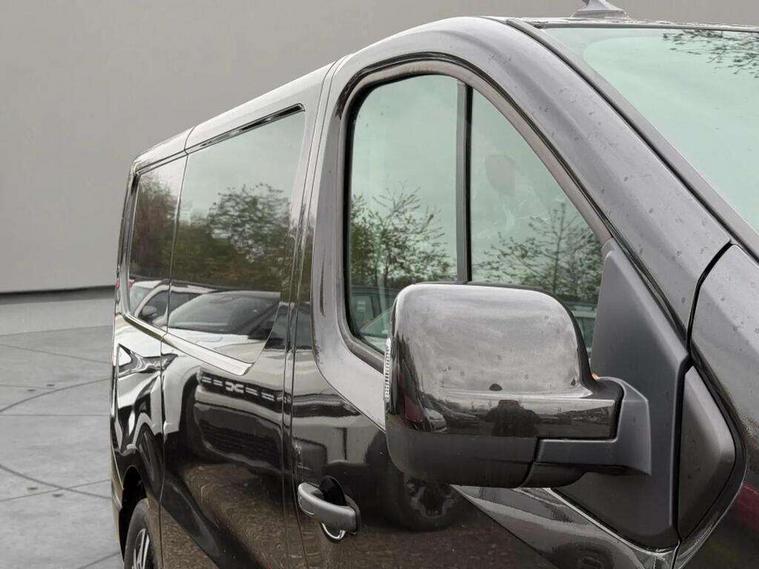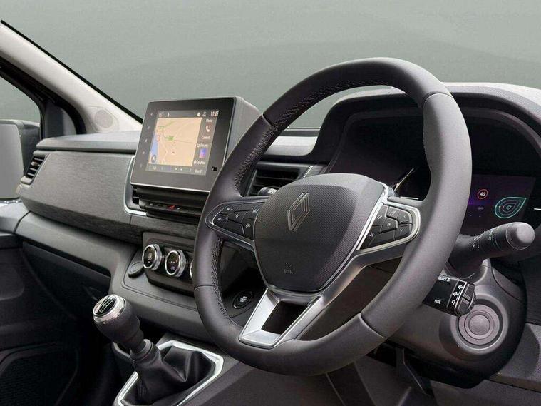 360 degree parking sensors (front, rear and lateral ultra sonic sensors), 7" Colour TFT driver information display, Driver attention alert, Driver drowsiness warning, E-Call - automated emergency call, Easy link navigation with 8" touchscreen DAB radio with bluetooth, USB + aux input, compatible with Apple CarPlay and Android Auto, ECO mode button, Gearshift indicator, Intelligent Speed Assist, Lane departure warning system, PAS, Rear parking camera, Trip computer, Wireless smart phone integration with Android auto & Apple CarPlay, Automatic high beam, Blind spot mirror on passenger sunvisor, Body coloured door mirrors, Body coloured door rail and rear tail light column with chrome grille, Body coloured front bumper, Body coloured side mouldings, Chrome Grille, Electric folding door mirrors, Electric front windows with one touch drivers window, Front fog lights, Full LED headlights with C-shaped DRL, New brand identity, Roof bar fixings, Wide view mirror, 12V power socket in front, 14 load anchorage points, Climate control, Closed glovebox, Height adjustable drivers seat with armrest and lumbar adjustment, Interior LED cabin lighting, Java cloth upholstery, LED load space lighting, Premium dashboard with horizontal grain and chrome styling, Premium faux leather steering wheel, Look pack - Trafic, Parking pack - Trafic, Visibility pack - Trafic, 3 point height adjustable seatbelts with pretensioners and load limiter, Driver and passenger airbags, Driver and passenger seatbelt reminder, Front lateral and curtain airbags and passenger airbag with deactivation, Alarm - Thatcham T1 volumetric alarm, Alcohol interlock pre-device, Deadlocking, Electronic immobiliser, Hands free key card with push button stop/start function, Keyless entry system, Remote central locking, 20L AdBlue tank, 4 disc brakes, 6 speed gearbox, 80 litre fuel tank, ABS with EBD (Electronic Brake force Distribution), Active emergency braking system, ESC (Electronic Stability Control) with Hill Start Assist and Grip Xtend, 17" Avens diamond cut alloy wheels,