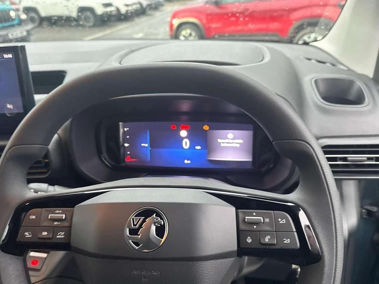 10" digital instrumental cluster, Bluetooth connectivity, Central facia display with audio information, clock and outside air temperature, Cruise control with speed limiters, Driver attention alert, e-Call and b-Call, Intelligent speed assistant, Lane keep assist, Lights on audible warning, Multi-function trip computer, Speed sensitive electric power assisted system, Vauxhall connect, 2D/3D street level mapping, Apple Carplay/Android Auto, Bluetooth A2DP audio streaming, Eco routing, Map updates via USB, Multimedia pro navi with 10" HD screen with wireless mirror screen, fully integrated satellite navigation, AM/FM/DAB, 4G, natural voice control, Phone book access, Points of interest search, RDS with Traffic Programme, Steering wheel mounted audio and phone controls, Two speakers and two front tweeters, USB connection, Vehicle microphone, Asymmetrical solid panel rear doors, Automatic on/off headlight control, Black door handles, Black painted door mirrors, Black painted side protection mouldings, Body colour rear bumpers, Body colour side sliding door rail cover, Body coloured front bumper, Digital rear view mirror and lateral side view, Electrically adjustable + heated door mirrors, Electrically operated front windows with safety autoreverse one touch facility, Flexible roof mounted aerial, Hazard warning lights, High beam assist, Magic wash system, Matrix LED headlights with integrated daytime running lights, Nearside sliding side access door, Rain sensitive windscreen wipers, Reversing lights, Shiny black door mirrors, Solar heat absorbing windscreen, Tinted windows, Two speed windscreen wipers with variable intermittent wipe, 12 volt socket in dashboard, 6 way adjustable drivers seat with lumbar, Air recirculation system, Black air vents, Black interior door handles, Comfort driver seat, Driver and front passenger sun visor and vanity mirror on rear of drivers sunvisor, Driver's armrest, Driver's top lidded glovebox, Fabric upholstery, Full steel bulkhead with cloth hooks, Hard plastic floor protection in cabin, Heated leather steering wheel, Manual air conditioning, Overhead storage shelf in cabin, PVC floor covering in cabin, Reach and rake adjustable steering column, Six Fixed floor mounted load restraint lashing eyes, Sport steering wheel, City pack - Combo, Comfort connect look pack - Combo, Flex cargo pack - Combo, 3x3 point rear seatbelts, Deactivation switch for front passenger airbag and side impact airbag, Driver and front passenger airbags, side impact airbags and curtain airbags, Energy absorbing steering column, Side impact protection beams, Reinforced passenger safety cell and front and rear deformation zones, Front body lock diagonal seatbelt pretensioner system, Front seatbelt force limiters, Height adjustable front seatbelts, Seatbelts with action, Tyre pressure monitoring system, 2 folding keys with integral remote control function, Dashboard mounted central locking push button and auto locking above 7mph, Electronically protected audio, Engine deadlock immobiliser, Remote central locking and deadlocks, Remote control operates on doors and fuel filler, Remote control ultrasonic security alarm system, Visible Vehicle Identification Number (VIN), Advanced emergency braking system (AEBS), Anti-lock braking, Anti-roll bar, Electric parking brake, Electronic brake force distribution, Electronic Stability Control (ESC) with traction control, Engine drag torque control, Hill start assist, Independent MacPherson front suspension with gas pressure dampers and linear-rate coil springs, Rear torsion beam with gas pressure dampers and variable rate coil springs, Goodyear tyres,