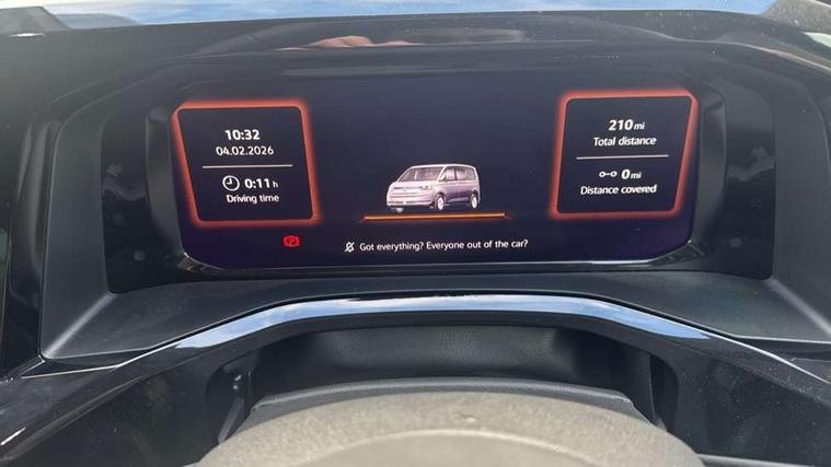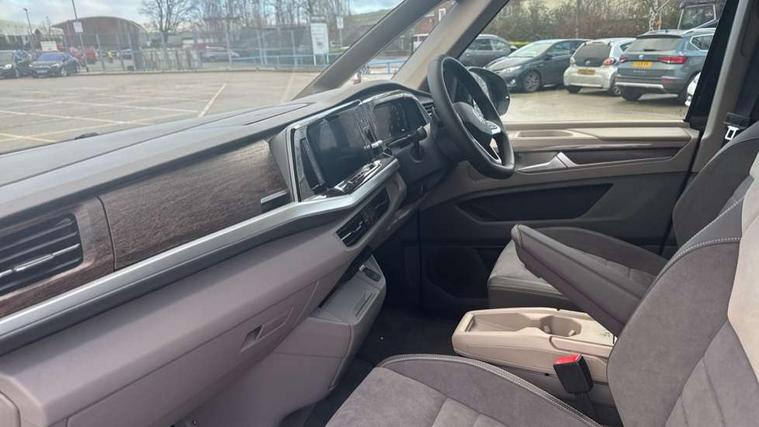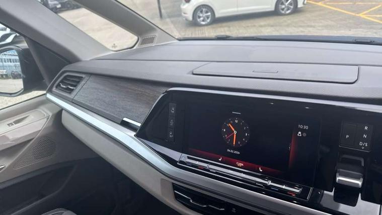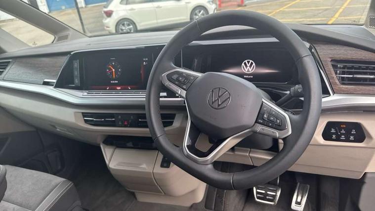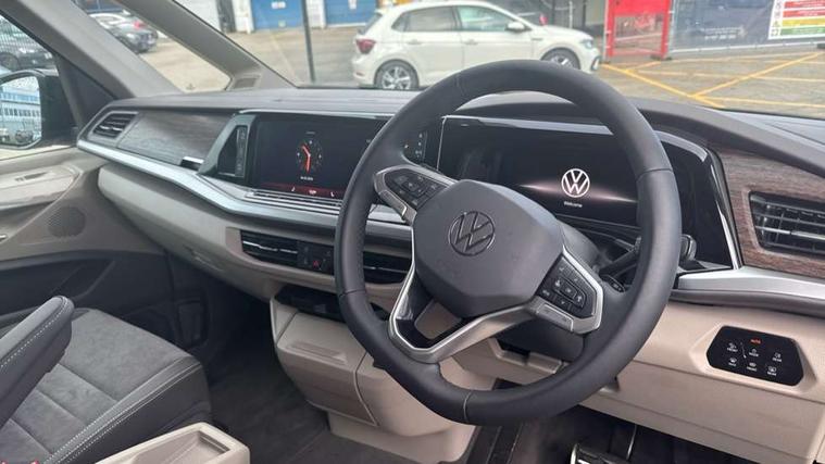 Adaptive cruise control with C2X including front assist and city emergency braking system, Digital Cockpit Pro with 10.25" colour display with adaptable display includes navigation map display, telephone contact images and audio information, Discover media pro navi system with 10" colour touch incl DAB+radio/appconnect for apple carplay/android auto/streaming and internet/gesture control, Driver alert system, Dynamic road sign display, eCall emergency system, Electrically-operated tailgate opening and closing function (Easy open), operated via foot movement under rear tailgate, Emergency assist, Front Cross Traffic Alert, Lane change system with side assist including blind spot monitor, rear traffic alert and exit warning system, Lane keeping system Lane Assist, Mobile phone interface, PAS, Semi-automated driving assistance, Tailgate, Travel assist, Voice control system including Alexa web app, We connect preparation, Electronic differential lock, 2 USB-C ports in front and 4 USB-C ports in passenger compartment, Additional interior noise reduction measures, Advanced high beam control dynamic light assist for LED matrix headlamps, Automatic headlight control with welcome home lights, Body coloured exterior door handles, Break away auto dimming rear view interior mirror, Chrome trim decorative strip mid-way on side and rear, Dynamic headlight range control with dynamic cornering light, Electrically adjustable, heated and folding door mirrors, Front fog lights, Glossy black painted radiator grille with 2 illuminated chrome trims, Heated rear window with window wiper and washer system, Heated windscreen, High gloss black exterior mirror housing, IQ.Light LED matrix headlamps with LED separate daytime running light, Laminated safety glass windshield, heat and sound insulating, LED 3rd brake lamp, LED rear combination lamps, Rear wiper, Stainless steel tailgate trim, Surround lighting in door area and tailgate with logo projection in door area, Windshield wiper intermittent control with rain sensor, 1 x 12V sockets on the dash panel, 12V socket in passenger compartment, 3 seat bench in 3rd row, 30 colours ambient interior lighting and tailgate surround lighting, 7 single seats removable/movable, Carpet mats in cab, Climatronic 3 zone air conditioning with additional control panel in passenger compartment, Front and rear head restraints, Grab handles on A pillar for access, on driver and front passenger side, Height adjustable seats, Height and longitudinal adjustment steering wheel with gear shift paddles, Illumination lockable glovebox compartment, ISOFIX (including i-size) and top tether in all seats in 2nd and 3rd rows, LED luggage compartment lighting X 2, Load compartment partition to 20kg with bag hooks and luggage net, Luggage compartment lid power latching with unlatching from inside, Multifunction leather steering wheel with tiptronic, Reinforced carpet floor covering in passenger compartment, Removable armrests for front seats with power adjustable lumbar support and folding table for 2nd row passenger seats, Single front passenger seat, Slidable multifunction table/centre console with 3 cup holders, Stainless steel pedals, Storage compartment under the 2nd and 3rd row seat and two waste bins, Sun visors with illuminated vanity mirror, ticket holder on driver side with airbag warning label on sunvisor and B-pillar, Easy open package - Multivan, 3x3 point rear seat belts, ABS, Automatic post collision braking system, Autonomous emergency braking front assist with pedestrian and cyclist monitoring, Driver and front passenger airbag with front passenger airbag deactivation, Electric childproof lock, Electronic stability control (ESC) and Electromechanical brake booster, ESP, First aid kit with warning triangle and safety vest, Front disc brakes, Hill hold assist, Seat belt warning for the drivers and all passengers seats if unfastened, Side and curtain airbags for driver and front passenger, curtain airbags for outer seats in rear, centre airbag in front, Single tone horn, Traction control, Tyre pressure monitoring system, Anti theft alarm system with interior monitoring in cab, backup horn and towing protection, Central locking system with interior control and safe lock, Keyless advanced with keyless entry, Start/stop button on centre console, Dark woodgrain optic decorative inserts,