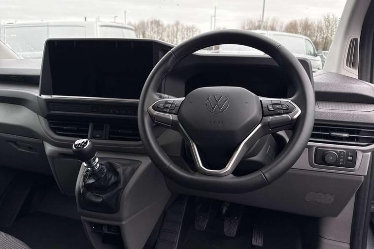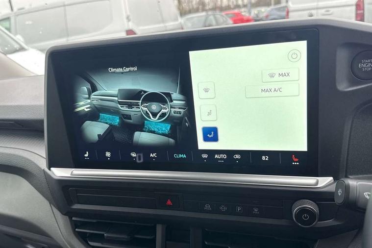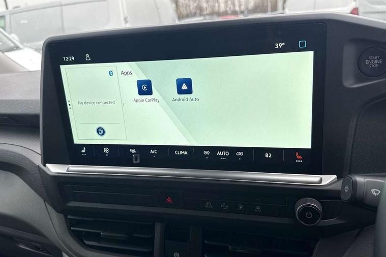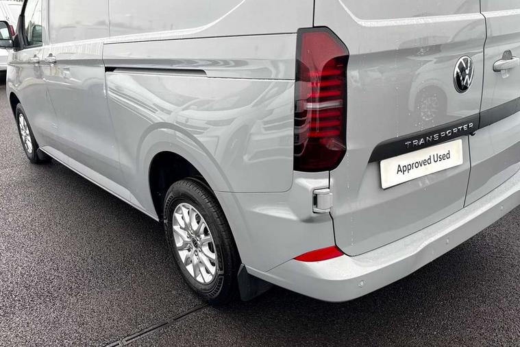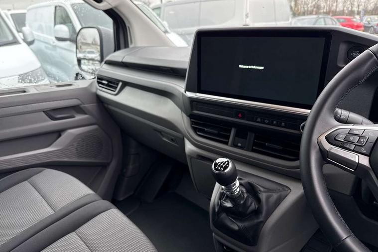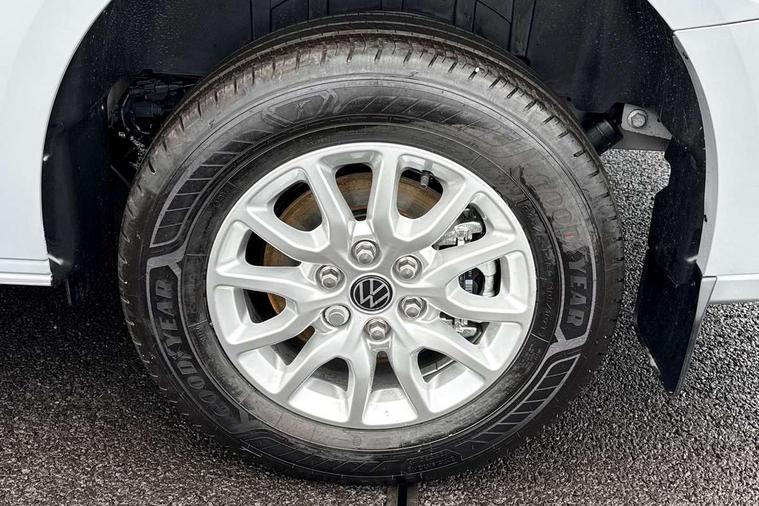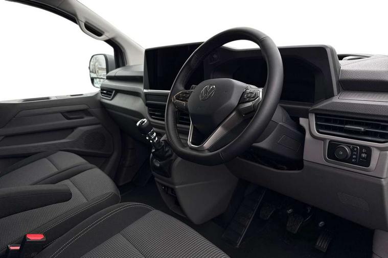 12" digital drivers display, 13" touchscreen infotainment display with wireless app connect and DAB radio, 5G Modem, Adaptive cruise control, Apple CarPlay and Android Auto, Dynamic road sign display, eCall emergency system, Electromechanical speed sensitive power steering, height and longitudinally adjustable steering column, Lane and blind spot assist with exit warning system, Preparation of VW connect and connect plus, Wireless mobile phone charging, Wrong way driver warning, Body colour bumpers, Body coloured door handles, Body coloured door mirrors, Body coloured radiator grille, Electrically heated, adjustable and folding door mirrors, Heat reflecting side window glass, Mud flaps front and rear, Rear Transporter nameplate in black grained decorative trim, Vehicle opening configuration 1x 1st row of seats, 2x all doors, 12V outlet in centre console and 12V outlet on rear right D-pillar, 2x 15-W USB data/charging ports in dashboard and 1x USB-C, 1x USB-A center bottom, 2x LED lights in load compartment, 3x additional super bright LED lights in load compartment, 4 way height and tilt adjustable head restraints, 5 additional USB-C charging ports, Black plastic scuff plate for sliding door in cargo without illumination, Cabin interior lighting, Glasses compartment in driver side roof, Grab handle on A-pillar passenger side, Illuminated lockable glovebox, Lashing rings for reinforced floor covering, Leatherette gear lever, Narrow centre console with cup holder and compartment for mobile phone, Overhead storage compartment, Rubber floor covering in cab, Striped fabric upholstery, Without passenger seats in load compartment, Driver and front passenger airbag with front passenger airbag deactivation, Dual tone horn, Front and curtain airbags for driver and front passenger, Seat belt pretensioner for driver seat, Anti theft alarm system with interior monitoring in cab, backup horn and towing protection, Electronic immobiliser, Lockable wheel bolts, Preparation for alcohol ignition interlock, 5+ Promise, Alternator - 230A, Electromechanical brake booster, Electronic stability control, ABS, ASR with deactivation button, hill start assist and brake assist system,