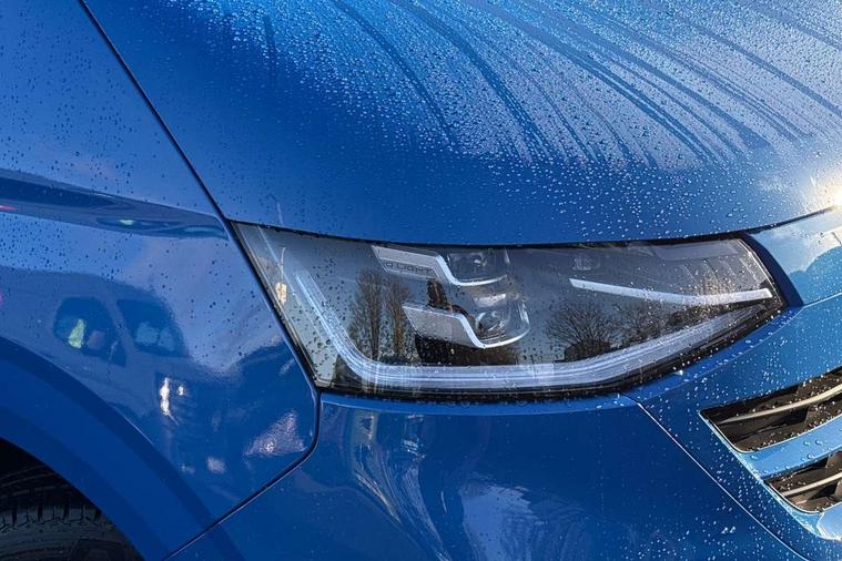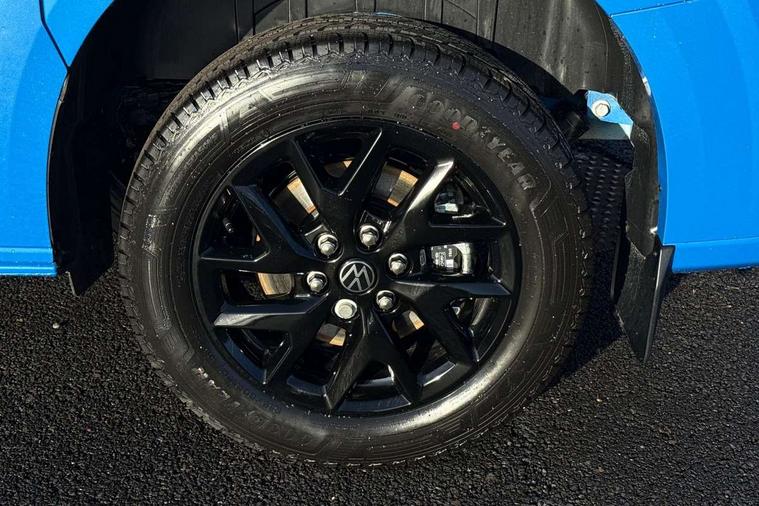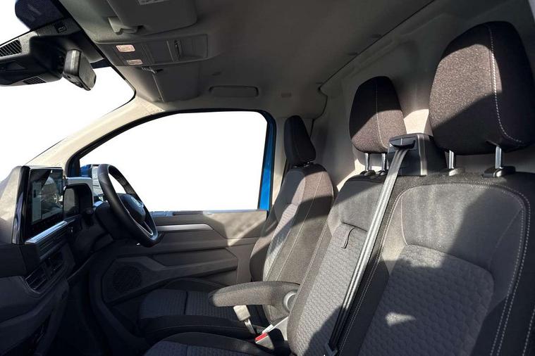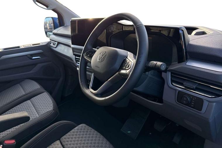 12" digital drivers display, 13" touchscreen infotainment display with wireless app connect and DAB radio, 5G Modem, Adaptive cruise control, Apple CarPlay and Android Auto, Dynamic road sign display, eCall emergency system, Electromechanical speed sensitive power steering, height and longitudinally adjustable steering column, Lane and blind spot assist with exit warning system, Preparation of VW connect and connect plus, Traffic jam assist, Wireless mobile phone charging, Wrong way driver warning, Body colour bumpers, Body coloured door handles, Body coloured door mirrors, Body coloured radiator grille, Electrically heated, adjustable and folding door mirrors, Heat reflecting side window glass, Mud flaps front and rear, Rear Transporter nameplate in black grained decorative trim, Vehicle opening configuration 1x 1st row of seats, 2x all doors, 12V outlet in centre console and 12V outlet on rear right D-pillar, 2x 15-W USB data/charging ports in dashboard and 1x USB-C, 1x USB-A center bottom, 2x LED lights in load compartment, 3x additional super bright LED lights in load compartment, 4 way height and tilt adjustable head restraints, 5 additional USB-C charging ports, Black plastic scuff plate for sliding door in cargo without illumination, Cabin interior lighting, Gear selector lever on steering wheel, Glasses compartment in driver side roof, Grab handle on A-pillar passenger side, Illuminated lockable glovebox, Lashing rings for reinforced floor covering, Narrow centre console with cup holder and compartment for mobile phone, Overhead storage compartment, Rubber floor covering in cab, Striped fabric upholstery, Without passenger seats in load compartment, Driver and front passenger airbag with front passenger airbag deactivation, Dual tone horn, Front and curtain airbags for driver and front passenger, Seat belt pretensioner for driver seat, Anti theft alarm system with interior monitoring in cab, backup horn and towing protection, Electronic immobiliser, Lockable wheel bolts, Preparation for alcohol ignition interlock, 5+ Promise, Alternator - 230A, Electromechanical brake booster, Electronic stability control, ABS, ASR with deactivation button, hill start assist and brake assist system,
