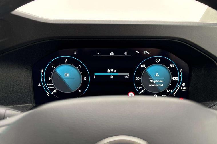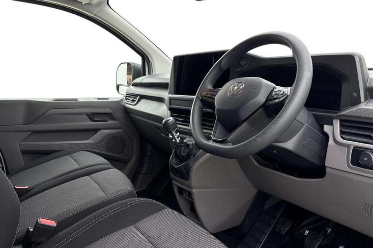 12" digital drivers display, 13" touchscreen infotainment display with wireless app connect and DAB radio, 5G Modem, Apple CarPlay and Android Auto, Cruise control, Dynamic road sign display, eCall emergency system, Electromechanical speed sensitive power steering, height and longitudinally adjustable steering column, Lane assist, Preparation of VW connect and connect plus, Wrong way driver warning, 4 speakers - 2x dashboard, 2x cab doors, Grained black door handles, Heat reflecting side window glass, High beam control, Laminated windshield made of heat-reflecting glass, LED rear combination lamps, Rear Transporter nameplate in black grained decorative trim, Vehicle opening configuration 1x 1st row of seats, 2x all doors, 2x 15-W USB data/charging ports in dashboard and 1x USB-C, 1x USB-A center bottom, 2x LED lights in load compartment, 4 way height and tilt adjustable head restraints, Black plastic scuff plate for sliding door in cargo without illumination, Cabin interior lighting, Lashing rings for reinforced floor covering, Narrow centre console with cup holder and compartment for mobile phone, Overhead storage compartment, Plastic gear lever, Roof grab handle on front passenger side, Rubber floor covering in cab, Standard glove compartment, Striped fabric upholstery, Without passenger seats in load compartment, Exterior pack 1 - Transporter, Interior trim pack - Transporter, Driver and front passenger airbag with front passenger airbag deactivation, Dual tone horn, Front and curtain airbags for driver and front passenger, Seat belt pretensioner for driver seat, Electronic immobiliser, Preparation for alcohol ignition interlock, 5+ Promise, Alternator - 230A, Electronic stability control, ABS, ASR with deactivation button, hill start assist and brake assist system,