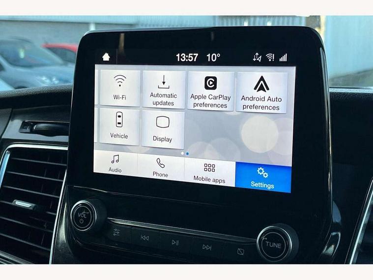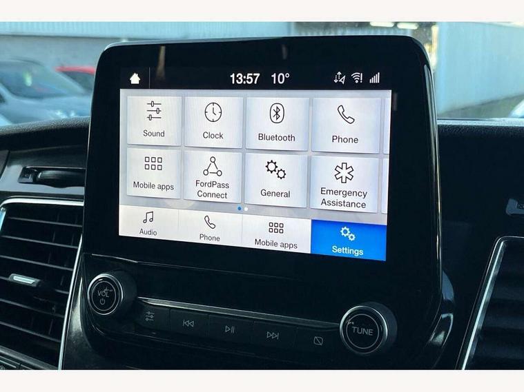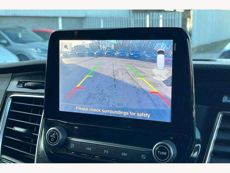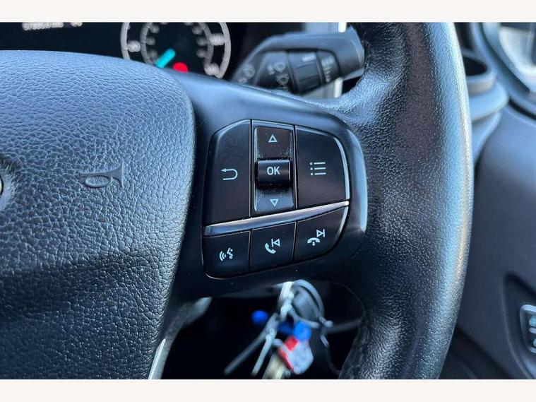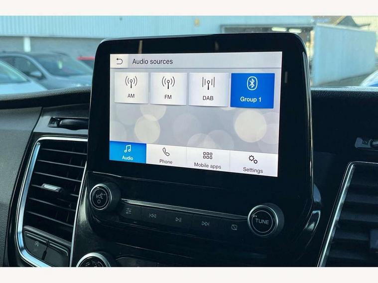 Easy fuel capless refuelling system, Ford Eco mode, PAS, Seatbelt warning indicator, Selectable drive mode, Vehicle maintenance monitor, Audio controls mounted on steering wheel, Aux input socket, Body coloured body side mouldings, Body coloured door mirrors, Body coloured front bumper, Body coloured rear bumpers, Chormed grille with 3 bars, Electric front windows with one touch facility for driver and front passenger, Front mud flaps, Headlamp levelling, Intermittent front wash/wipe, Passenger side sliding load door with track cover, Rear mudflaps, 2nd row three seat wide bench, Assist handle, Coat hook, Colour keyed exterior pack, Complete rear trim board, Courtesy light, Driver and passenger sunvisors with illuminated vanity mirrors, Front manual air conditioning, Front passenger grab handle, Glazed bulkhead, Grab handle on B pillar, Half height load compartment trim boards, Header mounted package tray, Height adjustable head restraints, Illuminated footwell, Isofix child seat attachments - centre and offside 2nd row seats, Leather gearshift knob, Load box LED lights, Lockable glove box, Map reading lights, Moulded cab headlining, Passenger underseat storage box, Reach and rake adjustable steering column, Recirculation heater, Rubber floor covering, Sunglasses roof storage, Tie-down loops, 3 point seatbelts for all seats, Driver's airbag, Front outer passenger airbag with deactivation switch, Front seatbelt pretensioners, Height adjustable drivers seatbelt mount, Passenger seatbelt height adj, Auto locking on drive-away, Auto relocking, Configurable Unlocking, Power door dead locks, Remote central locking, Thatcham category 1 alarm with 2nd remote key, 2 12v sockets, 80 litre fuel tank, ABS, Auto start/stop system, Diesel particulate filter, ESP + EBA, Heavy duty alternator, Roll stability control, Side wind mitigation, 16" 6.5 alloy wheels, Full wheelcovers,