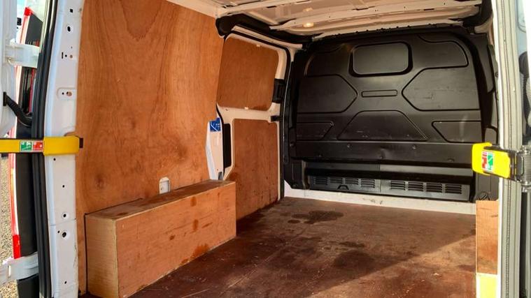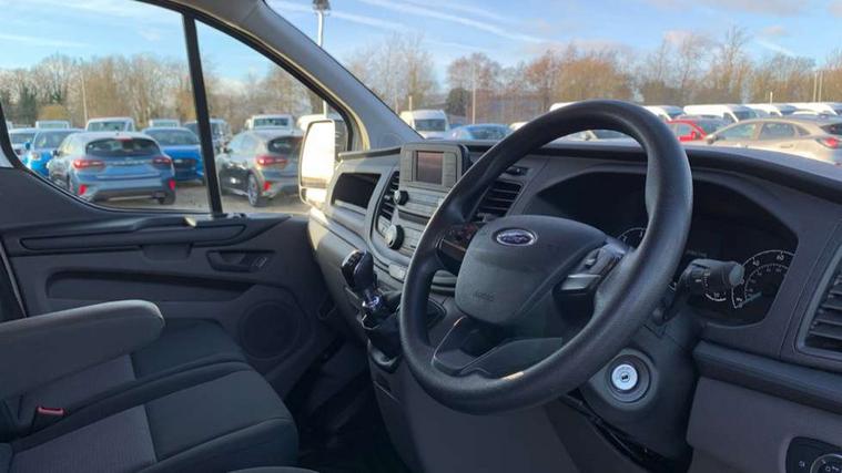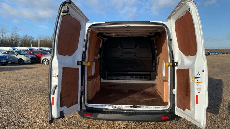 Easy fuel capless refuelling system, Embedded modem, Ford Eco mode, PAS, Selectable drive mode, Trip computer, Vehicle maintenance monitor, Audio controls mounted on steering wheel, Automatic headlamps with follow me home, Black coloured lift/decklid exterior handles, Black exterior door handle, Black exterior mirror finish, Complete grille with 3 bars, Door open tyre carrier drop, Electric front windows with one touch facility for driver and front passenger, Emergency brake light flashing, Front splash guards/Mud flaps, Headlamp levelling, Intermittent front wash/wipe, Kerbside side load doors, Low roof line, Part body colour front bumper, Quad beam headlamps, Rear cargo hinged door, Rear door edge warn reflectors, Rear mudflaps, Rear splash guards, Self coloured rear bumper, Unrestricted side load door opening, Wide bodyside grey mouldings, 2 Interior grab handles, Driver non illuminated sunvisor, Floorwell lights, Glove box lid, Header mounted courtesy lights - 2 map lights, Header mounted package tray, Height adjustable front headrests, Molded gear shift knob, Partial molded headliner, Partial rubber inside floor cover, Passenger non illuminated sunvisor, Passenger underseat storage box, Reach and rake adjustable steering column, Recirculation heater, Tool kit, Interior trim accent pack A- Transit custom, Less rear seat pack - Transit Custom, 3 point seatbelts for all seats, Driver's airbag, Dual note electric horn, Height adjustable drivers seatbelt mount, Passenger seatbelt height adj, Seatbelt remainder for driver and passenger, Auto locking on drive-away, Auto relocking, Non locking lug nuts, Remote central locking, Speed dependent power lock group, 2 12v sockets, 80 litre fuel tank, ABS, Auto start/stop system, Diesel particulate filter, ESP, Extra heavy duty alternator, Mechanical parking brake, Power point plug 400W - Level 2, Roll stability control, Side wind mitigation, Standard duty suspension, 15" steel wheels, Hub cap covers,
