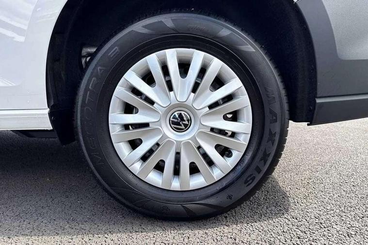 Bluetooth - Mobile phone interface, Car2X technology, Driver alert system, eCall emergency system, Intelligent Speed Assist, Lane assist, Seatbelt warning indicator, Service indicator, Start-stop system with regenerative braking, 2 USB interfaces type C in dashboard, DAB Radio, We Connect Basic Preparation, Automatic hazard light activation under emergency braking, Black front and rear bumpers, Electric front windows, Heat insulating windscreen, Roof rail preparation, Windscreen wiper with variable intermittent delay and wash-wipe system, Dimming breakaway interior rear view mirror, Electronically controlled heating system, Interior light in headliner incorporting LED technology, Lockable glove compartment door with light, Manual heating and ventilation system, Manual height adjustment for front seats, Reach and rake adjustable steering column, Six lashing points for securing loads, 3-point seat belts in front, with pretensioner and height adjustment, Driver and front passenger airbag with front passenger airbag deactivation, Tyre pressure monitoring system, Anti-theft alarm system, interior monitoring, backup horn, and towing protection, Electronic engine immobiliser, Remote central locking with deadlocks, interior locking, Anti locking braking system (ABS), Automatic post collision braking system, Autonomous Emergency Braking Front Assist with Pedestrian Monitoring, Brake assist, Diesel particulate filter, Electric parking brake with auto hold function, Electronic brake force distribution (EBD), Electronic differential lock (EDL), Electronic stabilisation programme (ESP), Engine drag torque control (MSR), Hill hold assist, Traction control system (TCS), Decorative beige birch vein inserts, Full size wheel trims,