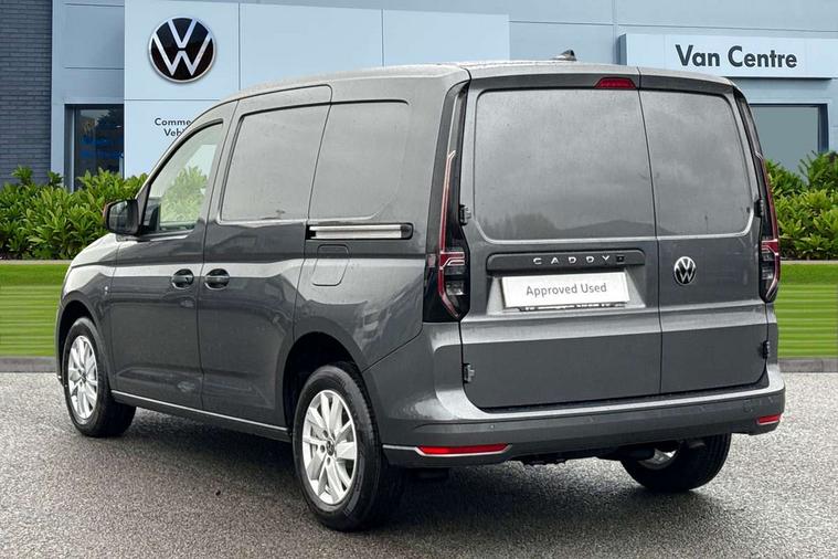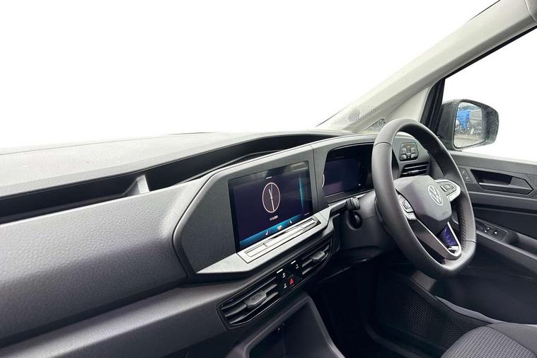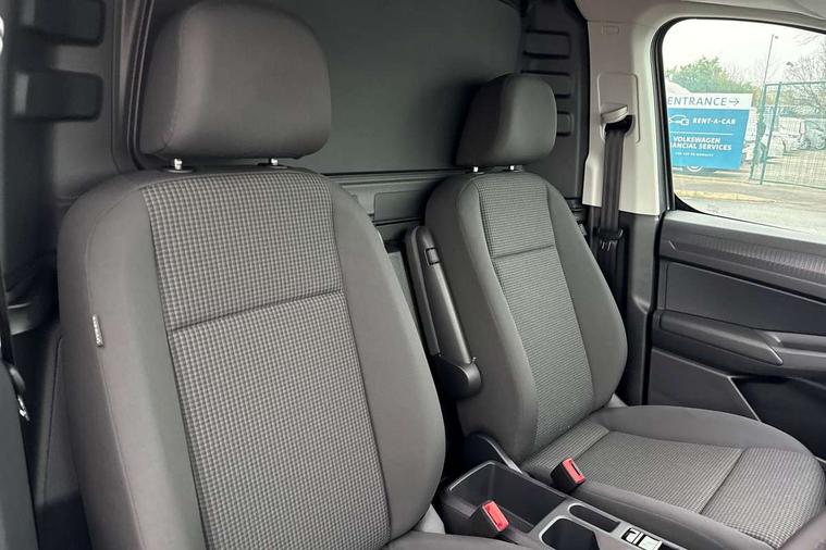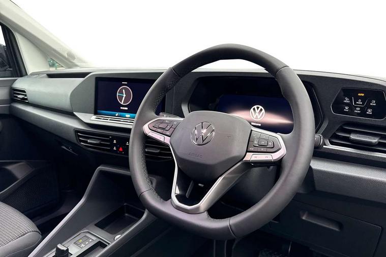 Bluetooth - Mobile phone interface, Car2X technology, Driver alert system, eCall emergency system, Intelligent Speed Assist, Lane assist, Seatbelt warning indicator, Service indicator, Start-stop system with regenerative braking, 2 USB interfaces type C in dashboard, App-Connect - Wireless for Apple CarPlay, DAB Radio, We Connect Plus Preparation, Automatic hazard light activation under emergency braking, Black painted exterior mirror housings, body-colored door handles and Silver sliding door rail, Body coloured bumpers, Electric front windows, LED rear combination lights, LED rear tail lights, Roof rail preparation, Windscreen wiper with variable intermittent delay and wash-wipe system, Dimming breakaway interior rear view mirror, Electronically controlled heating system, ergoComfort seats for driver, Interior light in headliner incorporting LED technology, Lockable glove compartment door with light, Manual heating and ventilation system, Manual height adjustment for front seats and seat cushion inclination and depth adjustment on drivers seat, Multi function leather steering wheel, Power-adjustable lumbar support for drivers seat, Reach and rake adjustable steering column, Six lashing points for securing loads, Steering wheel paddle shift, Storage compartments under driver and front passenger seats, Sun visors with mirror, airbag label on front passenger sun visor, Winter pack plus - Caddy, 3-point seat belts in front, with pretensioner and height adjustment, Driver and front passenger airbag with front passenger airbag deactivation, Tyre pressure monitoring system, Anti-theft alarm system, interior monitoring, backup horn, and towing protection, Electronic engine immobiliser, Remote central locking with deadlocks, interior locking, Anti locking braking system (ABS), Automatic post collision braking system, Brake assist, Diesel particulate filter, Electric parking brake with auto hold function, Electronic brake force distribution (EBD), Electronic differential lock (EDL), Electronic stabilisation programme (ESP), Engine drag torque control (MSR), Hill hold assist, Traction control system (TCS), Decorative beige birch vein inserts, Wheel bolts with anti-theft protection (unlockable),