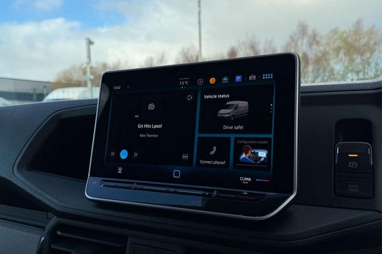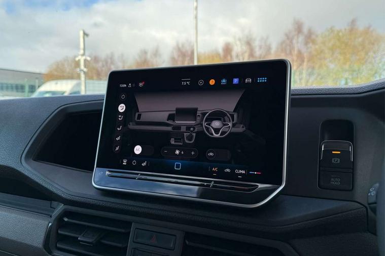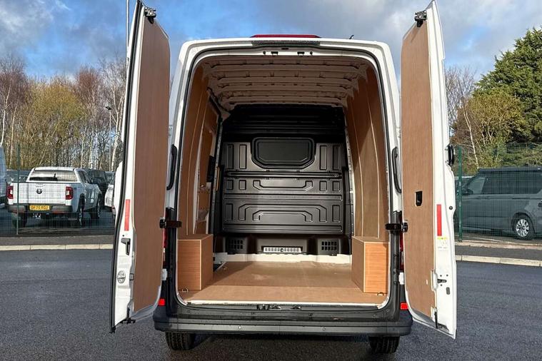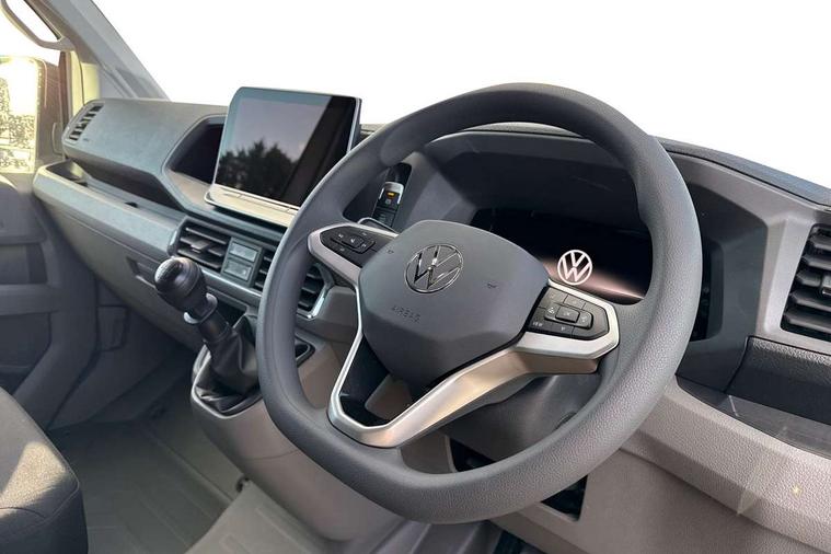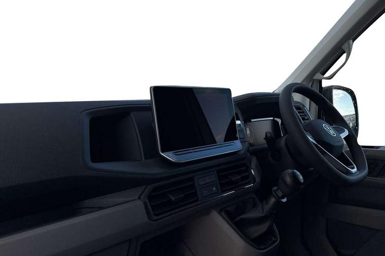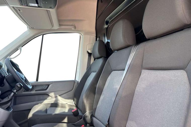 Advanced driver attention and drowsiness monitor, Blind spot monitor, Bluetooth, Digital clock, Digital cockpit with active Info display, Dynamic road sign display, E-call + We connect basic preparation, Forward collision warning with warning and braking reaction to vehicles, pedestrians and cyclists, Front assist including city emergency braking, Instrument cluster, Lane keeping assist, Lights on warning buzzer, Locking fuel cap, Rev counter, Roof console for interior lighting control, Service indicator, Speedometer, USB socket at top of windscreen, Wireless charging, 2 USB C ports in dashboard, DAB Radio, Auto low beam mode, Leaving home function and manual coming home function, Black unpainted plastic front bumper, Cab doors, Convex and wide angle mirror, Driver seatbelt warning light, Electric windows, Heat insulating glass, Indicators in front door mirrors, One towing eye in front, Rear badges, Special identification plate, Touch panel control for exterior lights, Unpainted radiator grille, Windscreen wiper auto control with light and rain sensor, Air recirculation system, Ashtray, Centre console storage tray, CFCU preparation, Charcoal filter, Document holder on centre console, Drinks holders, Electromechanical Servotronic steering, Electronically controlled heating system, Fully adjustable suspension type driver seat, Height adjustable head restraints, Height and reach adjustable steering wheel, Illuminated glove compartment with lockable lid, Interior light, including 2 reading lights, Interior light, switchable by door, Jack and tool kit, Preparation for interface for external use with terminal block, Storage compartments in doors and in step, right, Storage tray on dashboard, Two 12V outlets in the cab (in the dashboard), Without rear side trim panel passenger load compartment, Non-smokers pack - Crafter, 3 point inertia reel belt on all seats, Automatic hazard light with emergency braking, Crosswind assist, Driver and front passenger airbag with front passenger airbag deactivation, Height adjustable seatbelts for outer cab seats, 1 rigid key, Central locking system with Keyless Go without SAFELOCK entry - Keyless entry and start, Engine immobiliser, ABS, Automatic post collision braking system, EBA, EBD, EDL, Electronic parking brake - hill hold control, ESP, Front disc brakes, HBA, Hill start assist, Start and stop system with regenerative braking, TCS, Hub cap covers,