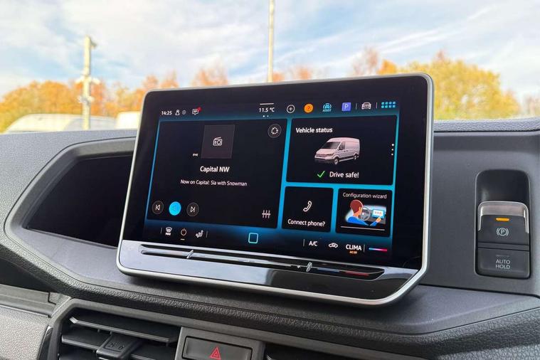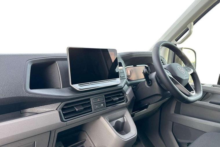 Bluetooth, Digital clock, Driver alert system, E-call + We connect basic preparation, Instrument cluster, Lights on warning buzzer, Locking fuel cap, Multi-function Display Plus, Rev counter, Service indicator, Speedometer, Voice control system, Composition media with 6.5" with we connect plus prep, 4 speaker, multifun display plus, USB, mob interface, app con, "We connect function", DAB Radio, Auto low beam mode, Leaving home function and manual coming home function, Cab doors, Convex and wide angle mirror, Driver seatbelt warning light, Electric windows, Electrically heated and adjustable door mirrors, Half painted front bumper, Heat insulating glass, Indicators in front door mirrors, One towing eye in front, Rear wing doors with 270 degree hinges, Special identification plate, Unpainted radiator grille, Air recirculation system, Ashtray, Centre console storage tray, CFCU preparation, Charcoal filter, Climatic air conditioning, Document holder on centre console, Drinks holders, Electromechanical Servotronic steering, Electronically controlled heating system, Fully adjustable suspension type driver seat, Grab handles on rear entry pillars, Height adjustable head restraints, Height and reach adjustable steering wheel, Illuminated glove compartment with lockable lid, Interior light, including 2 reading lights, Interior light, switchable by door, Jack and tool kit, Preparation for interface for external use with terminal block, Storage compartments in doors and in step, right, Storage tray on dashboard, Two 12V outlets in the cab (in the dashboard), Without rear side trim panel passenger load compartment, Non-smokers pack - Crafter, 3 point inertia reel belt on all seats, Automatic hazard light with emergency braking, Crosswind assist, Driver and front passenger airbag with front passenger airbag deactivation, Height adjustable seatbelts for outer cab seats, 1 rigid key, Anti-theft alarm with interior monitor, back up horn and tow away protect, overhead storage with two 1-DIN, reading light, SAFELOCK with 2 remote keys, Engine immobiliser, ABS, Automatic post collision braking system, EBA, EBD, EDL, ESP, Front disc brakes, HBA, Hill start assist, Parking brake - hill hold control, Start and stop system with regenerative braking, TCS, Hub cap covers,
