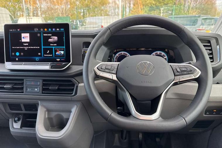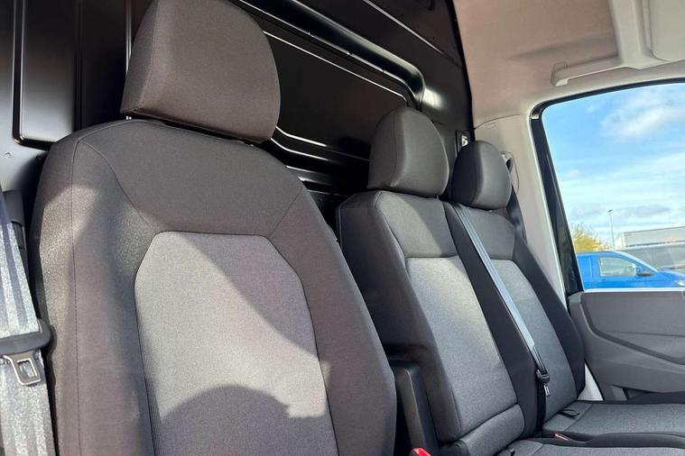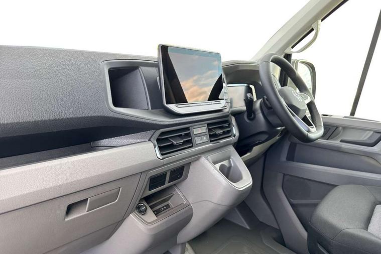 Bluetooth, Digital clock, Driver alert system, E-call + We connect basic preparation, Instrument cluster, Lights on warning buzzer, Locking fuel cap, Multi-function Display Plus, Rev counter, Service indicator, Speedometer, Voice control system, Composition media with 6.5" with we connect plus prep, 4 speaker, multifun display plus, USB, mob interface, app con, "We connect function", DAB Radio, Auto low beam mode, Leaving home function and manual coming home function, Cab doors, Convex and wide angle mirror, Driver seatbelt warning light, Electric windows, Electrically heated and adjustable door mirrors, Half painted front bumper, Heat insulating glass, Indicators in front door mirrors, One towing eye in front, Rear wing doors with 270 degree hinges, Special identification plate, Unpainted radiator grille, Air recirculation system, Ashtray, Centre console storage tray, CFCU preparation, Charcoal filter, Climatic air conditioning, Document holder on centre console, Drinks holders, Electromechanical Servotronic steering, Electronically controlled heating system, Fully adjustable suspension type driver seat, Grab handles on rear entry pillars, Height adjustable head restraints, Height and reach adjustable steering wheel, Illuminated glove compartment with lockable lid, Interior light, including 2 reading lights, Interior light, switchable by door, Jack and tool kit, Preparation for interface for external use with terminal block, Storage compartments in doors and in step, right, Storage tray on dashboard, Two 12V outlets in the cab (in the dashboard), Without rear side trim panel passenger load compartment, Non-smokers pack - Crafter, 3 point inertia reel belt on all seats, Automatic hazard light with emergency braking, Crosswind assist, Driver and front passenger airbag with front passenger airbag deactivation, Height adjustable seatbelts for outer cab seats, 1 rigid key, Anti-theft alarm with interior monitor, back up horn and tow away protect, overhead storage with two 1-DIN, reading light, SAFELOCK with 2 remote keys, Engine immobiliser, ABS, Automatic post collision braking system, EBA, EBD, EDL, ESP, Front disc brakes, HBA, Hill start assist, Parking brake - hill hold control, Start and stop system with regenerative braking, TCS, Hub cap covers,