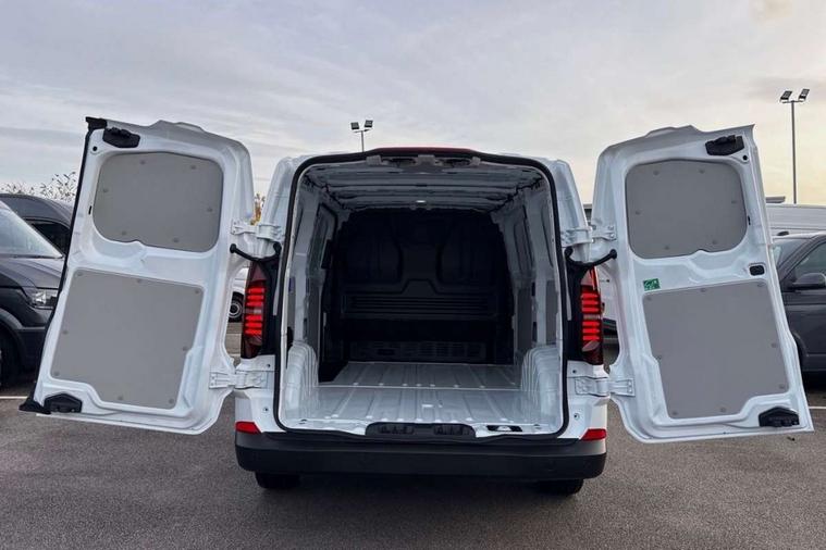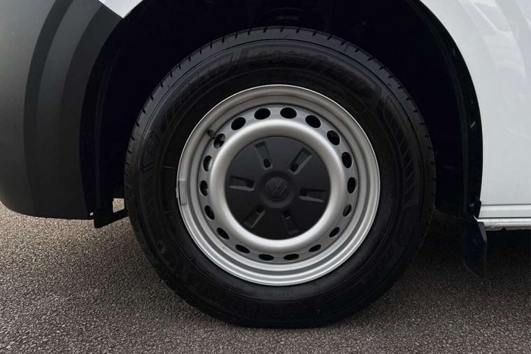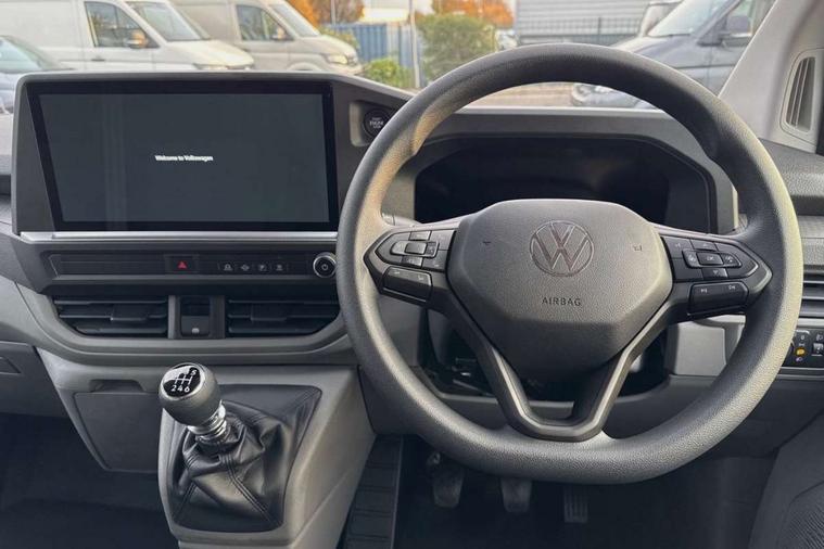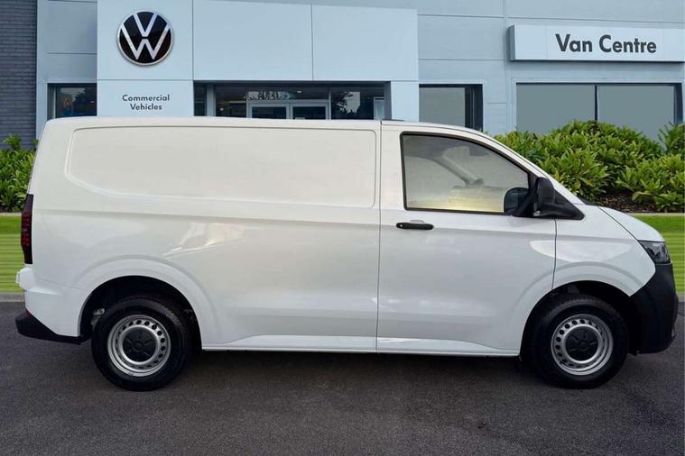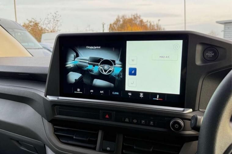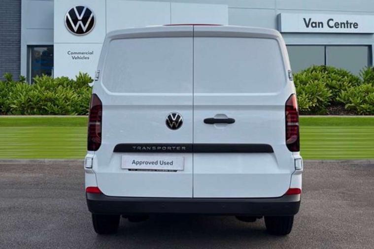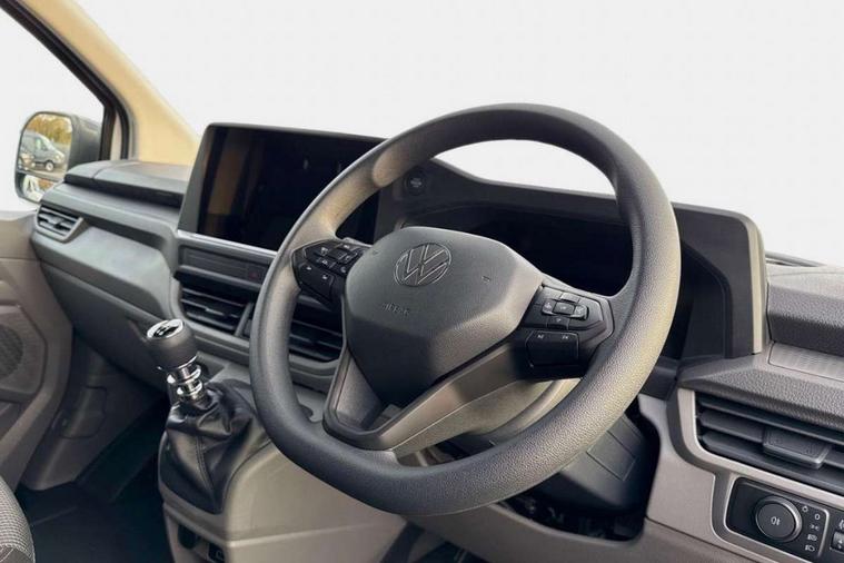 12" digital drivers display, 13" touchscreen infotainment display with wireless app connect and DAB radio, 5G Modem, Apple CarPlay and Android Auto, Cruise control, Dynamic road sign display, eCall emergency system, Electromechanical speed sensitive power steering, height and longitudinally adjustable steering column, Lane assist, Preparation of VW connect and connect plus, Wrong way driver warning, 4 speakers - 2x dashboard, 2x cab doors, Grained black door handles, Heat reflecting side window glass, High beam control, Laminated windshield made of heat-reflecting glass, LED rear combination lamps, Rear Transporter nameplate in black grained decorative trim, Vehicle opening configuration 1x 1st row of seats, 2x all doors, 2x 15-W USB data/charging ports in dashboard and 1x USB-C, 1x USB-A center bottom, 2x LED lights in load compartment, 4 way height and tilt adjustable head restraints, Black plastic scuff plate for sliding door in cargo without illumination, Cabin interior lighting, Lashing rings for reinforced floor covering, Narrow centre console with cup holder and compartment for mobile phone, Overhead storage compartment, Plastic gear lever, Roof grab handle on front passenger side, Rubber floor covering in cab, Standard glove compartment, Striped fabric upholstery, Without passenger seats in load compartment, Exterior pack 1 - Transporter, Interior trim pack - Transporter, Driver and front passenger airbag with front passenger airbag deactivation, Dual tone horn, Front and curtain airbags for driver and front passenger, Seat belt pretensioner for driver seat, Electronic immobiliser, Preparation for alcohol ignition interlock, 5+ Promise, Alternator - 230A, Electronic stability control, ABS, ASR with deactivation button, hill start assist and brake assist system,