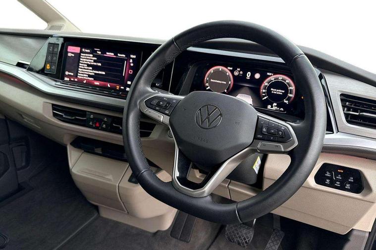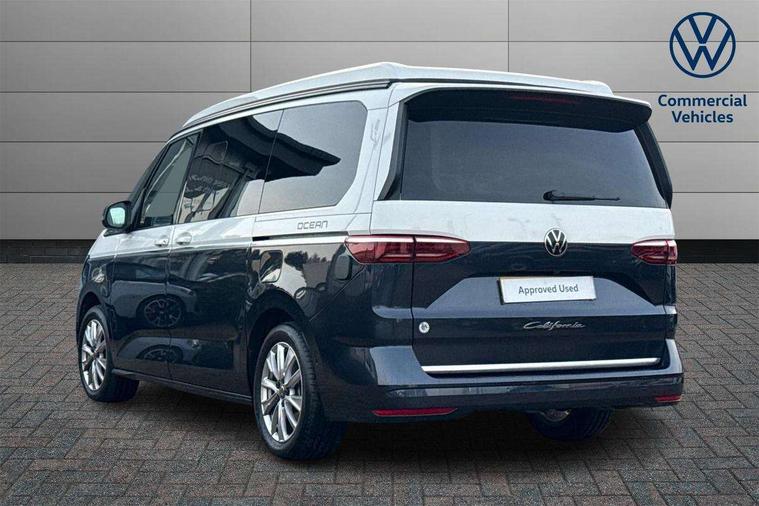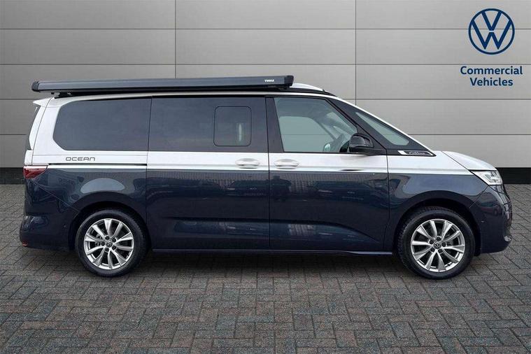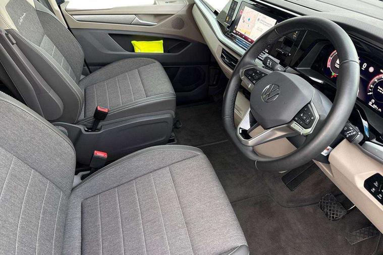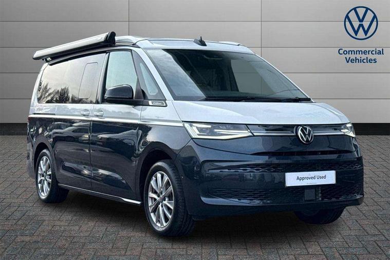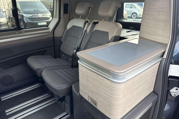 AppConnect including wireless Apple CarPlay, California on tour app, Digital cockpit pro, Discover pro navigation with 10" screen, Driving profile selection, eCall emergency system, Function control unit, IDA voice assistant and voice enhancer, Lane keeping system Lane Assist, Mobile phone interface, Multifunction camera, Online service, with OCU, with head unit coding, without WFS federation, PAS, Preparation for online services, Tailgate with window aperture and with power latching, Traffic sign recognition, Turn assist with evasive assistance, Standard suspension and shock absorption, 2 USB-C ports at the front, 4 USB-C charging sockets in the passenger compartment, 8 passive speakers, Digital radio reception (DAB+), 65% light absorbing privacy glass, A-pillar, D pillar and tailgate, All weather light, Ambient lighting in door area, Dynamic Light Assist for LED matrix headlights, Electro hydraulic elevating roof, with three windows including one front passengers panorama opening, canvas in Basalt Grey, Four speed control for windscreen wipers, Front window in laminated safety glass with heat and noise-insulating, Headlight levelling, dynamic, with dynamic cornering lights, Heated windscreen, High gloss black door mirrors, Illuminated molding between headlamps, Nameplate set California, Rear boot, Red LED tail lights, Sliding window in front with fly screen and fixed window in rear in load passenger at left, Tailgate with electric closing aid, Windscreen wiper intermittent control, 2 single seats with integrated seatbelt and sleeping mat, 230V interver with socket on driver seat, 30 colours ambient lighting on tailgate, Additional interior noise attenuation plus, Alcohol interlock, Armrest on front swivel seats in both sides with electric lumbar support, Camper parking heater for windshield defrosting with radio remote control, Darkening roller blinds and thermo mats, Drawers under the seats in the driver and passenger compartment + 2 waste bins, Front and rear headrests, Heated steering wheel, Kitchen with outdoor folding table for cooking and roof storage box in décor 2, Lockable glove compartment with lighting, Multifunction leather steering wheel with paddle shifters, Plastic floor covering in passenger/load compartment, Seat heating for both seats in the driver's cab, left and right separately adjustable, Single front passenger seat, Sleeper seats, Surround lighting in door area, Swivel seat on left with height adjustable including drawer, Swivel seat on right with height adjustable including drawer, Advanced assistance pack - California, Chrome package - California, Top package - California, 3x3 point automatic seatbelts at the rear outside with ECE label, with/without belt tensioner, Advanced driver attention, Autonomous emergency braking front assist with pedestrian and cyclist monitoring, Driver and front passenger airbags with front passenger airbag deactivation button, Drowsiness detection, First aid kit with warning triangle and safety vest, Front disc brakes, Height adjustable three point automatic seatbelts at front with belt and end fitting tensioners, Side and curtain airbags for driver and front passenger, curtain airbags for outer seats in rear, centre airbag in front, Swerve support and oncoming vehicle braking when turning, Tyre pressure loss indicator, Anti theft alarm system with interior monitoring in cab, backup horn and towing protection, Central locking system with keyless locking and starting system keyless advanced with safelock, Lockable wheel bolts, Dark silver brushed decorative inlays, Tool kit, Trims for alloy wheels, Tyre mobility kit,