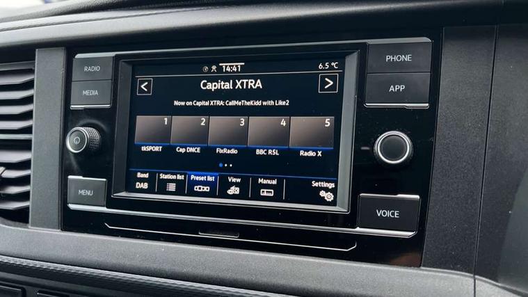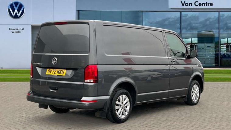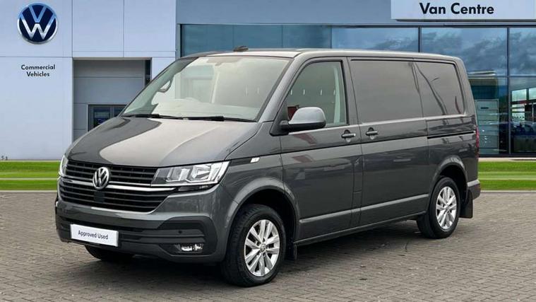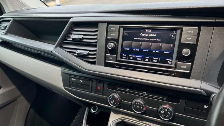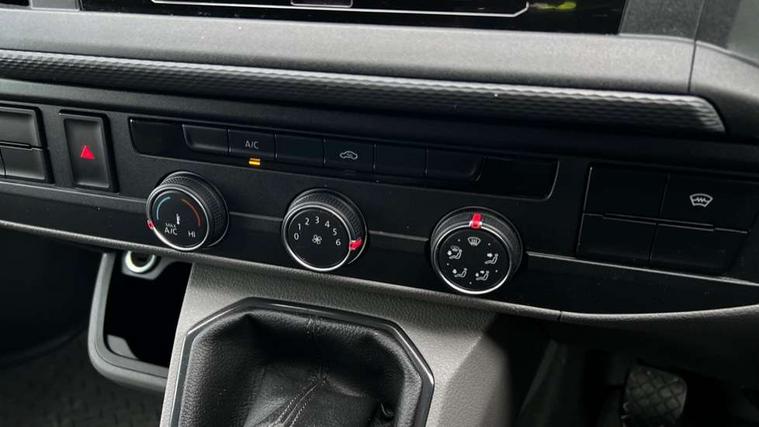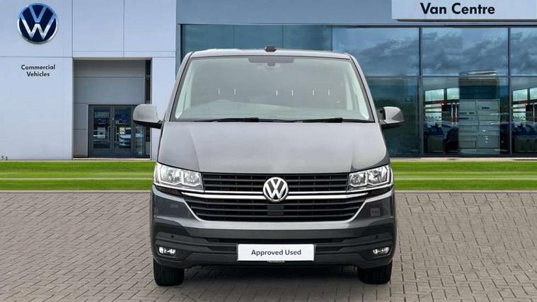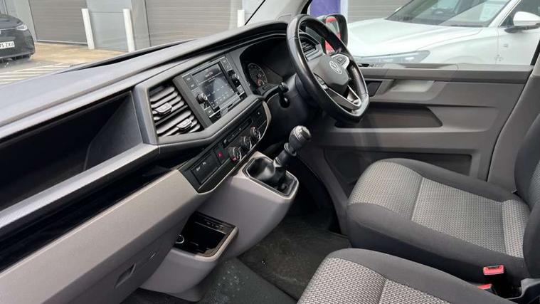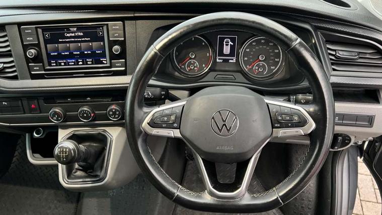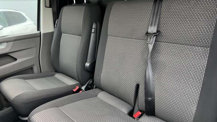 Adaptive cruise control, Cross wind assist, Dimmable illuminated instruments, Driver alert with Multi-function display plus, eCall emergency system, Forward collision warning front assist with autonomous emergency braking, Mobile phone interface, Multi function display plus with black and white display, 2 USB interfaces type C in dashboard, 4 speakers with 2 tweeters and 2 woofers, Composition colour radio with 6.5" touchscreen, Digital radio reception (DAB+), Volkswagen app connect, Automatic headlight control, leaving home and manual coming home feature, Closing rear wing door with unlatching from the inside, Front fog lamps with cornering light, Heat insulating glass (green) in cab and passenger/load compartment, Heated front windscreen, Left convex exterior mirror, Power folding adjustable door mirrors with separately heated, Radiator grille with 2 chrome trims, Rear wing doors without window apertures, Right convex exterior mirror, Transporter nameplate on the rear fender, Windshield wiper intermittent control with rain sensor for windshield wipers, 3 spoke leather wrapped multi function steering wheel, Auto dimming breakaway interior rear view mirror, Comfort headliner in cab, hardboard roof trim in passenger and load compartment, Dust/pollen filter, Front and rear left without window closed side panel in load compartment, Front seats on the right in 1st row of seat, Glove compartment with illumination, Heavy duty tool kit and jack, High partition, Interior plastic loading edge protection, LED Interior lighting in load and passenger compartment, Manual adjustable lumbar support for right single seat in 1st row seats, Refrigerant R134a, Standard lower part dashboard in palladium, Storage compartments on cab seats and reading light, Without right side window apertures in passenger and load compartment, Comfort pack - Transporter, Exterior pack without fog light- Transporter, Non smoker pack - Transporter, 3 point height adjustable seat belts on outer seats cab with electric pretensioners, Driver and front passenger airbag with front passenger airbag deactivation, Warning buzzer and light for driver and front passenger seat belt not fastened, Without child safety lock in passenger compartment, Anti theft alarm system with interior monitoring in cab, backup horn and towing protection, Lockable wheel bolts, 16" chassis with 16" brake system, Diesel particulate filter, Electronic stability control, ABS, ASR with deactivation button, hill start assist and brake assist system, Start/stop system with regenerative breaking, 16" Clayton alloy wheels,