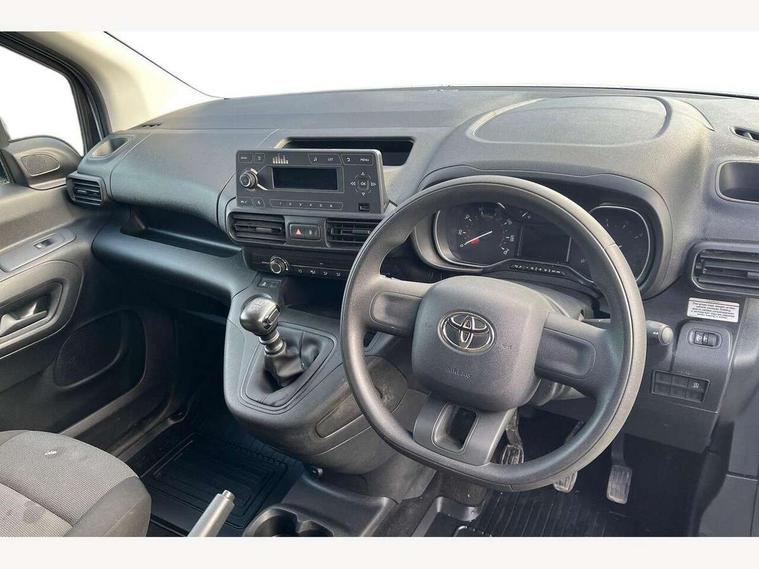 5" touchscreen multimedia display, Analogue speedometer, Analogue tachometer, Audio switches behind steering wheel, Bluetooth handsfree connectivity, eCall emergency system, LCD screen and pictogram, Monochrome multi information display, MyT connected services, PAS, Tyre pressure warning system (TPWS), 2 speakers, Digital radio (DAB), USB connector, 180 degree opening rear doors, Anti jam protection on windows, Auto Headlights, Black door handles, Black door mirrors, Black front and rear bumpers, Black protection moulding on side door, Black upper front grille, Daytime running lights, Electric front windows with one touch up/down facility, Heated and power adjustable door mirrors, Manual retractable door mirrors, Manual wipers, Panel rear wing doors, Privacy glass 30% smoke tint, Roof antenna, Roof rails, Roof rails predisposition, Tinted windows, Two manual sliding side doors, 3 spoke urethane steering wheel, Additional tray on passenger dashboard, Black interior door handles, Bottle holders (0.5L), Cargo area lighting and 3 bulbs, Cargo deck load hook x6, Chrome insert on gear shift, Closed upper passenger dashboard storage compartment, Cooler in glovebox, Driver and single passenger seat, Fabric seats, Front bottle holders, Front room lights, Full metal bulkhead, Gear shift indicator, Height adjustable front headrests, In-floor storage box, LED Driver and front passenger personal lights, Manual air conditioning, Mirror on driver sun visor, Open glovebox passenger side, Open tray on passenger dashboard, Open upper driver dashboard storage compartment, Overhead driver and front passenger storage, Panel bulkhead, Piano black insert on gear shift, Plastic load floor protection, Pollen filters, Row 1 carpet floor, Row 3 panel on both sides (in place of window), Rubber cargo liner, Rubber floor mats in load area, Urethane gear shift, Passenger airbag, Supplement restraint system (SRS) 2 airbags, 1 remote key + 1 simple key, Central locking, Key starting system, Anti lock braking system (ABS), Brake assist, Downhill Assist Control (DAC), Electronic brake force distribution (EBD), Electronic Stability Control (ESC), Hill start assist, Manual parking brake, Stop/start function, Vehicle stability control, 16" grey steel wheels with black large centre caps, Full size spare wheel,