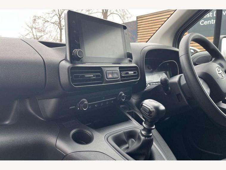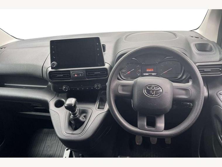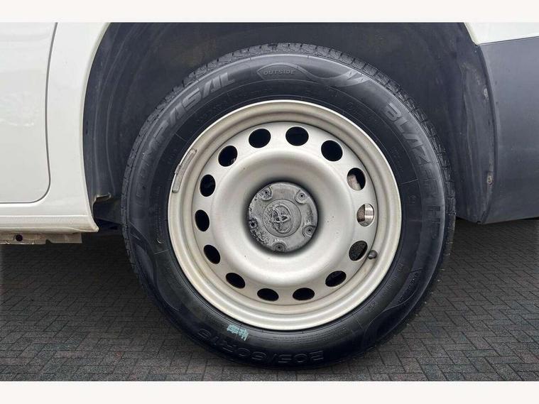 5" touchscreen multimedia display, Analogue speedometer, Analogue tachometer, Audio switches behind steering wheel, Bluetooth handsfree connectivity, eCall emergency system, LCD screen and pictogram, Monochrome multi information display, MyT connected services, PAS, Tyre pressure warning system (TPWS), 2 speakers, Digital radio (DAB), USB connector, 180 degree opening rear doors, Anti jam protection on windows, Auto Headlights, Black door handles, Black door mirrors, Black front and rear bumpers, Black protection moulding on side door, Black upper front grille, Daytime running lights, Electric front windows with one touch up/down facility, Heated and power adjustable door mirrors, Manual retractable door mirrors, Manual wipers, Panel rear wing doors, Privacy glass 30% smoke tint, Roof antenna, Roof rails, Roof rails predisposition, Tinted windows, Two manual sliding side doors, 3 spoke urethane steering wheel, Additional tray on passenger dashboard, Black interior door handles, Bottle holders (0.5L), Cargo area lighting and 3 bulbs, Cargo deck load hook x6, Chrome insert on gear shift, Closed upper passenger dashboard storage compartment, Cooler in glovebox, Driver and single passenger seat, Fabric seats, Front bottle holders, Front room lights, Full metal bulkhead, Gear shift indicator, Height adjustable front headrests, In-floor storage box, LED Driver and front passenger personal lights, Manual air conditioning, Mirror on driver sun visor, Open glovebox passenger side, Open tray on passenger dashboard, Open upper driver dashboard storage compartment, Overhead driver and front passenger storage, Panel bulkhead, Piano black insert on gear shift, Plastic load floor protection, Pollen filters, Row 1 carpet floor, Row 3 panel on both sides (in place of window), Rubber cargo liner, Rubber floor mats in load area, Urethane gear shift, Passenger airbag, Supplement restraint system (SRS) 2 airbags, 1 remote key + 1 simple key, Central locking, Key starting system, Anti lock braking system (ABS), Brake assist, Downhill Assist Control (DAC), Electronic brake force distribution (EBD), Electronic Stability Control (ESC), Hill start assist, Manual parking brake, Stop/start function, Vehicle stability control, 16" grey steel wheels with black large centre caps, Full size spare wheel,