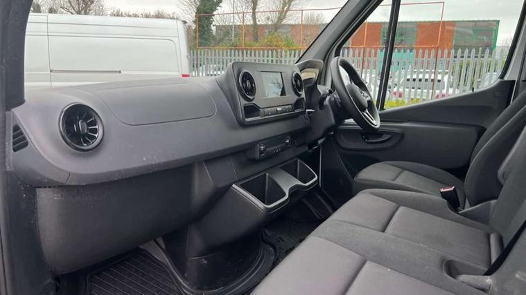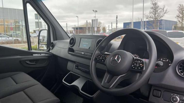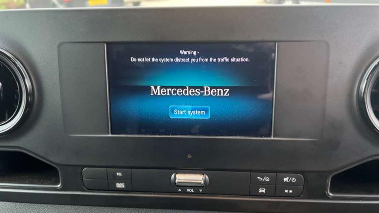Bluetooth connectivity, Comfort overhead control panel, Communication module (LTE) for digital services, Cruise control, Outside temperature gauge, PAS, Prewiring for parameterizable special module (PSM), Rev counter, Speedometer, Terminal strip for electrical connection, Trip computer, Wifi hotspot, Additional USB-C socket, Apple Carplay/Android Auto, Digital radio (DAB), 270 degree double rear wing doors opening to side wall, Adaptive brake lights, Electric front windows, Entrance handle on right rear corner pillar, Headlight assistant, Heat insulating glass with filter band on windscreen, Lights for left hand traffic, Longitudinal member reinforcement, Third rear brake light, Door operated interior courtesy light, Driver's armrest, Grab handle at load compartment sliding door partition, Height and reach adjustable steering wheel, Hinged cover for centre storage compartment, Interior shelf above windscreen, Multi function steering wheel, Pre-installation for switch panel, Storage compartment under cockpit, Attention assist, Breakdown management, Crosswind assist, Driver's airbag, Jack, Mercedes-Benz emergency call system, Seat belt reminder for co-driver seat, Seat belt warning for driver's seat, Anti-theft alarm system, Double locking, Keyless start, VIN visible from outside, 6 speed manual transmission, ABS, Active brake assist, Adaptive ESP, Alternator - 14 V / 230A, ASR traction control, EBD, ECO Start/stop function, Front axle with increased load capacity, Fuel filter with water separator, Hill start assist, Jump start contact, Particulate filter (DPF), 225/65 R16 Tyres, Full wheel covers, Resistance-optimised tyres, Spare wheel bracket below frame end,