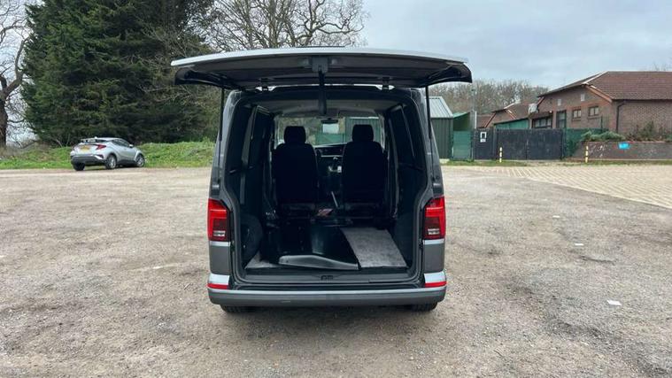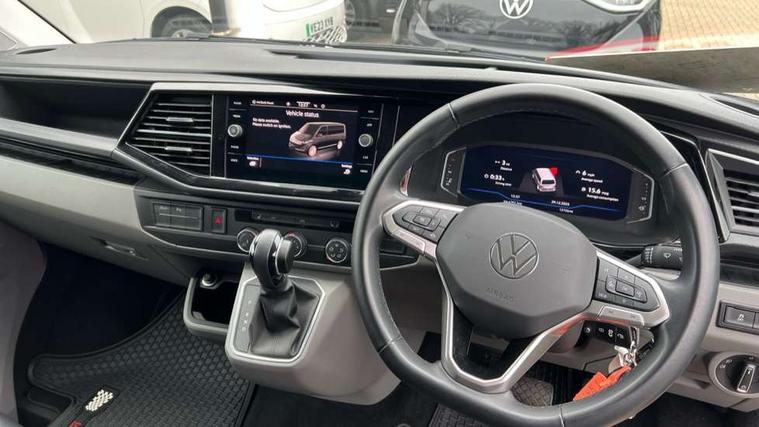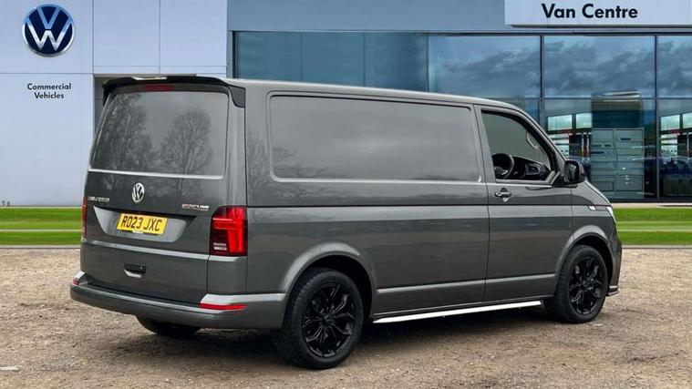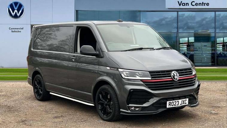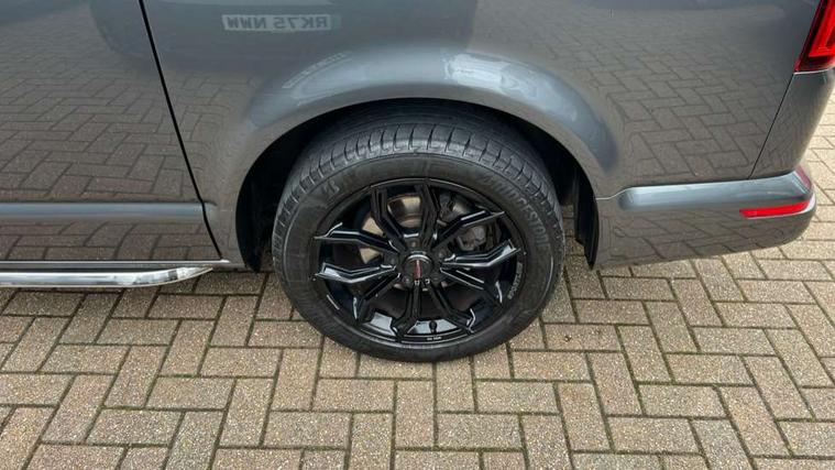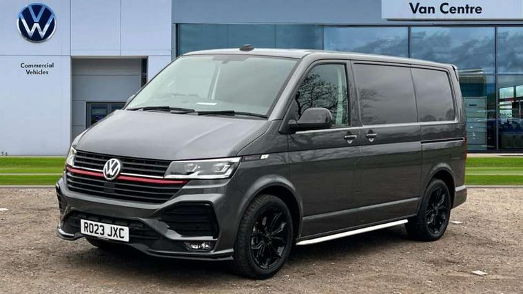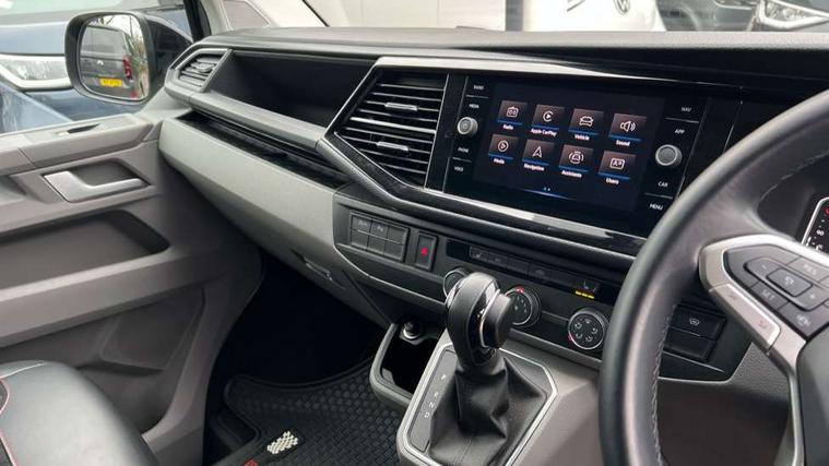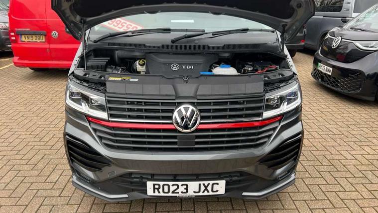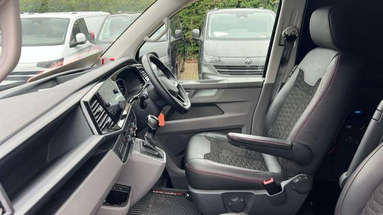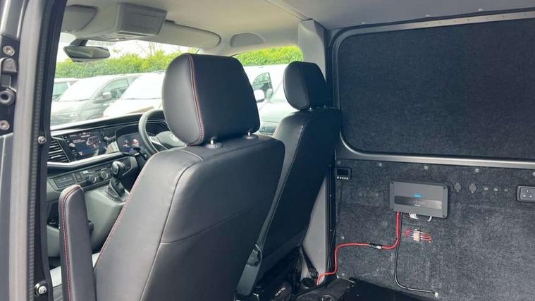 Adaptive cruise control, Cross wind assist, Digital cockpit, Dimmable dashboard ilumination, Driver alert system, eCall emergency system, Electromechanical steering, Front and rear parking sensors, Front assist including city emergency braking system, Multi function display plus with black and white display, Rear view camera, 4 speakers with 2 tweeters and 2 woofers, Digital radio reception (DAB+), Discover Media navigation system with 8.0" touch-screen including Streaming and Internet, Volkswagen app connect, Auto dimming interior rear view mirror, Automatic headlight control, leaving home and manual coming home feature, Body colour bumpers, Body coloured door handles, Enhanced front bumper including lower front diffuser, Front electric windows, Front fog lamps with cornering light, Gloss black wing mirrors, Heat insulating windows in cab, Heated laminated windshield, High beam assist, Illuminated chrome side bars, LED headlights with LED daytime running lights and LED tail lights, Power folding door mirrors, Power latching for passenger side sliding door, Power latching tailgate without windows, Rear tailgate spoiler, Sportline front wing and rear tailgate badging, Windshield wiper with intermittent control with rain sensor, 12V socket, Armrests for both front seats, Carpet floor covering in cab, Comfort dashboard, Dash panel with open stowage compartments, drink holders and lockable glovebox, Dust/pollen filter, Electronically controlled front air conditioning system and second heating system in passenger compartment, Entry handle on A-pillar on drivers and front passengers side, Folding grab handles on roof frame, Gloss black inserts in dashboard, Glove compartment with illumination, Half height side trim panels and roof trim panels made of hardboard, Heated driver and front passenger seats, Heavy duty tool kit and jack, High partition, Interior lighting with LED technology in load compartment, Interior styling and badging, Leather trimmed multi-function steering wheel with height and longitudinal adjustment, LED Interior lighting with two reading lights in the roof console, Nappa leather/alcantara upholstery with red contrast stitching, One waste bin in door storage compartment, Reinforced Folding lashing rings for load restraint system, Sportline carpet mats, Sun visors with mirror and airbag label on front passenger sun visor, Driver and front passenger airbag with front passenger airbag deactivation, Single tone horn, 2 remote control folding keys, Anti theft alarm system with interior monitoring in cab, backup horn and towing protection, Engine immobiliser, Lockable wheel bolts, Additional 12V socket, Automatic post collision braking system, Diesel particulate filter, Eibach 30mm lowering springs, Electronic stability control, ABS, ASR with deactivation button, electronic differnetial lock, hill start assist and brake assist system, Start/stop system with regenerative breaking, Dashboard upper in Titanium Black, dashboard lower in Palladium and floor covering in Titanium Black, 18" Sportline Gloss black alloy wheels, Tyre mobility kit in lieu of spare wheel with 12 volt compressor and tyre sealant,