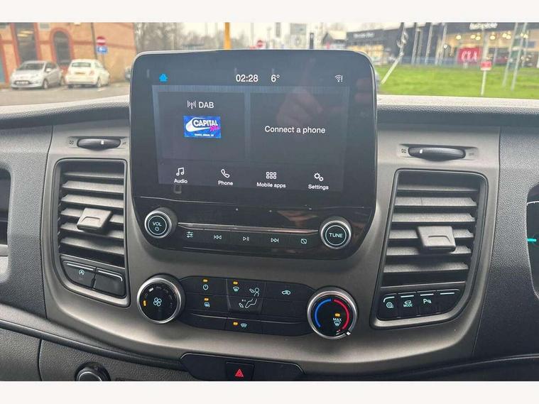 Easy fuel capless refuelling system, Ford Eco mode, PAS, Selectable drive mode, Vehicle maintenance monitor, Audio controls mounted on steering wheel, Aux input socket, 'Guide me home' headlights, Body coloured door mirrors, Body coloured front bumper, Electric front windows with one touch facility for driver and front passenger, Front mud flaps, Headlamp levelling, Intermittent front wash/wipe, Partialy body coloured rear bumpers, Passenger side sliding load door with track cover, Rear mudflaps, 2 adjustable sunvisors, Cloth upholstery, Courtesy light, Easy clean load floor, Height adjustable front headrests, Illuminated footwell, Lockable glove box, Map reading lights, Moulded cab floor liner, Moulded cab headlining, Passenger underseat storage box, Reach and rake adjustable steering column, Recirculation heater, Rubber floor covering, 3 point seatbelts for all seats, Driver's airbag, Front seatbelt pretensioners, Height adjustable drivers seatbelt mount, Passenger seatbelt height adj, Auto locking on drive-away, Auto relocking, Power door dead locks, Remote central locking, 2 12v sockets, 80 litre fuel tank, ABS, Auto start/stop system, Diesel particulate filter, ESP + EBA, Heavy duty alternator, Power point plug 400W - Level 2, Roll stability control, Side wind mitigation, Full wheelcovers,