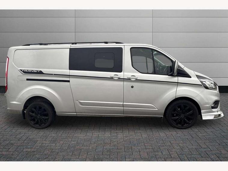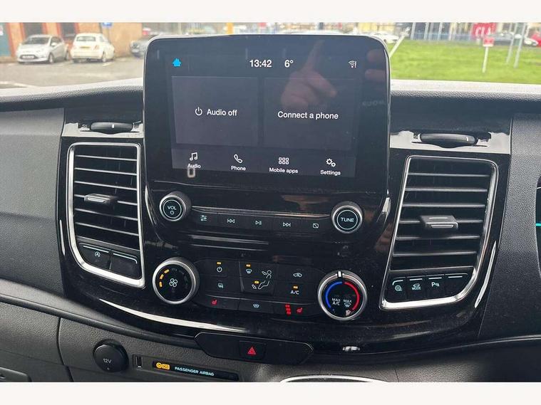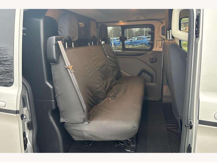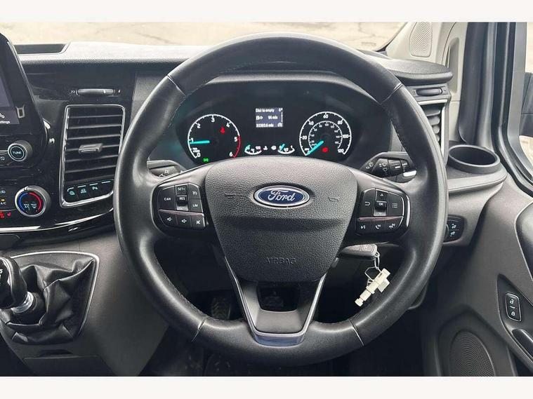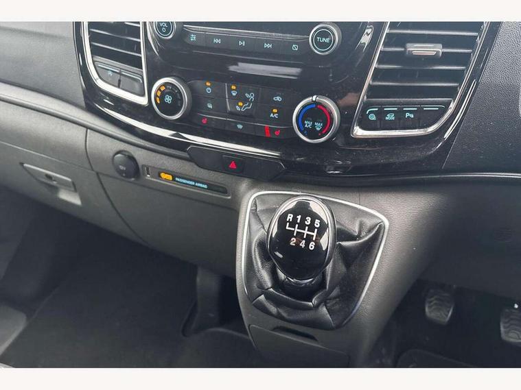 Easy fuel capless refuelling system, Embedded modem, Ford Eco mode, PAS, Selectable drive mode, Trip computer, Vehicle maintenance monitor, Audio controls mounted on steering wheel, 180 Degree rear cargo check arms, Automatic headlamps with follow me home, Automatic lights and wipers, Automatic windshield wiper, Body colour door handles, Body coloured body side mouldings, Body coloured door mirrors, Body coloured lift/decklid exterior handles, Body coloured rear bumpers, Chormed grille with 3 bars, Delete roof mounted turn signals, Digital rear view mirror, Door open tyre carrier drop, Driver only power front window with one touch down, Emergency brake light flashing, Front splash guards/Mud flaps, Headlamp levelling, High mounted stop lamp, Intermittent front wash/wipe, Intermittent variable windshield wiper, Kerbside side load doors, Low roof line, Passenger side sliding load door with track cover, Quad beam headlamps, Rear cargo hinged door, Rear door edge warn reflectors, Rear mudflaps, Rear splash guards, Restricted side load door opening, Tutone painted plastic front bumper, Wide bodyside body coloured moulding, 2 Interior grab handles, 2nd row three seat wide bench, 2nd/3rd Row courtesy light, 4 Load compartment tie down loops, Assist handle, B pillar assist handle, Cloth upholstery, Colour keyed exterior pack, Driver and passenger sunvisors with illuminated vanity mirrors, Extended carpet inside floor cover with rubber rear, Extended molded headliner, Floorwell lights, Front manual air conditioning, Glazed bulkhead, Header mounted courtesy lights - 2 map lights, Height adjustable head restraints, Illuminated footwell, Internal grab handles, Isofix child seat attachments - centre and offside 2nd row seats, Leather gearshift knob, LED load compartment light, Lockable glove box, Map reading lights, Passenger underseat storage box, Reach and rake adjustable steering column, Rear coat hook, Recirculation heater, Side rear door trim panel - Level 1, Sunglasses roof storage, Tool kit, Washer tank level warning lamp, Interior trim accent pack C - Transit custom, Rear seat pack 3 - Transit Custom, 3 point seatbelts for all seats, Driver's airbag, Dual note electric horn, Front active seat belts, Front passenger airbag restraint with driver/Passenger front seat belt buckle pretensioner and Passenger air bag deactivation, Height adjustable drivers seatbelt mount, Passenger seatbelt height adj, Rear seat belts, Seatbelt remainder for driver and passenger, Auto locking on drive-away, Auto relocking, Configurable unlocking 2, Locking wheel lug nut, Multi channel door entry remote and 3 Button key fob, Power door dead locks, Power lock group, Remote central locking, Thatcham category 1 alarm, Two step door unlock system, 2 12v sockets, 80 litre fuel tank, ABS, Auto start/stop system, Diesel particulate filter, ESP, ESP + EBA, Extra heavy duty alternator, Mechanical parking brake, Roll stability control, Side wind mitigation, Standard duty suspension, 16" 6.5 alloy wheels, Full wheelcovers,