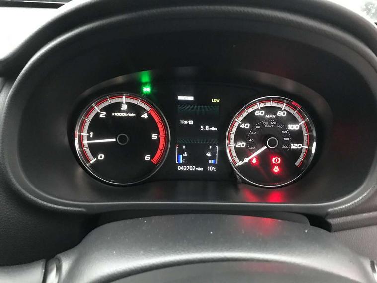 4WD drivetrain indicator, Average fuel consumption display, Cruise control, Exterior temperature display, Forward collision mitigation system, Fuel range indicator, Lane departure warning system, Multi info display, PAS, Rear view camera, Seatbelt warning lamp, Smartphone link audio display, Tachometer, Trip computer, USB port, Android Auto, Apple CarPlay, Bluetooth with music streaming, Digital radio (DAB), HDMI port, Steering wheel mounted audio controls, Auto dimming rear view mirror, Automatic rain sensors, Chrome door mirrors and handles, Chrome tailgate handle, Colour keyed front bumper, Dusk sensing headlights, Electric heated and folding door mirrors with indicators, Electric windows front + rear, Front and rear fog lamps, Front variable wipers with washer, Headlamp washers, LED Daytime running lights, LED headlamps with auto levelling, LED high beam, Mud flaps front and rear, Rear and rear side windows privacy glass, Rear black bar, Rear body inner hooks (x6), Rear high mounted stop lamp, Roof mounted aerial, Silver front grille, Silver rear bumper with integrated step, Silver side steps, Tailgate pull down handle, Warrior door decal, 2 front cupholders, Black leather gear knob, Chrome interior door handle, Cloth upholstery, Dial type transfer selector, Dual zone climate control, Front and rear interior lamps, Front armrest with storage box, Height adjustable front headrests, Height adjustable rear headrest, Knee pads, Leather steering wheel, Needle punch floor carpet, Rear heater duct, Silver air outlet trims, Silver finish window switch panels, Sunvisor with ticket holder drivers side and vanity mirror passengers side, Tilt and telescopic adjustable steering wheel, 2x3 point front seatbelts, 3x3 point rear seatbelts, Child proof rear door locks, Emergency stop signal system, Front passenger airbag with deactivation, Front seatbelt pre-tensioners with load limiters, Front, side, curtain and knee airbags, Height adjustable front seatbelts, Reinforced impact safety evolution (RISE) body safety system, Side impact bars, Speed sensing auto door locks, Deadlocks, Engine immobiliser, Keyless operation system, Locking wheel nuts, Remote central locking, Steering column lock, Thatcham category 1 alarm, ABS + EBD, Active stability and traction control, Adjustable speed limiter, Auto Stop and Go (AS and G), Brake assist, Engine start/stop button, Heavy duty suspension, Hill start assist, Super select 4WD system, Trailer stability assist (TSA), Silver finish centre dashboard, 18" alloy wheels, Full sized under floor mounted alloy spare wheel,